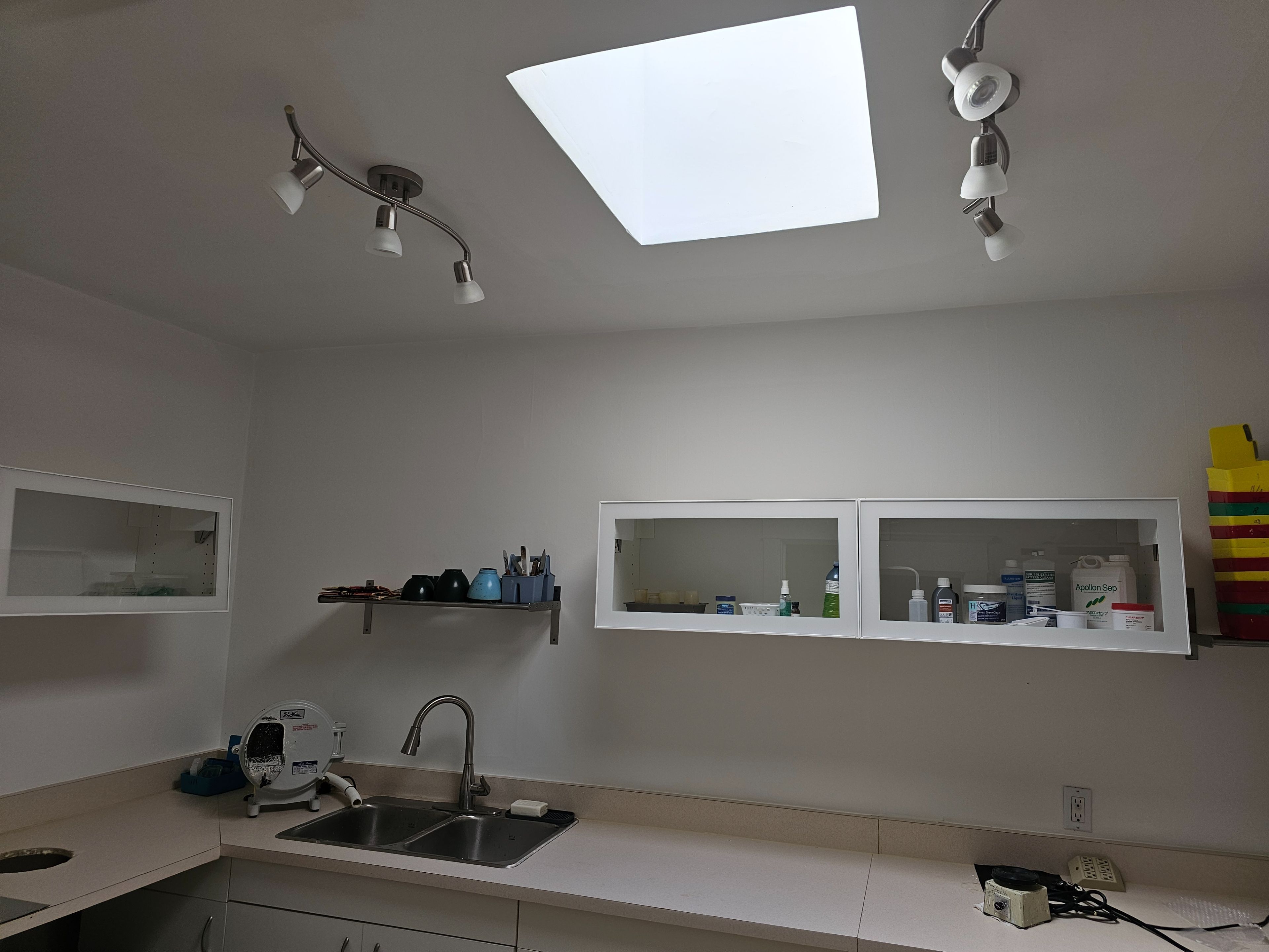 • Two-story building previously used as a medical practice with skylights.