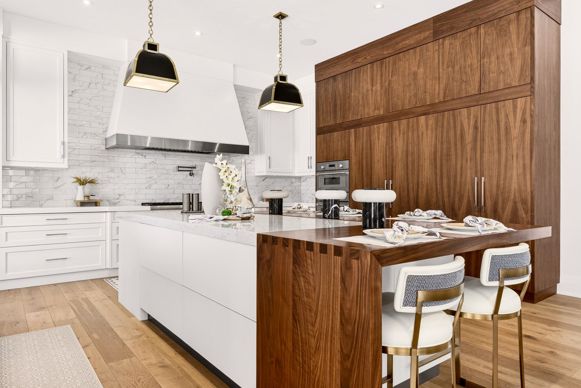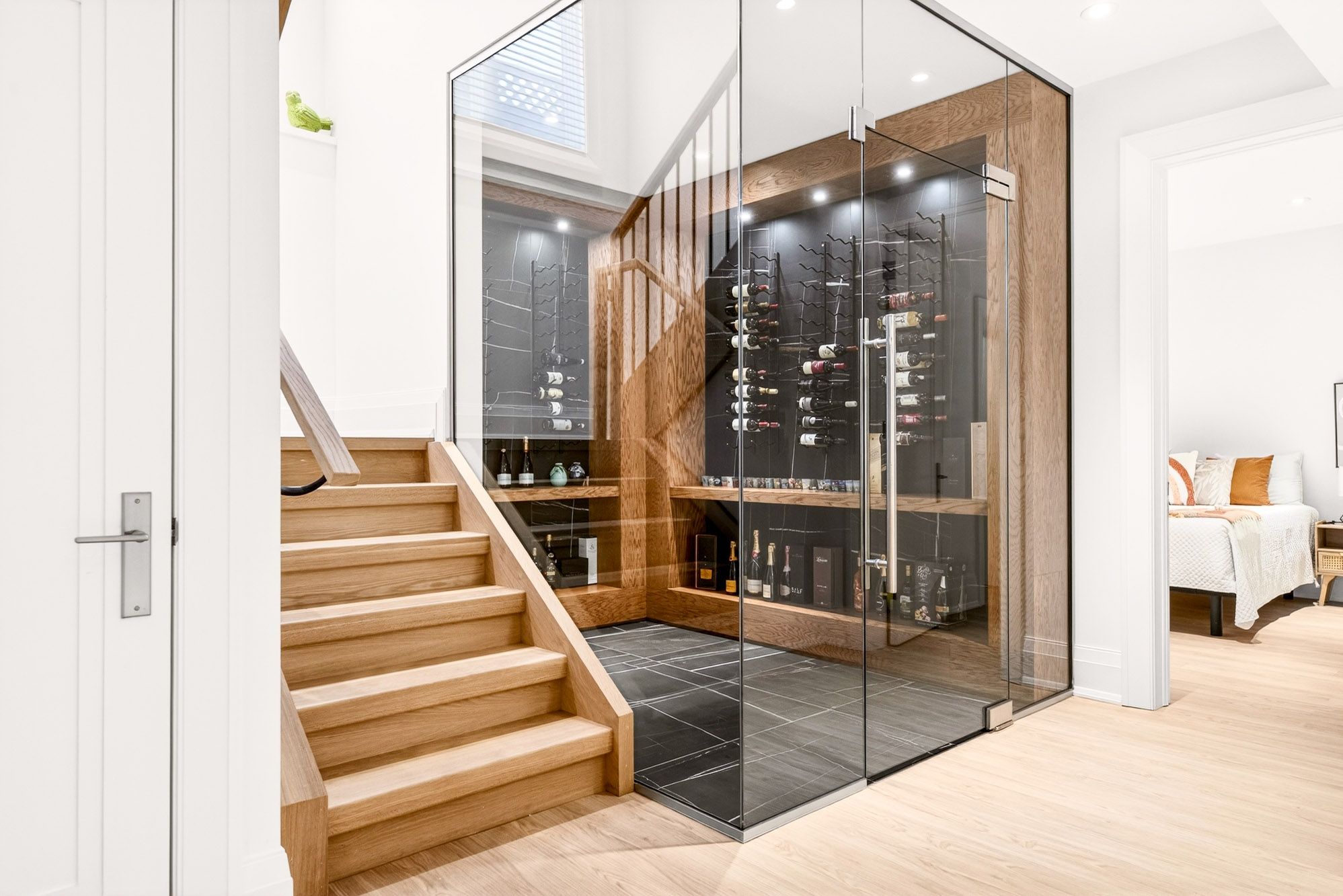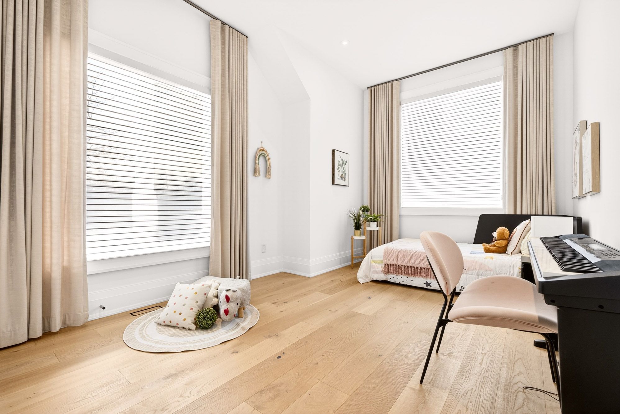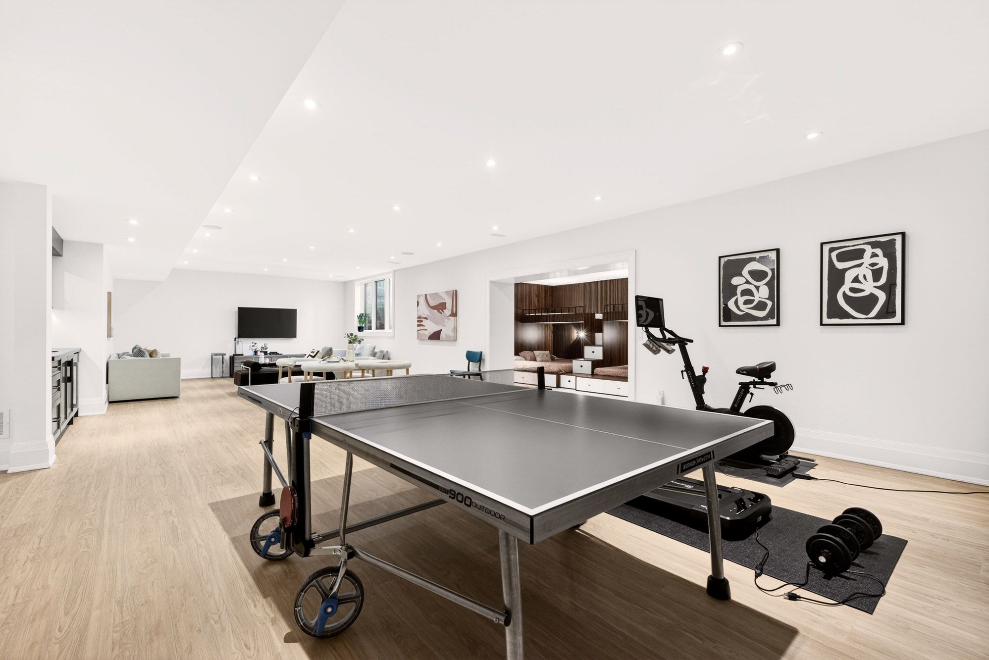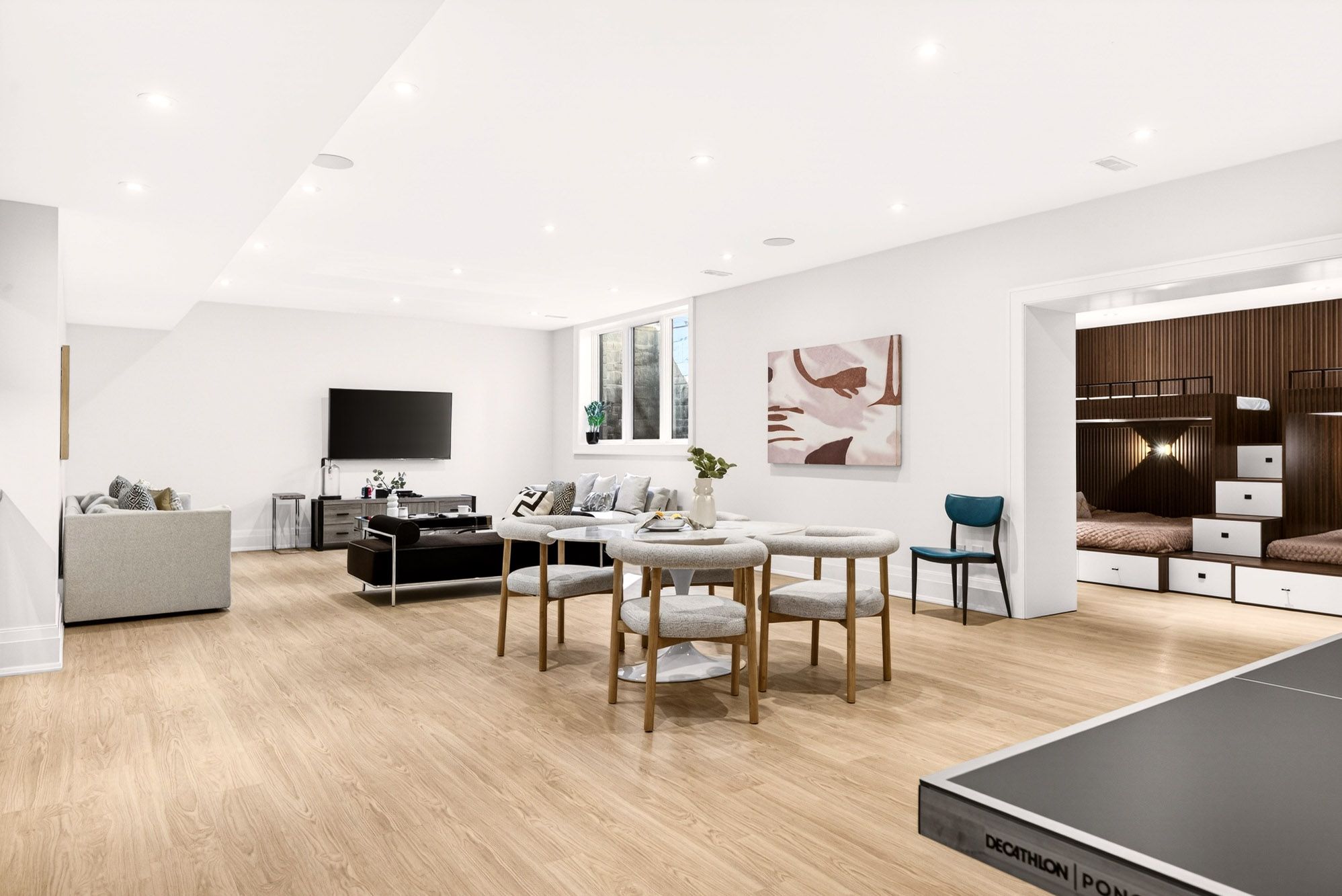 Exquisite custom-built luxury residence showcasing exceptional craftsmanship and thoughtfully curated high-end finishes throughout. Main floor features 11-ft ceilings and a 12-ft ceiling in the family room, creating an impressive sense of scale and openness. Functional open-concept layout seamlessly connects living, dining, and kitchen areas - ideal for both family living and elegant entertaining. Chef-inspired kitchen equipped with premium thermador appliances including built-in refrigerator, professional-grade gas range, microwave/oven combo, and dishwasher. Designer custom lighting fixtures are installed throughout the home, adding architectural character and refined ambiance to every space. Second floor offers 4 spacious bedrooms with well-proportioned layouts and excellent natural light. Finished basement provides an expansive recreational area featuring a custom wine cellar, wet bar, guest bedroom, full bathroom, oversized windows, and a custom-built high-end bunk bed - perfect for extended family or guests. Seamless indoor-outdoor living is enhanced by a beautifully designed california room complete with a custom high-end built-in bbq suite, creating the ultimate setting for outdoor entertaining. The home is equipped with a whole-house audio and home theatre system, with integrated sound extending to the outdoor california room for a fully immersive lifestyle experience. A rare opportunity to own a meticulously designed custom home combining volume, functionality, luxury amenities, and refined finishes.