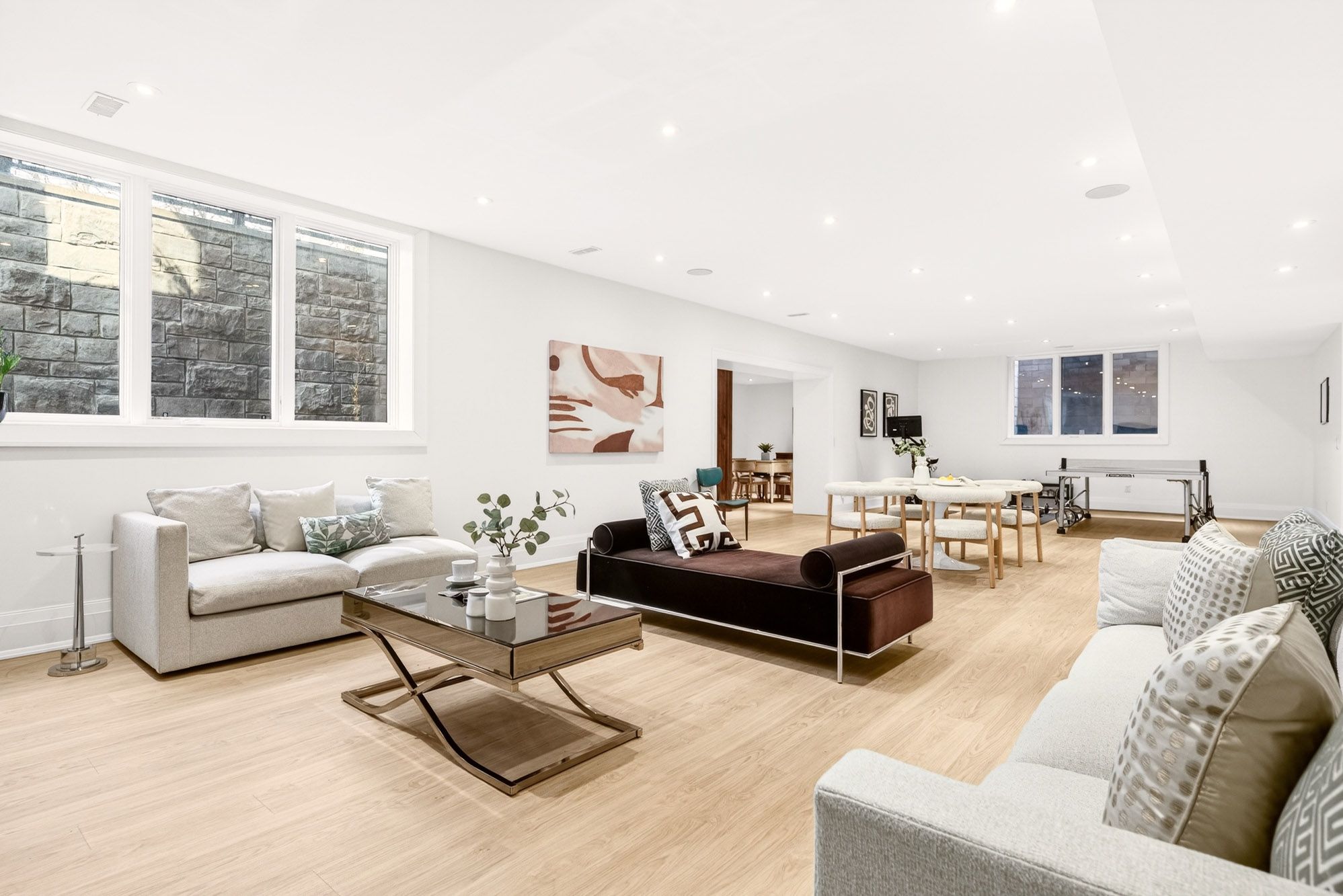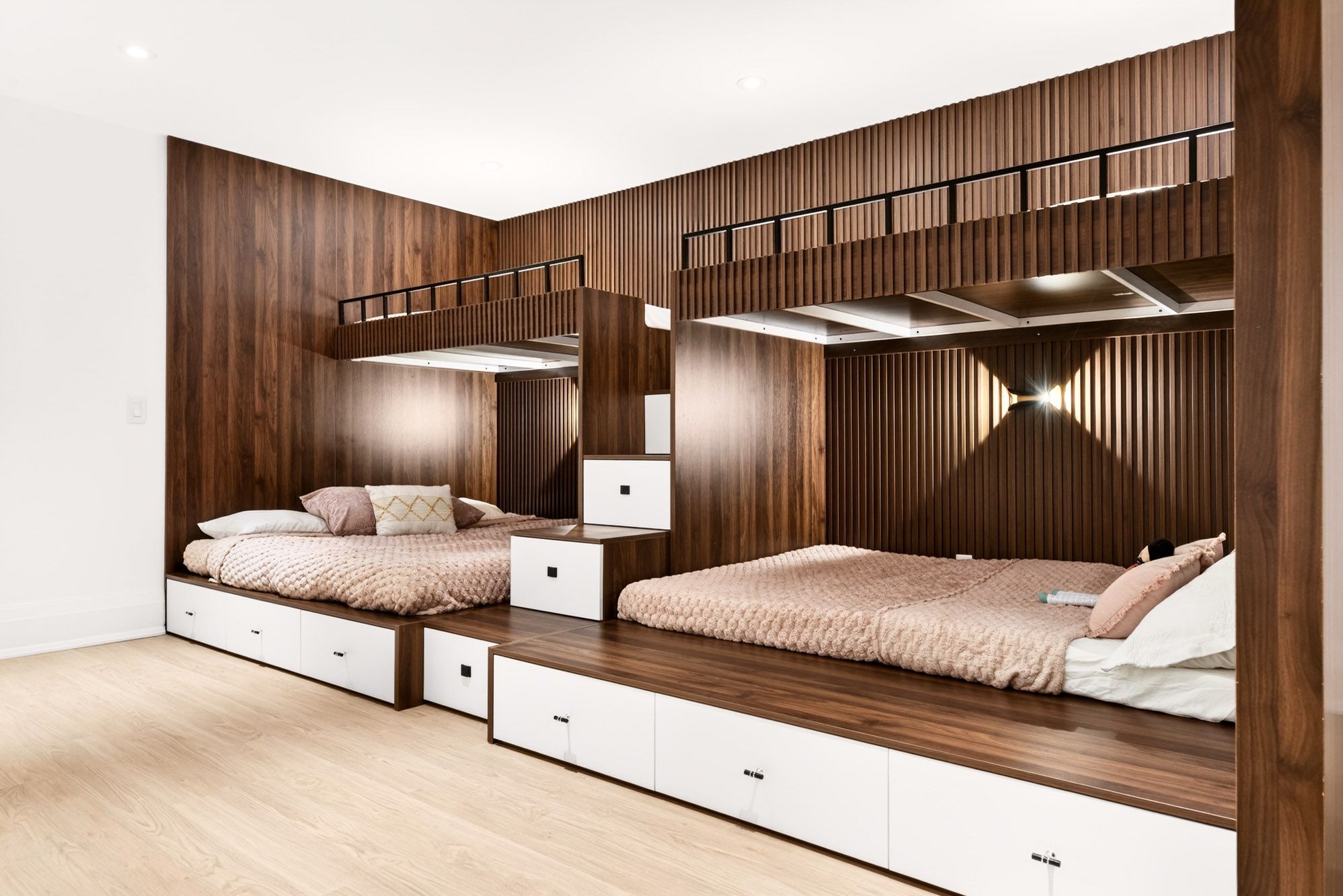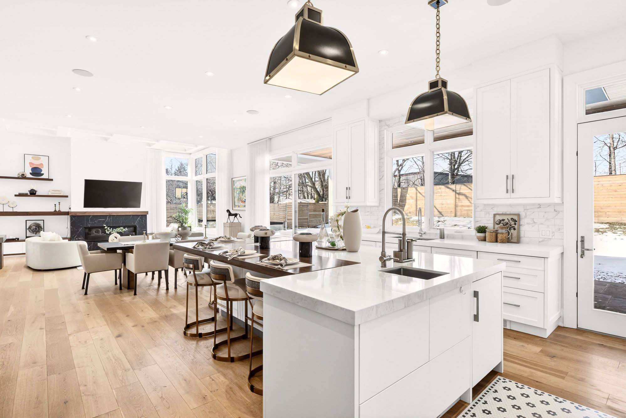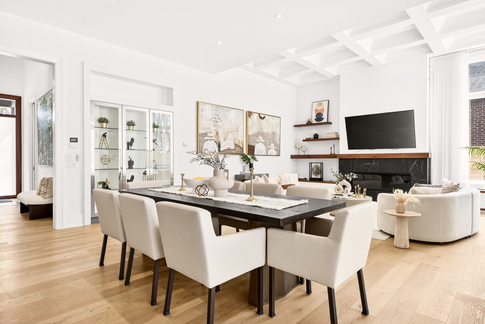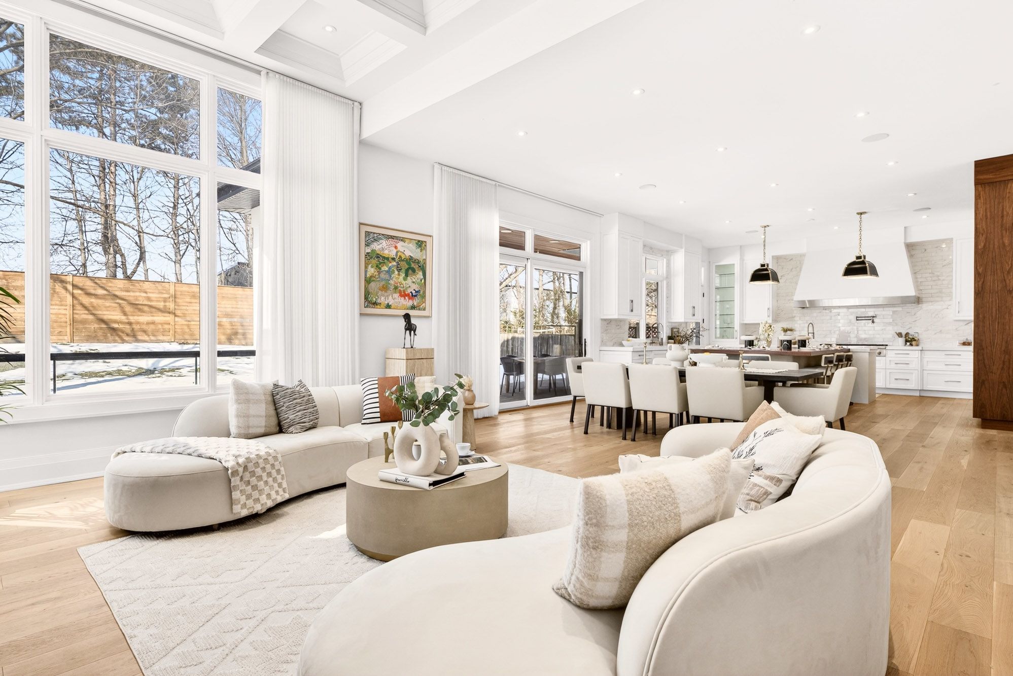 Exquisite custom-built luxury residence showcasing exceptional craftsmanship and thoughtfully curated high-end finishes throughout. Main floor features 11-ft ceilings and a 12-ft ceiling in the family room, creating an impressive sense of scale and openness. Functional open-concept layout seamlessly connects living, dining, and kitchen areas - ideal for both family living and elegant entertaining. Chef-inspired kitchen equipped with premium thermador appliances including built-in refrigerator, professional-grade gas range, microwave/oven combo, and dishwasher. Designer custom lighting fixtures are installed throughout the home, adding architectural character and refined ambiance to every space. Second floor offers 4 spacious bedrooms with well-proportioned layouts and excellent natural light. Finished basement provides an expansive recreational area featuring a custom wine cellar, wet bar, guest bedroom, full bathroom, oversized windows, and a custom-built high-end bunk bed - perfect for extended family or guests. Seamless indoor-outdoor living is enhanced by a beautifully designed california room complete with a custom high-end built-in bbq suite, creating the ultimate setting for outdoor entertaining. The home is equipped with a whole-house audio and home theatre system, with integrated sound extending to the outdoor california room for a fully immersive lifestyle experience. A rare opportunity to own a meticulously designed custom home combining volume, functionality, luxury amenities, and refined finishes.