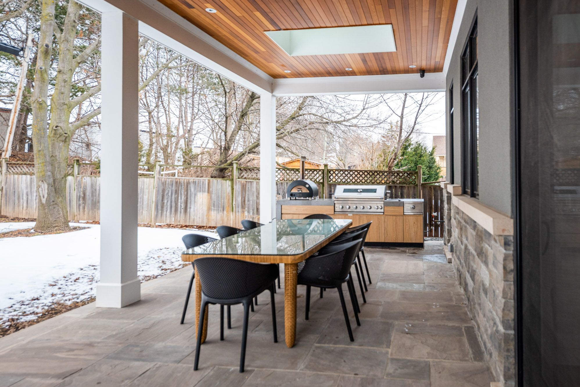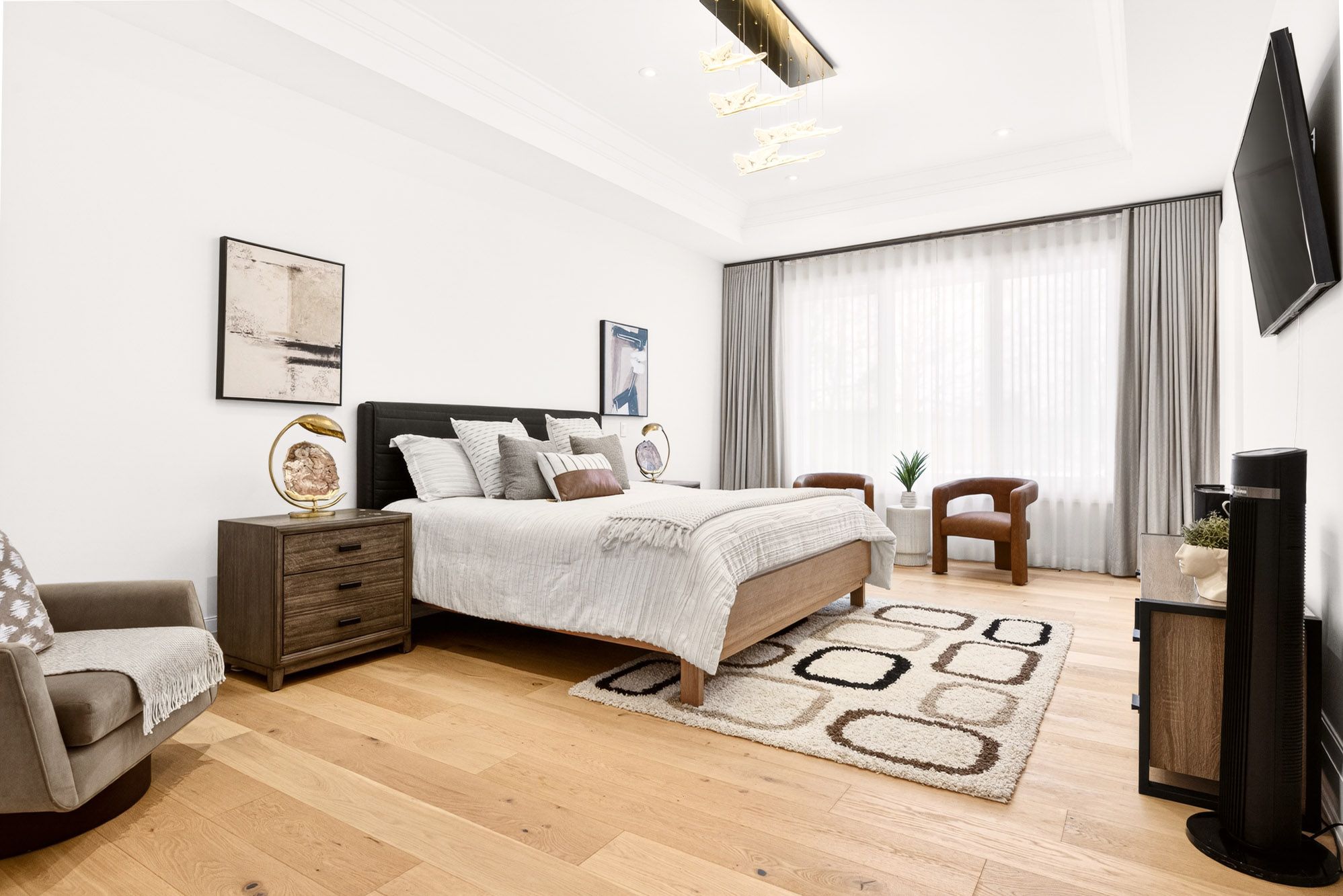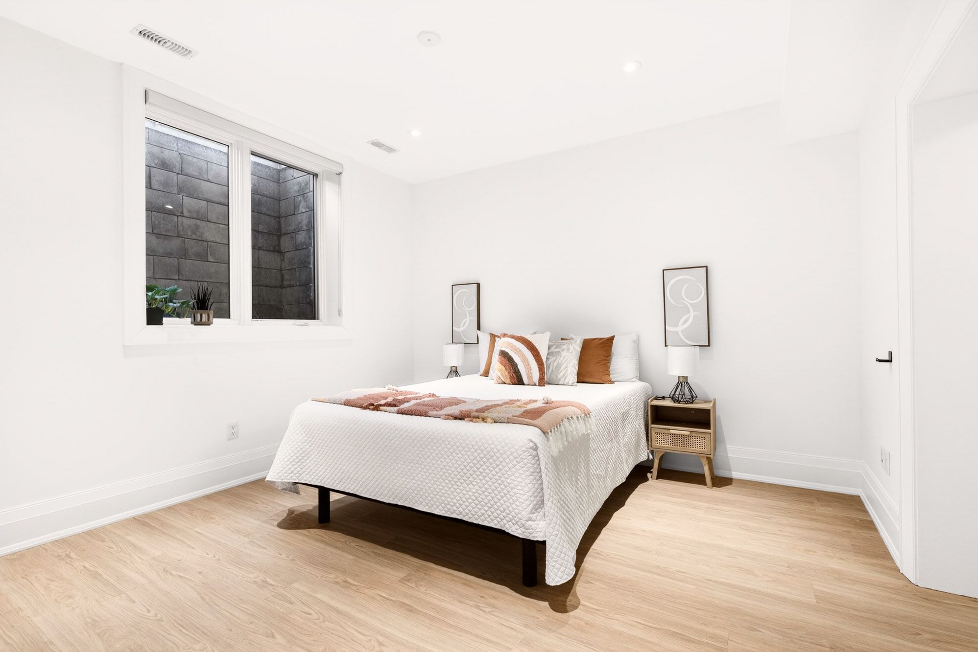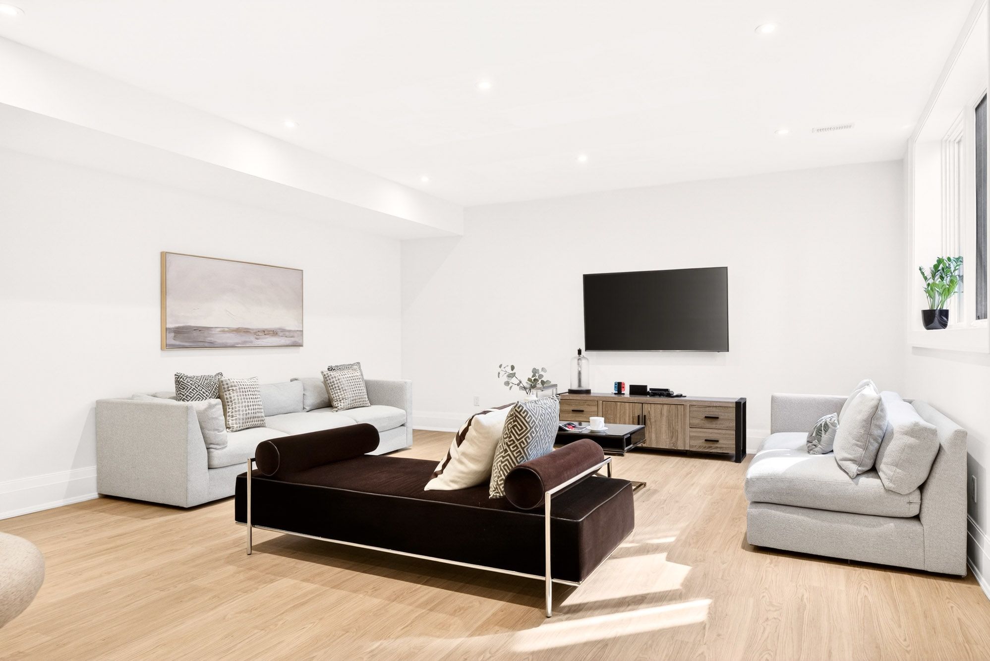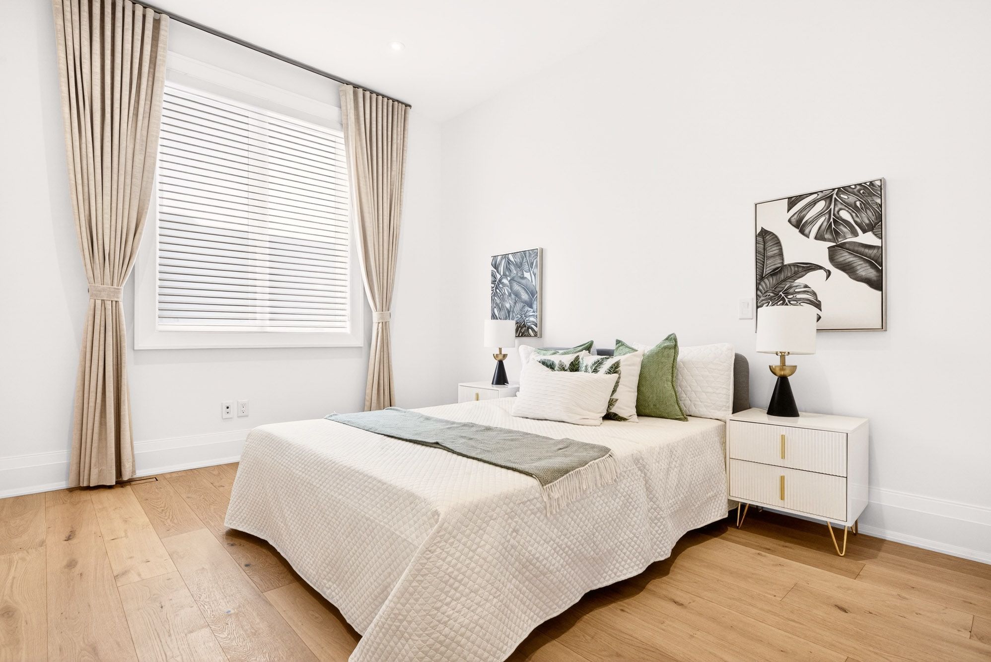 Exquisite custom-built luxury residence showcasing exceptional craftsmanship and thoughtfully curated high-end finishes throughout. Main floor features 11-ft ceilings and a 12-ft ceiling in the family room, creating an impressive sense of scale and openness. Functional open-concept layout seamlessly connects living, dining, and kitchen areas - ideal for both family living and elegant entertaining. Chef-inspired kitchen equipped with premium thermador appliances including built-in refrigerator, professional-grade gas range, microwave/oven combo, and dishwasher. Designer custom lighting fixtures are installed throughout the home, adding architectural character and refined ambiance to every space. Second floor offers 4 spacious bedrooms with well-proportioned layouts and excellent natural light. Finished basement provides an expansive recreational area featuring a custom wine cellar, wet bar, guest bedroom, full bathroom, oversized windows, and a custom-built high-end bunk bed - perfect for extended family or guests. Seamless indoor-outdoor living is enhanced by a beautifully designed california room complete with a custom high-end built-in bbq suite, creating the ultimate setting for outdoor entertaining. The home is equipped with a whole-house audio and home theatre system, with integrated sound extending to the outdoor california room for a fully immersive lifestyle experience. A rare opportunity to own a meticulously designed custom home combining volume, functionality, luxury amenities, and refined finishes.