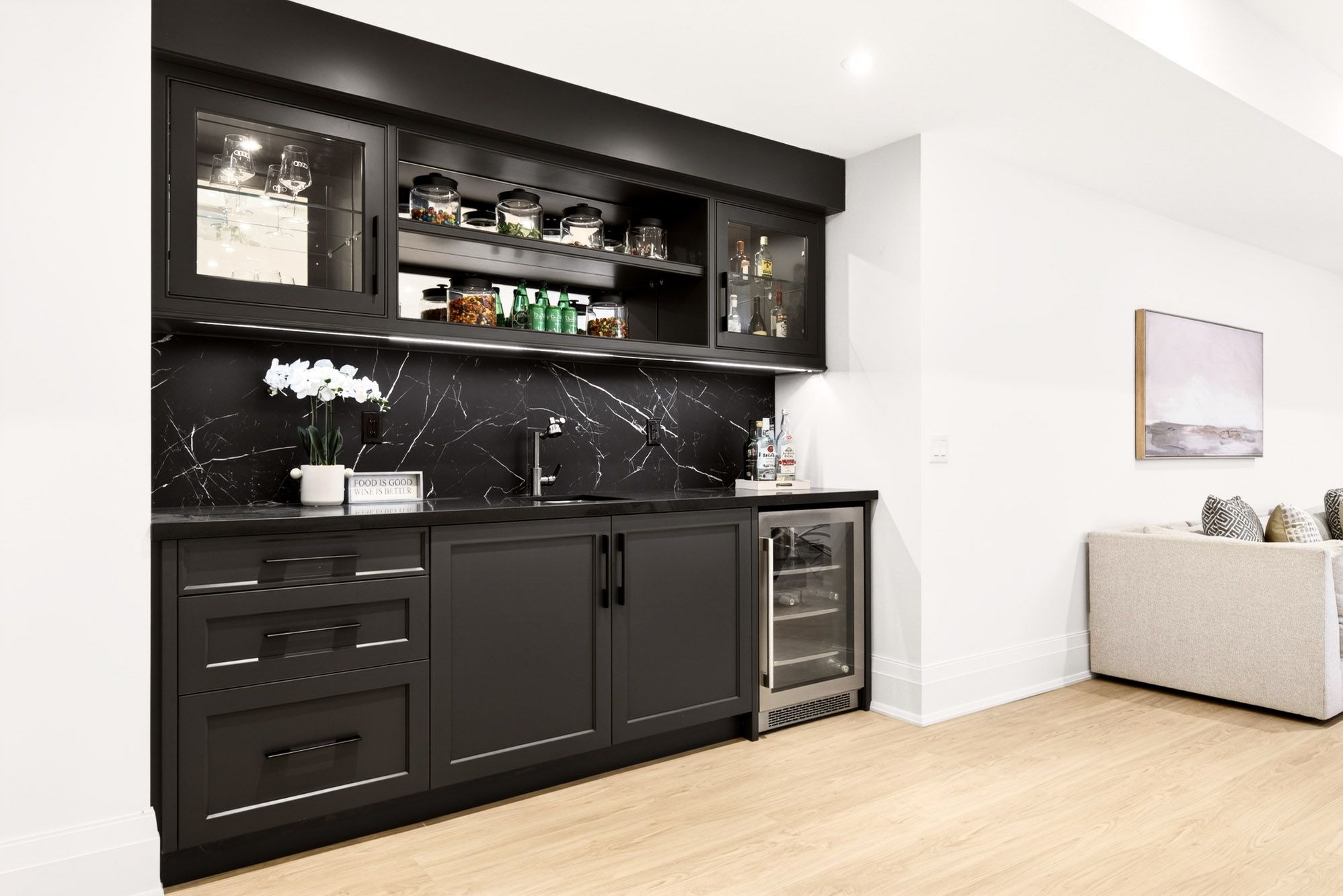 • Finished basement includes a recreational area, wine cellar, and guest accommodation.