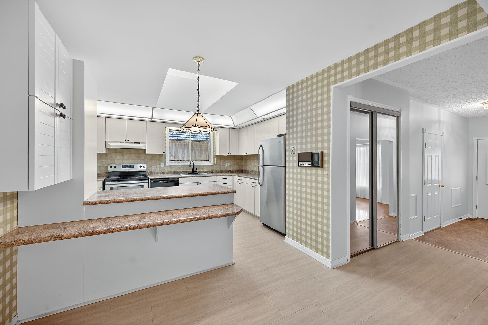 Welcome to 1262 nathaniel crescent, a solid brick bungalow offering an extraordinary opportunity to create your dream home in burlington's desirable maples community. Set on a 40 x 114. 83ft lot with mature trees, great curb appeal and a charming front porch, this residence is brimming with potential. With 1384 sq ft above grade and a functional layout, there is plenty of room to reimagine this space for your lifestyle. The main level includes a spacious living room with hardwood floors, a brick fireplace and a beautiful bay window overlooking the front yard. A formal dining room adjacent to the bright kitchen is just awaiting your modern touches. Walk down the tucked in hallway to your spacious primary bedroom, with ensuite bath and large walk in closet. A versatile second bedroom/den, second full bath and main level laundry completes this ground level living space. The lower level offers a large recreation room, 2generously sized bedrooms, another full 3 piece bath, and a huge unfinished workshop/utility space with a massive cold cellar for additional storage. You will be amazed at the amount of space, it just keeps going! The fully fenced backyard with a generous lawn provides a peaceful setting for family enjoyment or future landscaping projects. A single car attached garage with inside entry, and a private drive can easily accommodate 4 cars. Experience burlingtons unique lifestyle, with easy access to spencer smith park, the downtown core, forested hiking trails, golf courses, lasalle marina/boating and exquisite dining all while being ideally situated on a quite, private crescent just minutes to highways and the go train. Welcome home!!