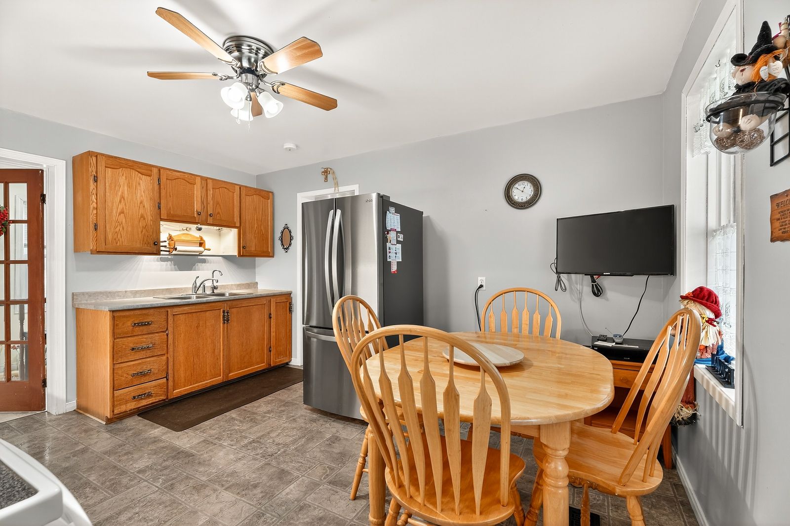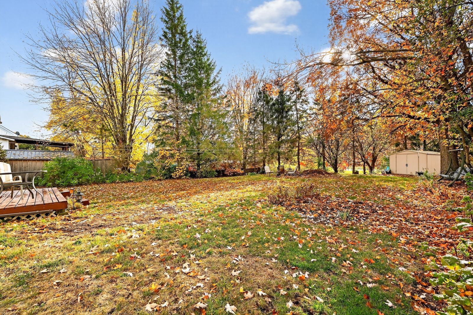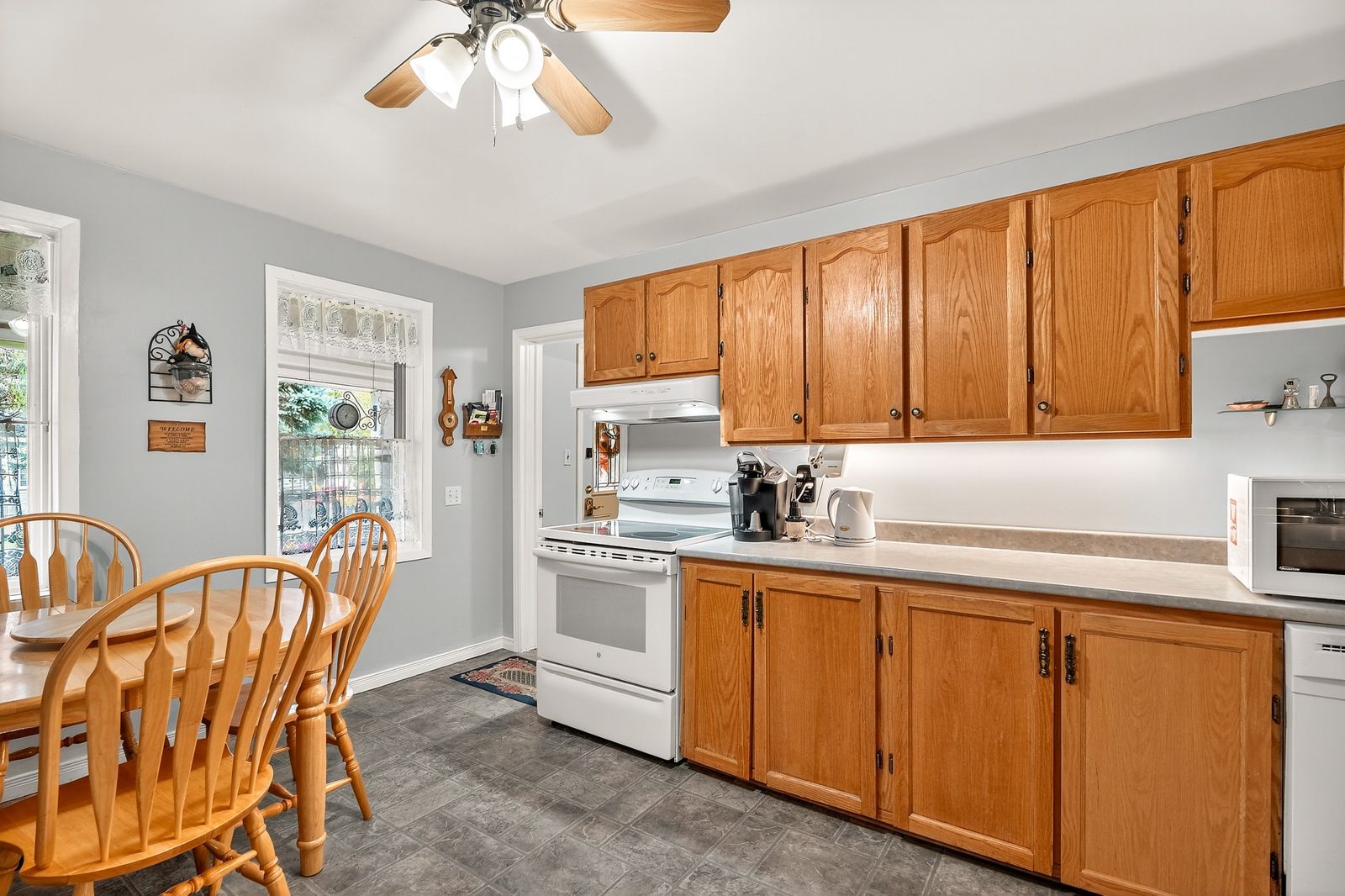 • Spacious kitchen and formal dining room overlook a private treed backyard.