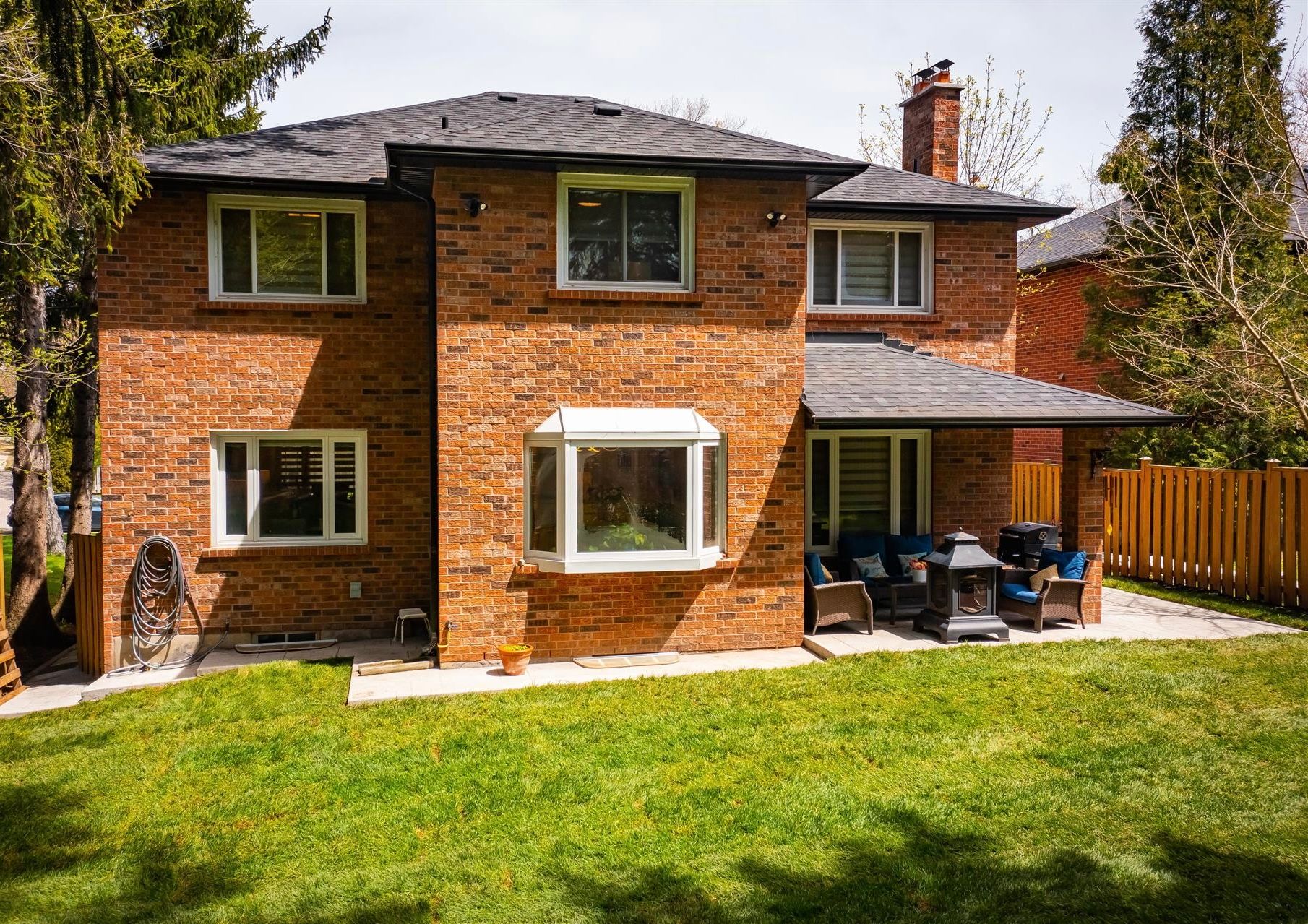 Welcome to kane road, tucked into the heart of lorne park, one of mississauga's most established and desirable neighbourhoods. From the moment you step inside, the home offers an immediate sense of space and natural light. A sweeping staircase, illuminated by a skylight above, draws you upward to an upper landing framed by soaring ceilings. The main level flows into a refined kitchen designed for both everyday living and entertaining, featuring maple cabinetry with built-in appliances, a 10-foot island, quartz countertops, and a sleek backsplash. It opens seamlessly into the living area with a modern fireplace and custom built-ins. A spacious main floor laundry and utility room offers convenient access to both the side yard and the garage. Upstairs, the layout presents a rare opportunity. The primary suite is complemented by two additional oversized bedrooms, each with its own ensuite and walk-in closet, along with a fourth bedroom ideal as a nursery, office, or guest room. The main and second floors are finished with 3/4-inch engineered maple hardwood, with soundproofed bedrooms and custom closet systems throughout. The finished basement features a separate entrance and includes a full kitchen, two bedrooms, a dedicated laundry area, and a full bathroom, offering excellent potential for an in-law suite or extended family living. The expansive backyard is surrounded by mature evergreens and includes a concrete patio and covered seating area, creating a private outdoor space with endless possibilities. This isn't just a home, it's where your legacy begins in one of mississauga's most coveted neighbourhoods, lorne park. Hwt (2023, rental), furnace 110k btu & ac (2020, owned), custom closets (2020), uponor plumbing, 200 amp panel, 3-in-1 connected fire alarms, roof & skylight, eaves/soffits/gutters w/ 2-layer leaf guard, concrete patio (all 2019)