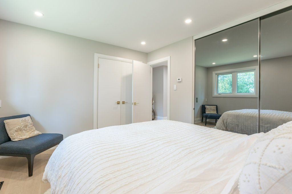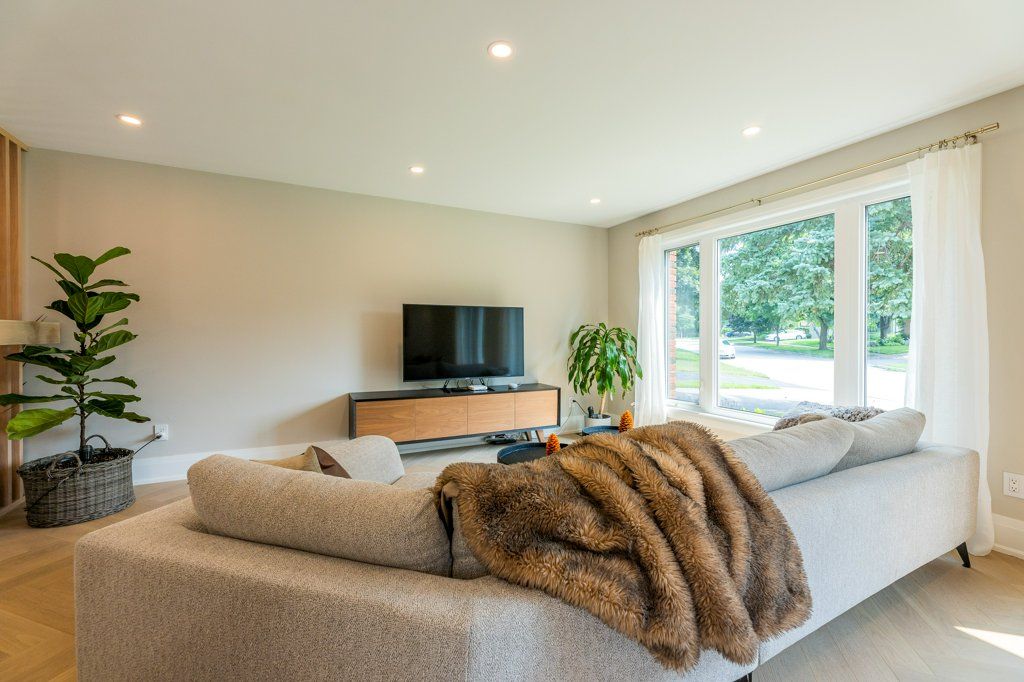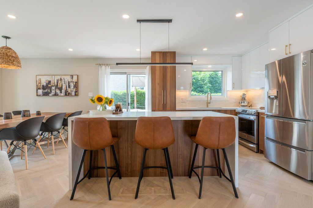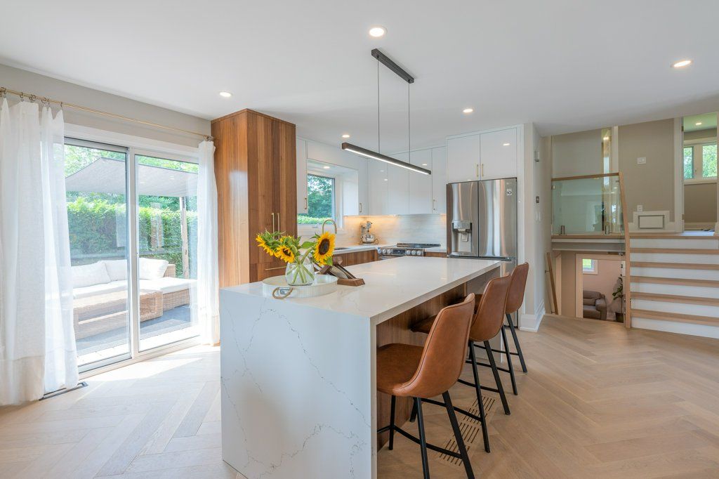 Impeccably renovated from top to bottom, the home combines contemporary elegance with superior attention to detail.! Nestled on a private, pie-shaped lot in the highly desirable falgarwood community in this home every detail has been thoughtfully designed to combine comfort and style , creating a sophisticated living environment. As you enter, the welcoming foyer greets you with a custom wood slat accent wall and a spacious double closet, the space opens into an impressive open concept living, dining and kitchen area the true heart of this home, all highlighted by stunning, heated herringbone hardwood floors, the smooth ceilings and plenty of pot lights, that add warmth and elegance to the space. A new custom kitchen is a true chefs dream, featuring quartz countertops, waterfall island, and stainless steel appliances. Perfect for entertaining, the kitchen opens directly to the large deck, ideal for dining or relaxing outdoors in privacy. Upstairs,you'll ascend beautiful wood steps complemented by sleek new glass railings, creating a bright and open feel. Three spacious bedrooms , each filled with ample natural light, a luxurious 5pc bathroom with separate glass enclosed shower, bathtub, showcasing tasteful tile work. The lower level is designed for comfort and entertainment, offering a cozy family room with a wood-burning fireplace as the main focus, a wet bar adds to the space's functionality,making it the perfect area for movie nights or hosting guests. A renovated 3-piece bathroom include a sleek glass enclosed shower, tasteful tile work and high quality fixtures. While the 4th bedroom or home office offers flexibility to suit your family's needs. This home is renovated for modern living and has energy-efficient led pot lights, and smart wi-fi light switches, allowing you to control your lighting with ease. Perfectly located,walking distance to parks, trails, schools, and public transit, oakville go station just minutes away