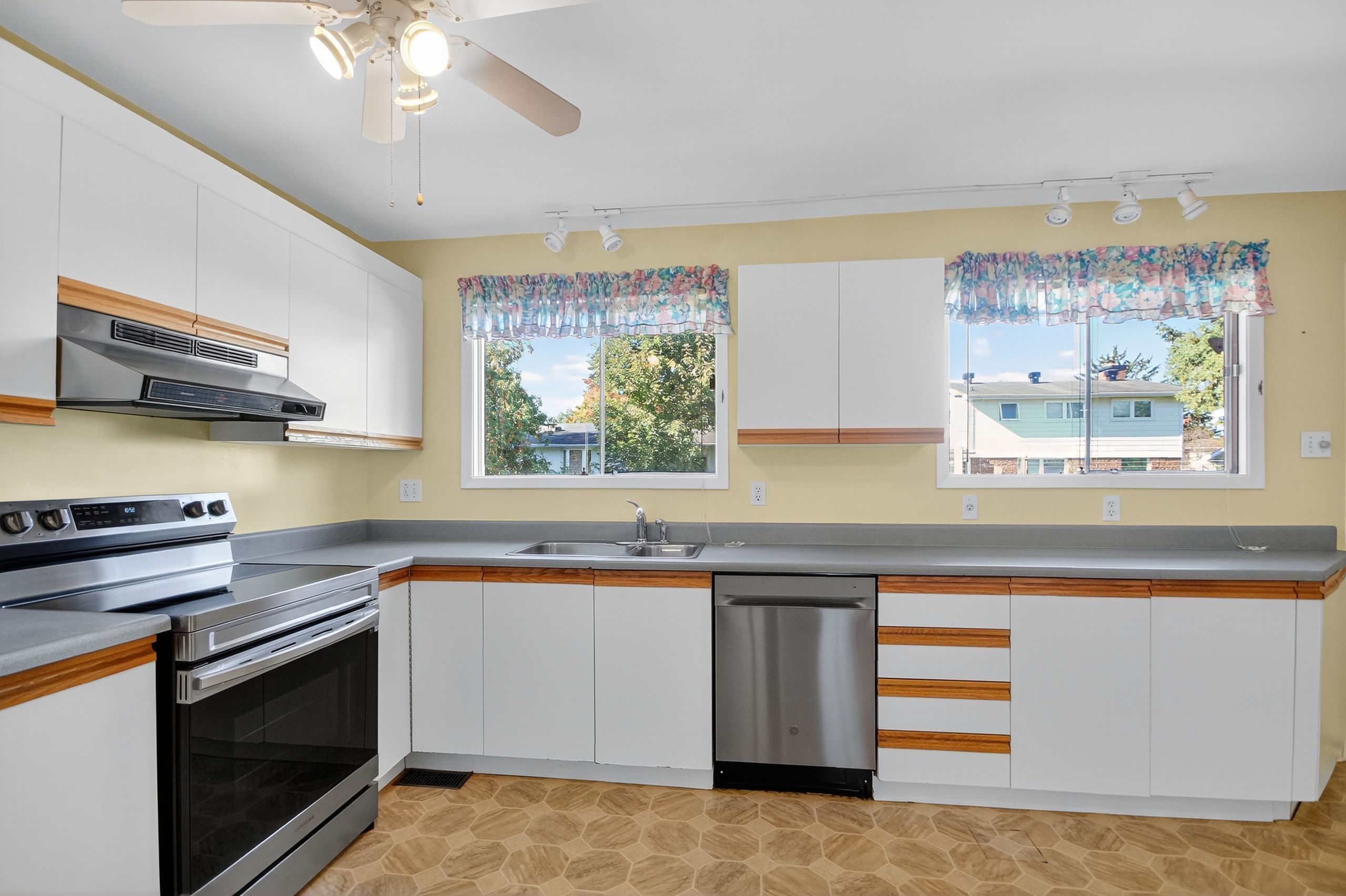 1264 morrison drive. 4 bedroom home with a 2nd floor micro office or walk-in linen closet. Note: rarely offered 2 car garage with inside access to the kitchen. (new garage door 2024) exceptionally large living room with a wood burning fireplace and hardwood flooring. Separate dining area with patio door to a massive rear deck (16 x 28 approx). Huge, eat-in kitchen with newer stainless steel appliances and another access door to the new massive deck. (the back half of the main level could easily be configured to include a main floor family room) hardwood flooring under carpeting on the 2nd level. Finished lower level with a wood stove (has not been used in 25 years - 'as is') quality architectural roof shingles installed 2020, new aluminum soffits and fascia, new shed, a/c 2018, hot water tank2025 is owned, new garage door and garage door opener.**24 hour irrevocable on all offers. Will be presented asap.**some photos have been virtually staged.**