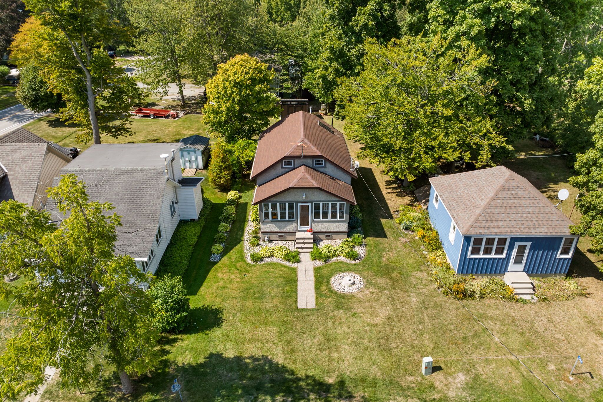 Welcome to the kind of place where life slows down and every day feels like a getaway. Tucked away in beautiful long beach with deeded beach access, this charming 3-season, 1 1/2 storey home invites you to unwind the moment you arrive. Start your mornings in the sun-drenched sunroom with a coffee and a good book, or spend cozy evenings curled up by the gas fireplace in the inviting living room. With two bedrooms on the main floor and a spacious upper-level retreat, there's plenty of room for family, guests, or a fun kids' hangout space. Thoughtful updates-including vinyl siding, double-hung windows, exterior doors, and improved yard drainage-mean you can focus on enjoying, not working. And the best part? It's truly move-in ready-furnishings, household items, yard equipment and more are all included. Just bring your clothes and start making memories. With the potential to easily convert to a year-round home, this is more than a cottage-it's your future lake lifestyle waiting to happen.