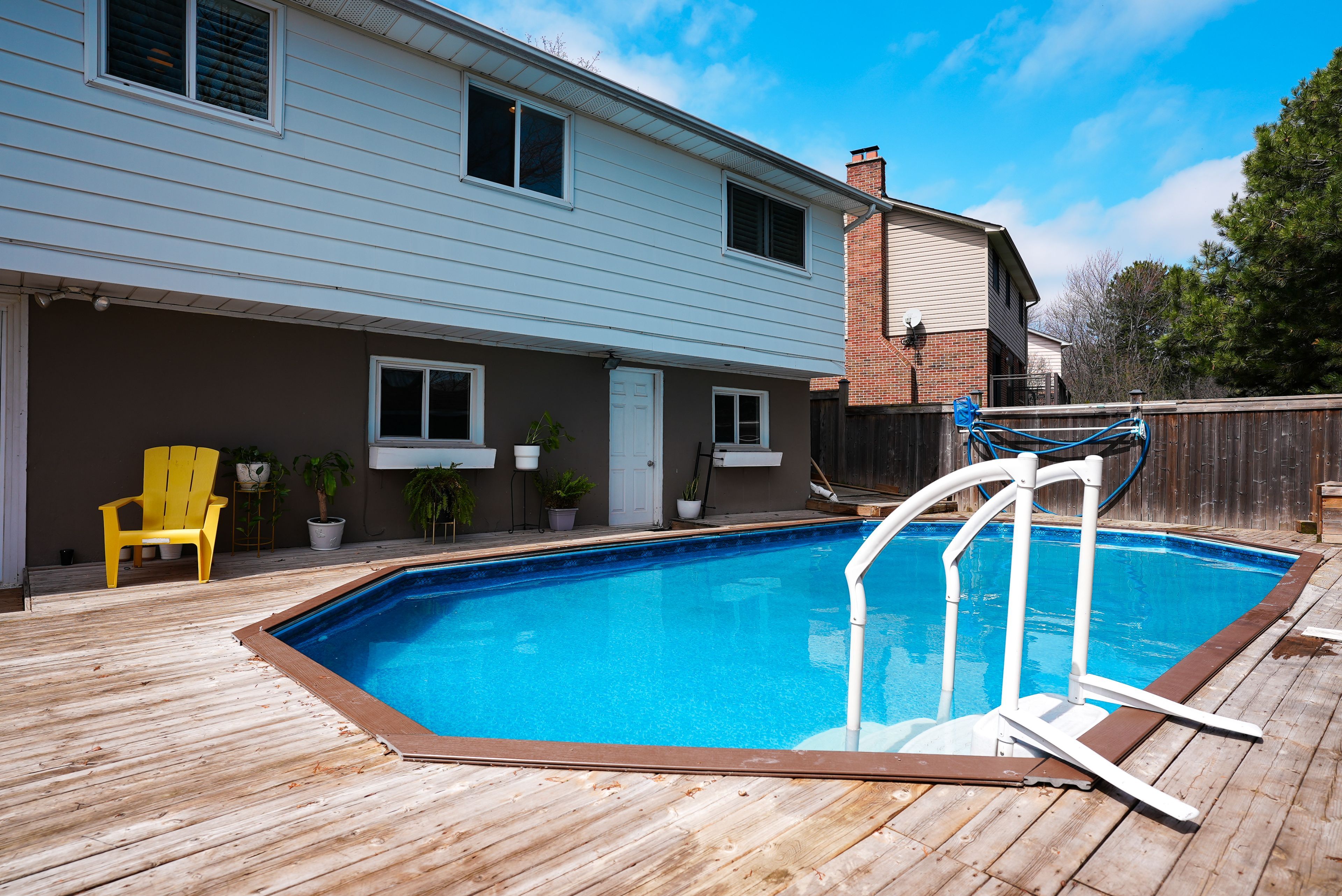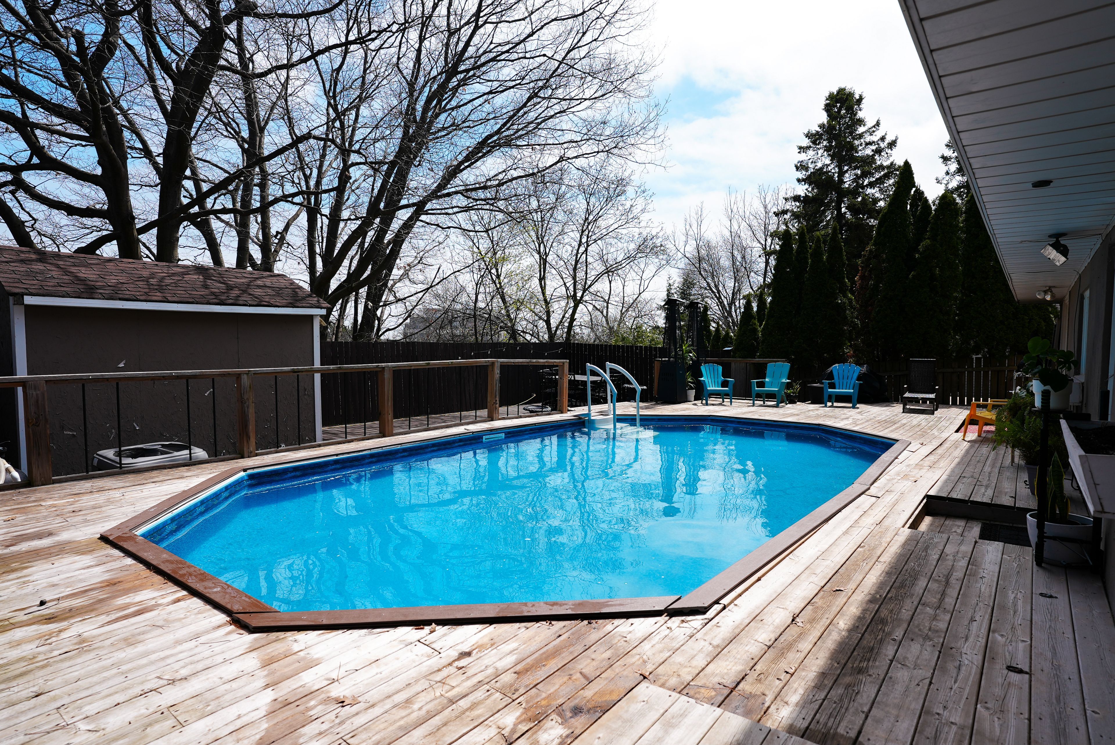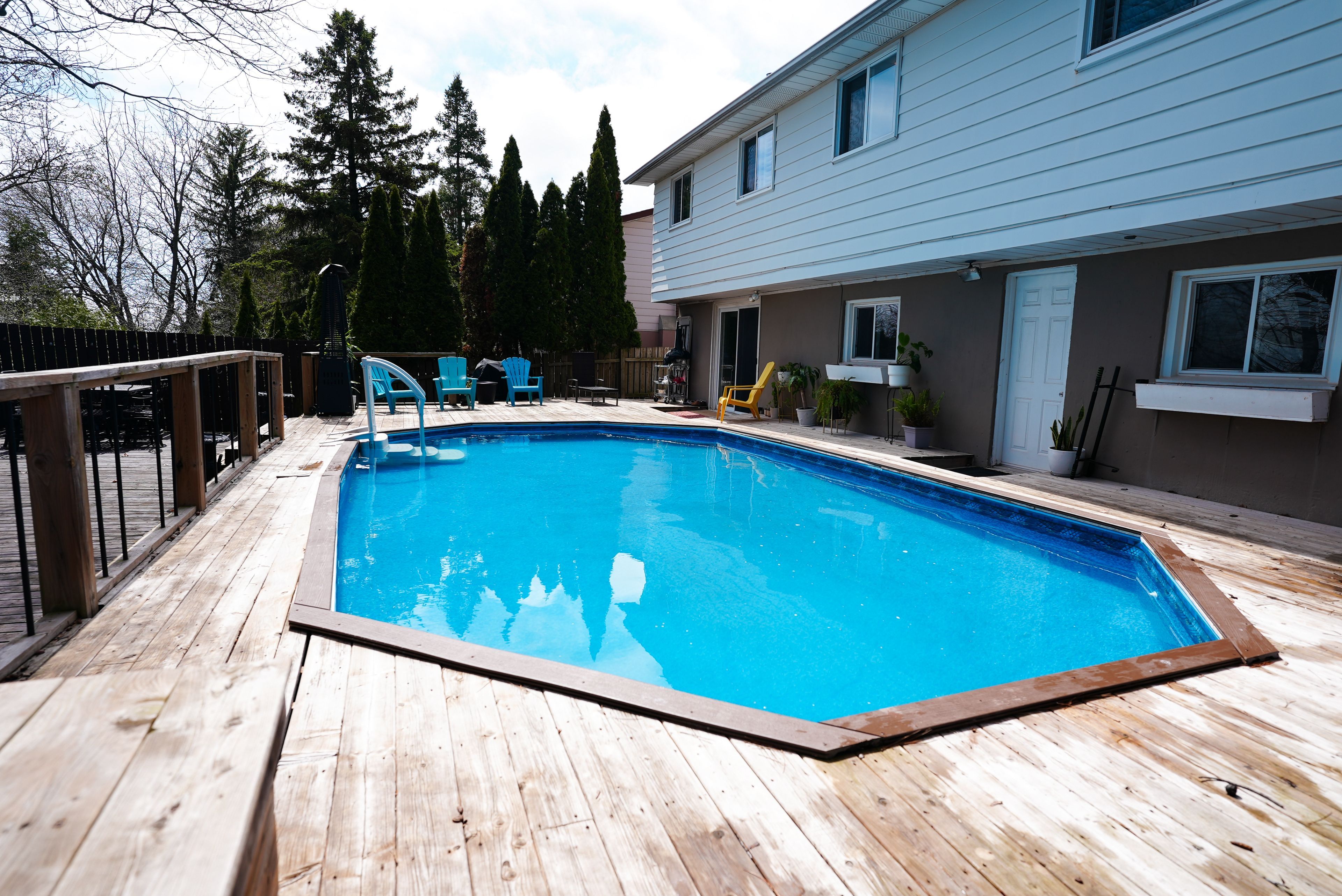 • Beautiful backyard oasis with a pool, bi-level decks, and gazebo.