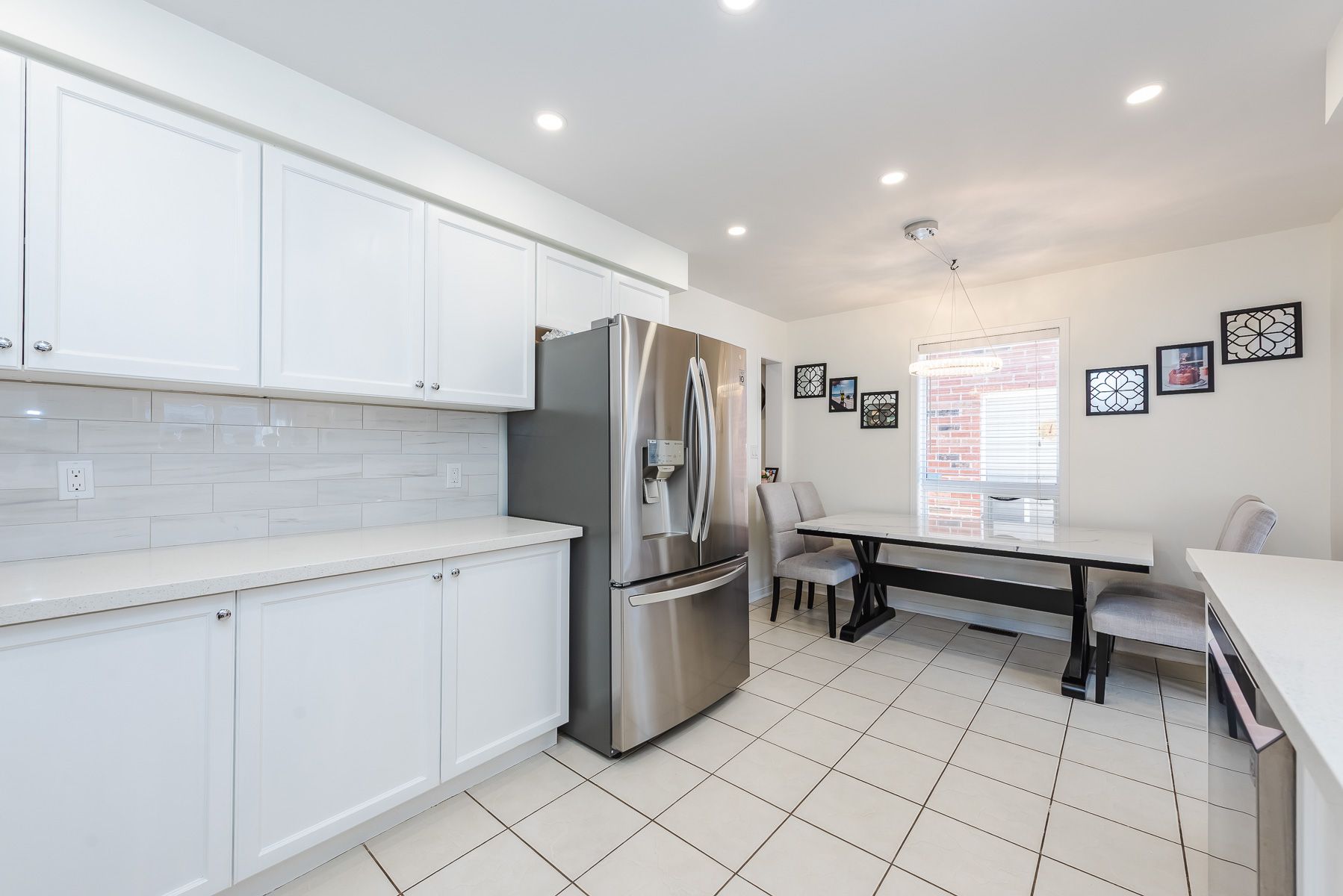 Must see to believe, guaranteed to surpass your every expectation! Nestled in milton's highly sought-after dempsey neighbourhood and located in one of the top-rated school districts, this impeccably maintained and tastefully upgraded semi-detached home offers exceptional value, style and pride of ownership. This sun-filled, bright and airy home features a modern open-concept layout perfect for both entertaining and everyday living. The spacious living room showcases hardwood floors, a cozy gas fireplace and walk-out to a beautifully landscaped, fully fenced backyard with premium interlock and no grass. An ideal low-maintenance space for summer bbqs, relaxing and gatherings with family & friends. The modern kitchen features quartz countertops, stylish backsplash, newer stainless steel fridge & stove (2023), an upgraded kitchen window overlooking the living area and excellent prep space. Generous sized bedrooms offer comfort and flexibility, while the upper-level jack & jill washroom provides direct access from the second bedroom, making it an excellent option as a second primary bedroom. The finished basement adds valuable living space with a spacious rec room/workspace perfect for a home office, media room, gym or kids play area. Carpet-free throughout and truly move-in ready, this home also features rare 4-car driveway parking with no sidewalk. Recent upgrades include exposed concrete driveway extension & sidewalk, renovated primary ensuite shower area (2025), renovated laundry area (2025), newer washer & dryer (2022), approximately 2-year-new furnace & humidifier, added interior garage access, 1-year-new water softener and water filter ro system, custom closet organizers and more. Conveniently located minutes to hwy 401, walmart, canadian superstore, banks, kumon, parks, schools, transit and all amenities. A perfect opportunity for young couples, first-time buyers or small families seeking a turn-key home in one of milton's most desirable communities.