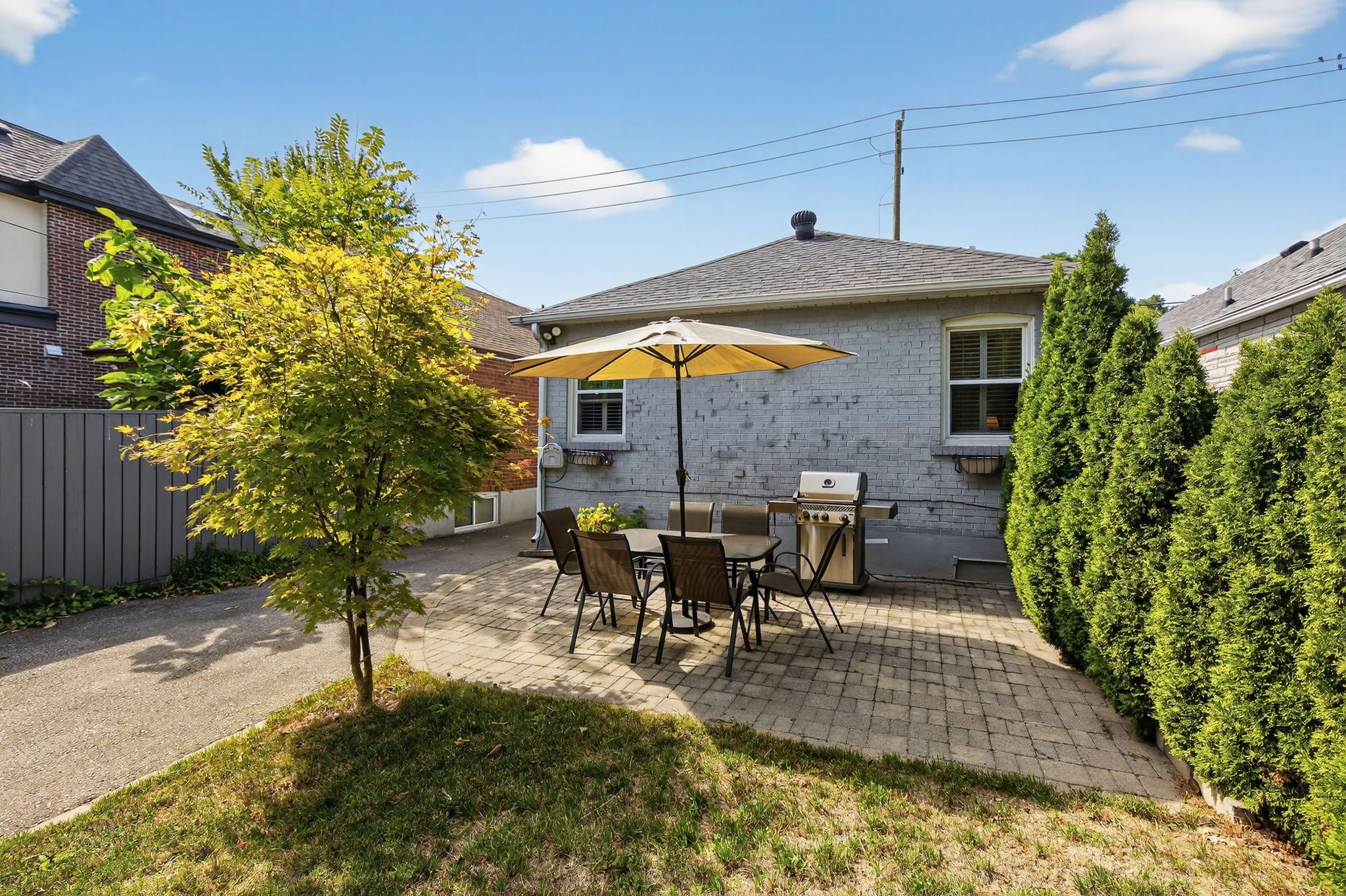 • Fully fenced backyard with patio space, perfect for entertaining guests.