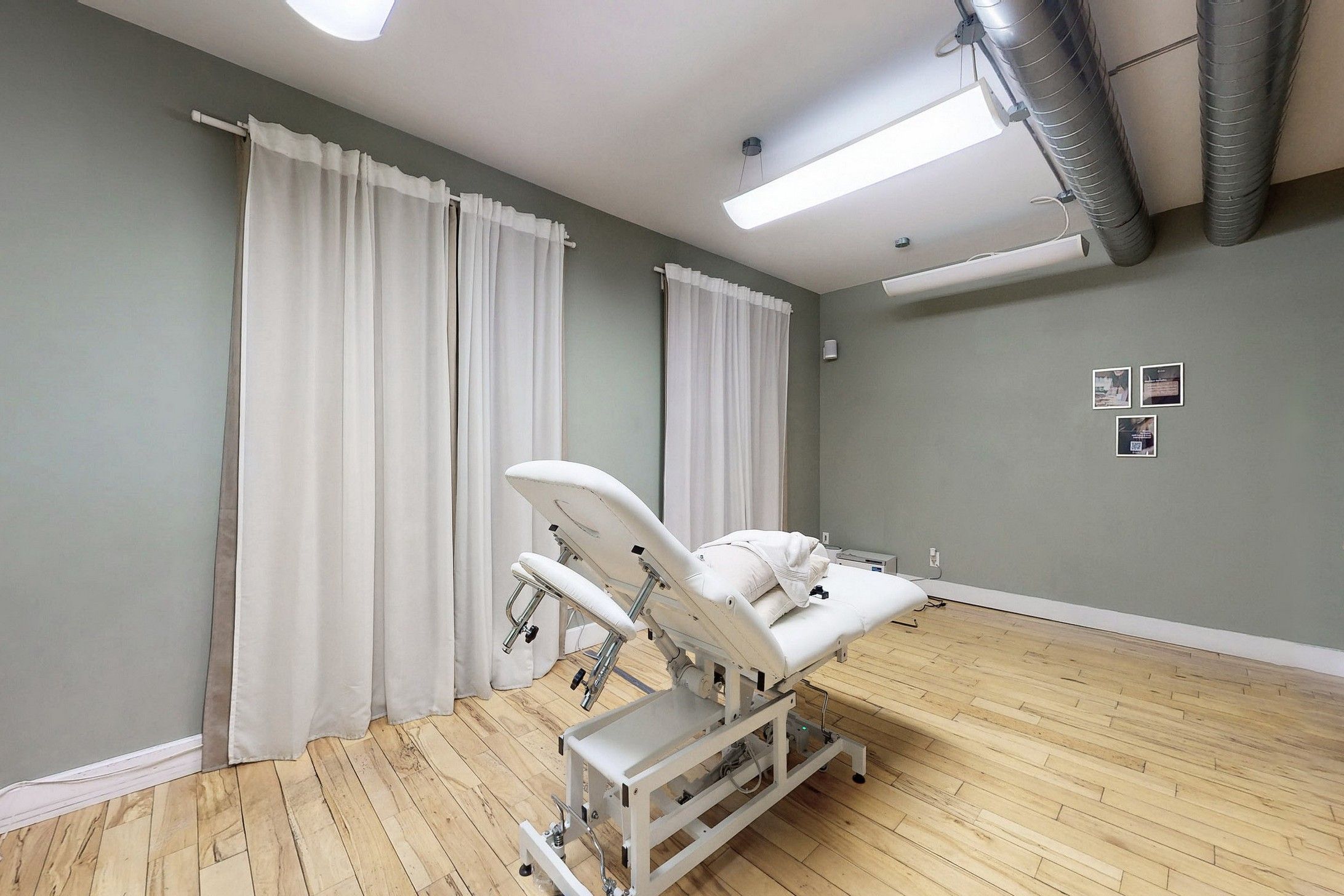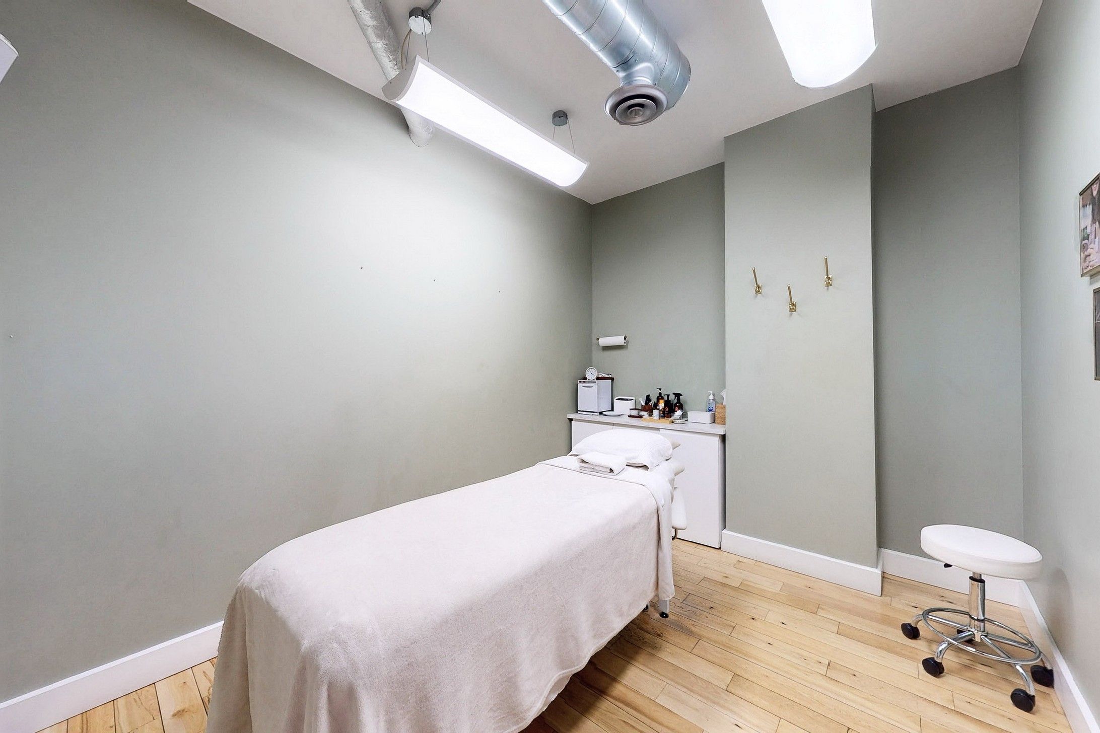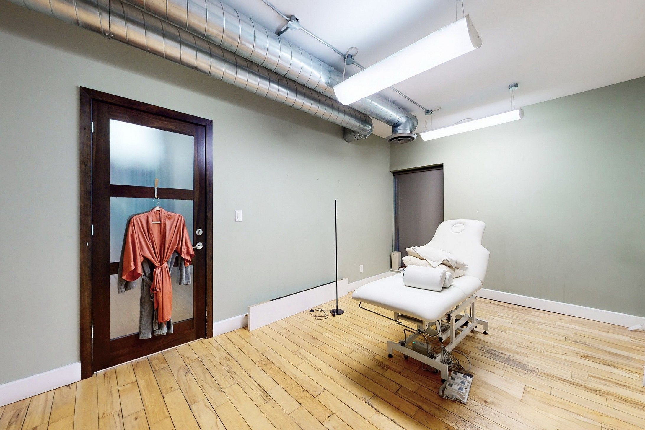 • Multiple private treatment rooms equipped with necessary plumbing and lighting.