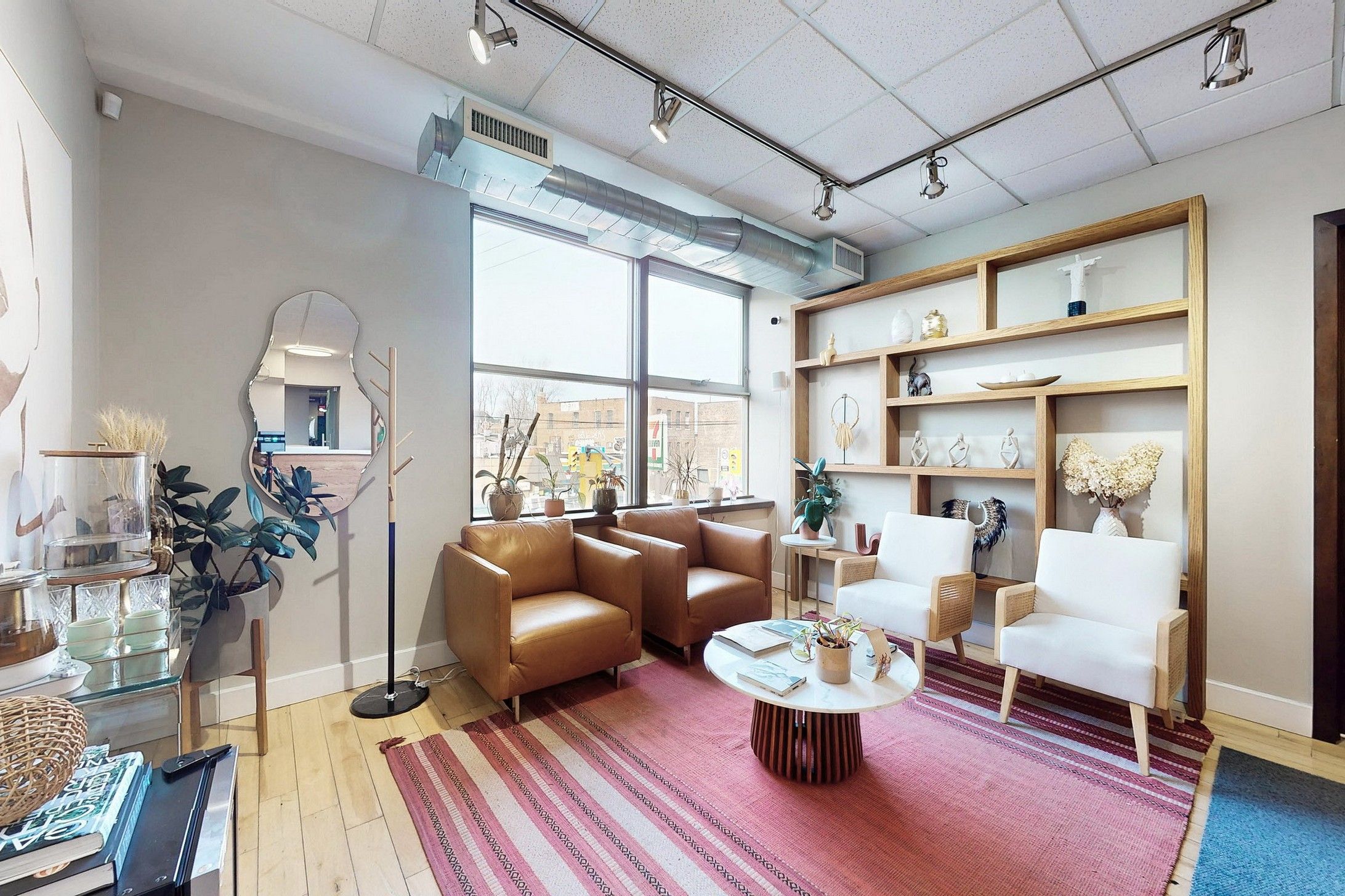 Turnkey 3,100sq. Ft. Salon & spa space in the heart of trinity-bellwoods. Professionally built-out with high-end finishes and thoughtfully designed for beauty and wellness operators. Features multiple private treatment rooms configured with plumbing, electrical outlets and professional lighting. Welcoming reception area, spacious waiting/lounge, private office, kitchenette, washroom facilities and storage/back-of-house space. Modern design throughout. Suitable for salon, spa, wellness, medical aesthetics or other commercial retail uses permitted within the building's zoning. Excellent pedestrian exposure on dundas street west in a vibrant mixed-use neighbourhood.