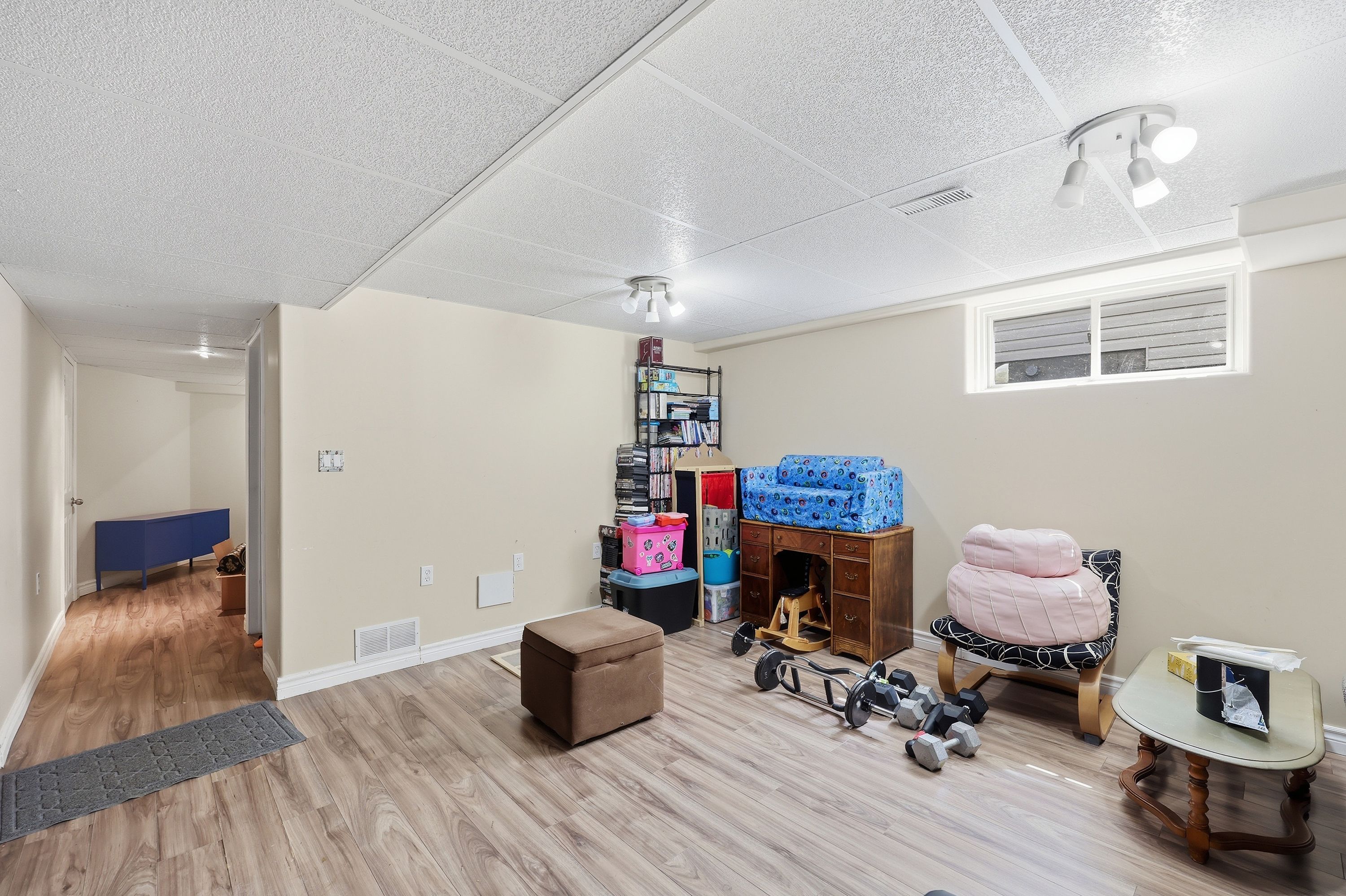 • Lower level includes a large rec room and extra living space.