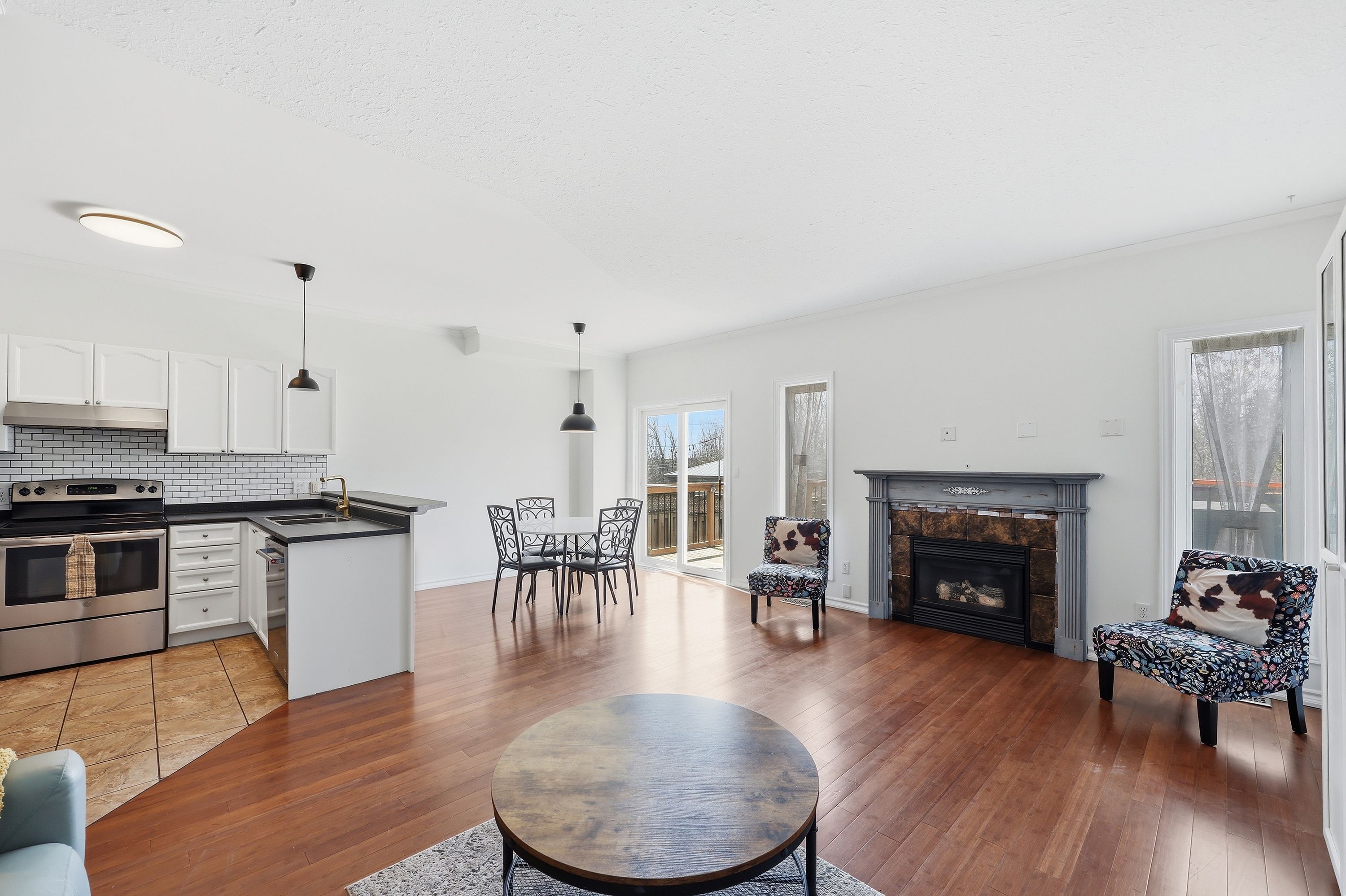 • Bright open concept on main floor with a cozy gas fireplace.