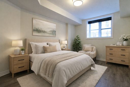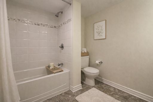 • Bright two-bedroom, two-bathroom condo with open-concept living and dining area.
