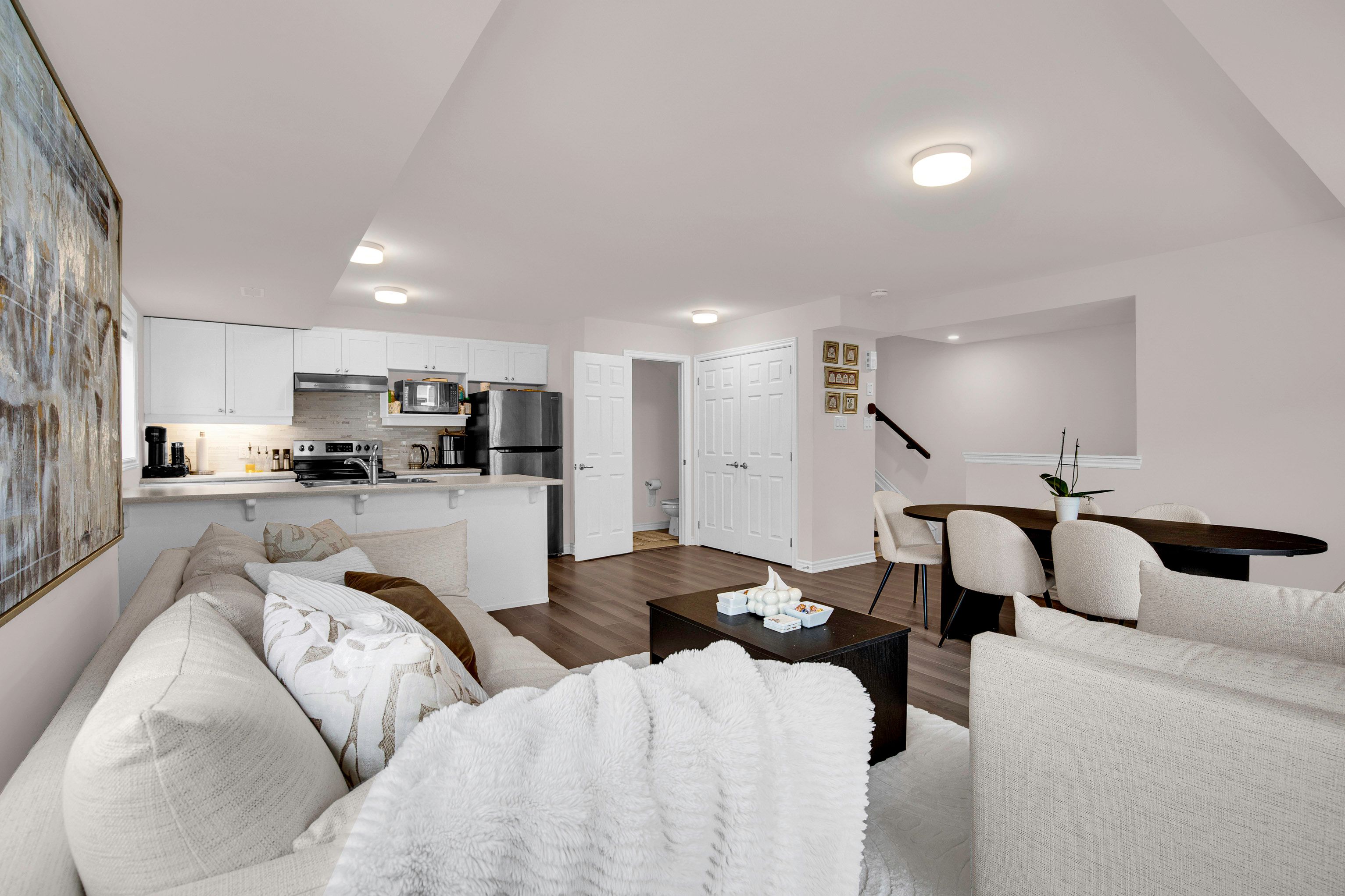 Bright, beautiful, functional and contemporary upper unit condo townhouse is a classic example of modern living. Nestled in a serene and peaceful neighborhood of barrhaven, steps away from the jock river, this gem is sure to impress you. Walking distance to barrhaven marketplace, beautiful parks, top-rated schools. This 3 bedroom unit is a prime example of comfort meets pragmatism, with the laundry located on the upper level for ease of use. 2 balconies, one on the main level to entertain and the other dedicated to a bedroom enhancing it's charm. The open concept main level is spacious with ample room for a dining and living areas. The kitchen is both stylish and functional, boasting stainless steel appliances, upgraded cabinetry, and a large side window for superior ventilation and light. Easy access to highway 416 & 417. All rental applications must be accompanied by: 1. Letter of employment, latest issued within past 15 days of applying. 2. Copies of your 3 most recent paystubs. 3. Full credit report in pdf format 4. A copy of your valid driver's license/ govt. Issued photo i. D. 5. Fully filled rental agreement form 6. Schedule b. Tenants to pay all utilities and hot water tank rental. Proof of insurance and utilities moved under tenant's name to be provided at least 2 days before the occupancy date. The landlord is willing to provide the unit furnished for an additional cost of $50/ month on top of the agreed upon rent. Some pictures are virtually staged and the furniture shown is only virtual. The actual furniture provided will be different