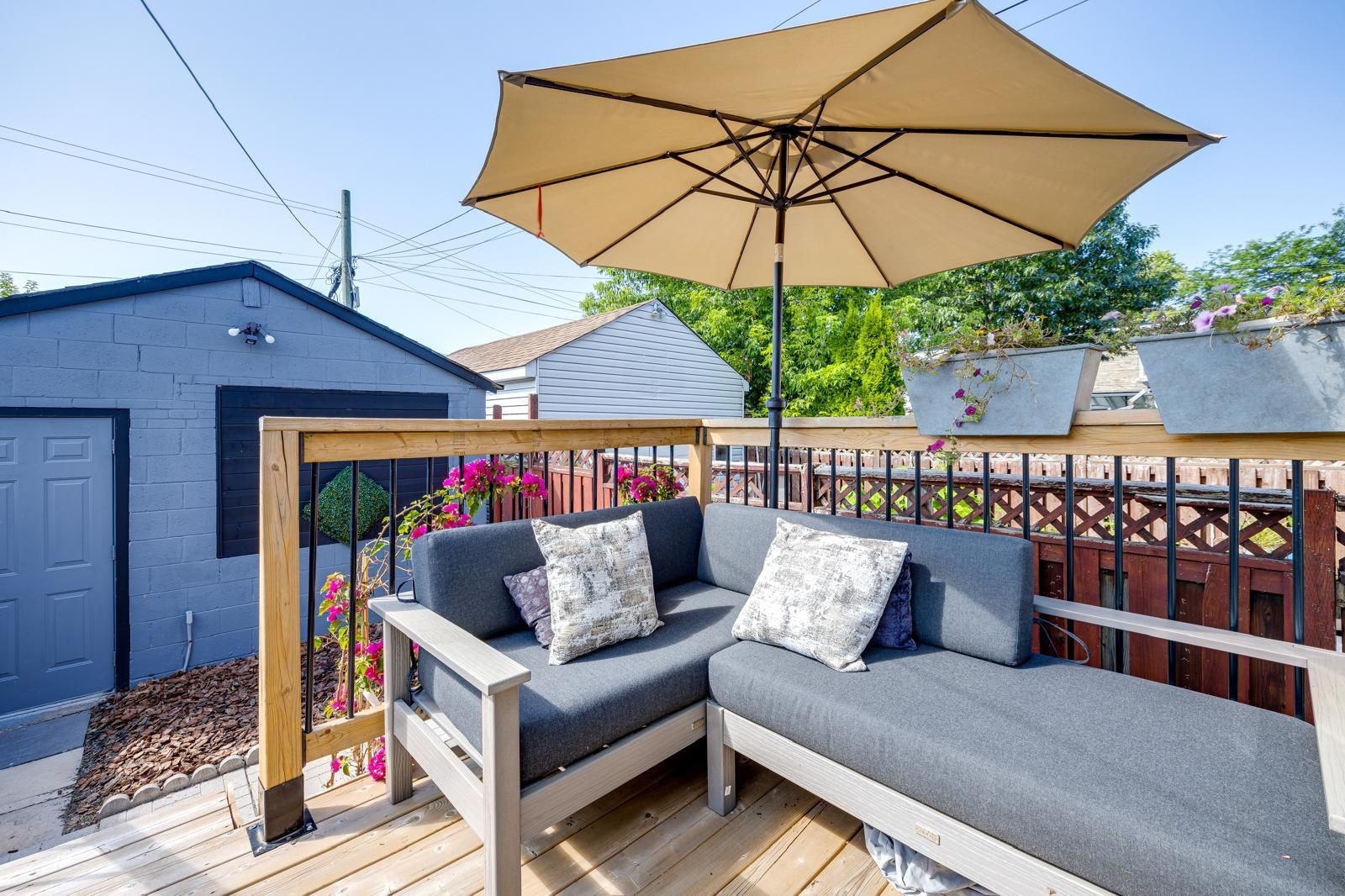 • Private fenced yard with a deck for outdoor relaxation and entertaining.