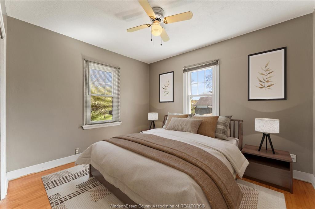 61 foot frontage lot for this beautiful turn key home in heart of amherstburg backing onto no rear neighbours. This 2 bedroom, 2 full bathroom home backs onto open field area of amherstburg public school. Main floor offers hardwood flooring, 2 bedrooms, full 4pc bath, dining room and kitchen while the lower level offers family room with additional 3pc bathroom and tons of storage and utility area. Finished driveway and fenced yard.