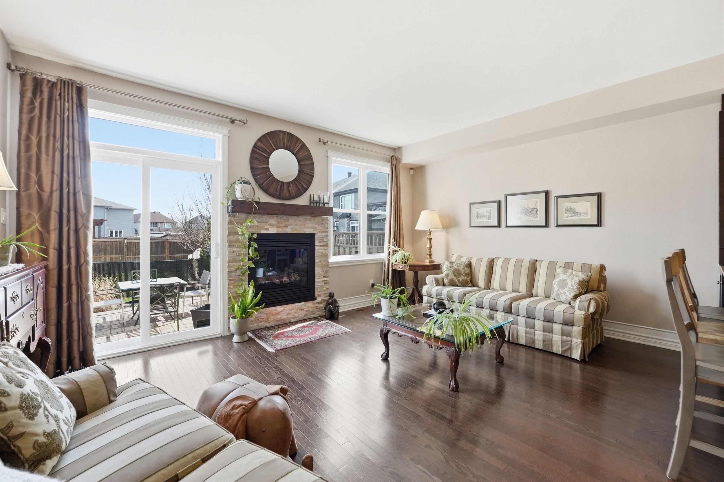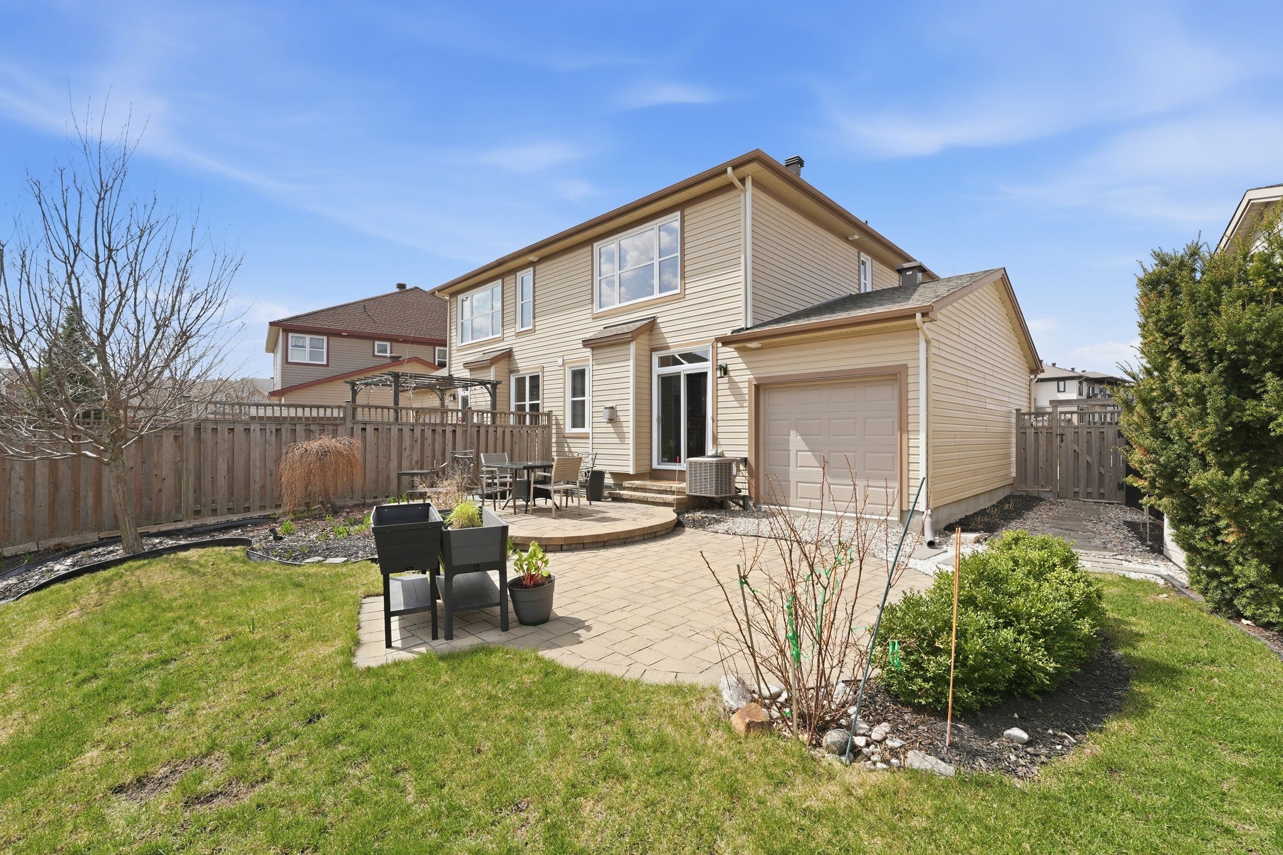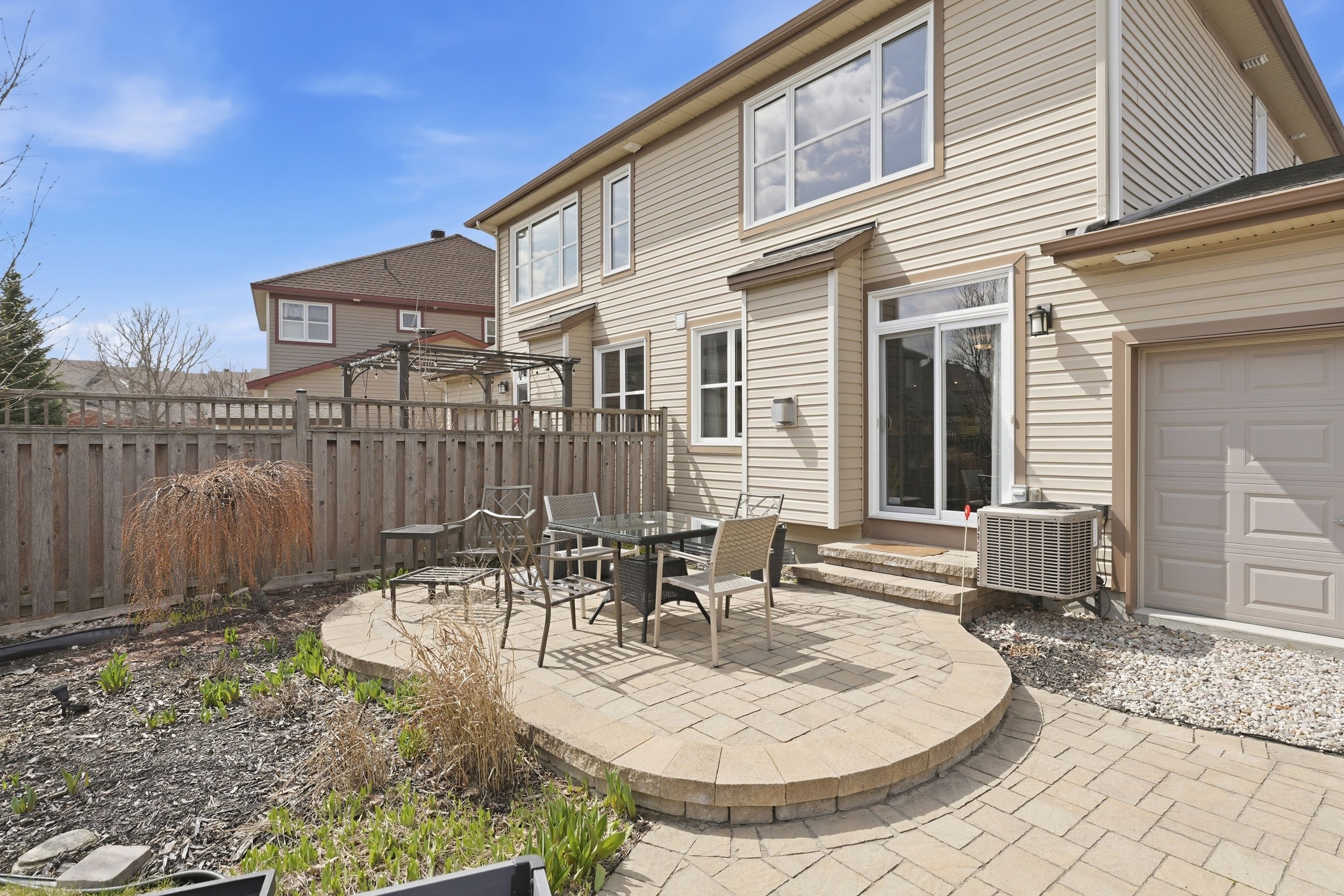 Welcome to 127 beatrice drive, a beautifully maintained 3 bedroom, 4 bathroom family home offering 2,231 sqft of thoughtfully designed living space on a desirable pie-shaped lot in one of barrhaven's most convenient and sought-after locations. Perfectly positioned across from a private park and just minutes to everyday amenities, this home offers an ideal balance of comfort, space, and lifestyle. From the moment you arrive, the fully landscaped front yard, stone pathway, and upgraded porch columns create standout curb appeal. Step through the oversized 42-inch front door into a bright interior featuring rich hardwood flooring throughout the main level, elegant crown molding in the formal sitting and dining rooms, and spaces designed for everyday living and entertaining. The open concept kitchen and living room form the heart of the home. The kitchen features granite countertops, upgraded cabinetry with soft-close features, glass display cabinets, and thoughtful storage additions that blend beauty with function. The adjoining living area is warm and welcoming, perfect for entertaining or relaxing at the end of the day. Upstairs, the spacious primary bedroom retreat continues the hardwood flooring and offers a walk-in closet and private ensuite. Two additional bedrooms provide comfortable space, while a versatile flex area at the top of the stairs creates an ideal home office or study. Second-floor laundry adds everyday convenience. The finished basement with a powder room extends your living space, perfect for movie nights, a home gym, or a quiet retreat. Step outside to a beautifully landscaped backyard on a pie-shaped lot, complete with a double stone patio and side pathway with pavers, ideal for summer entertaining. Located less than a minute walk to the park, about 5 minutes to farm boy, and with easy access to woodroffe, greenbank, schools, shopping, and recreation, 127 beatrice drive offers comfort, thoughtful upgrades, and an exceptional location.