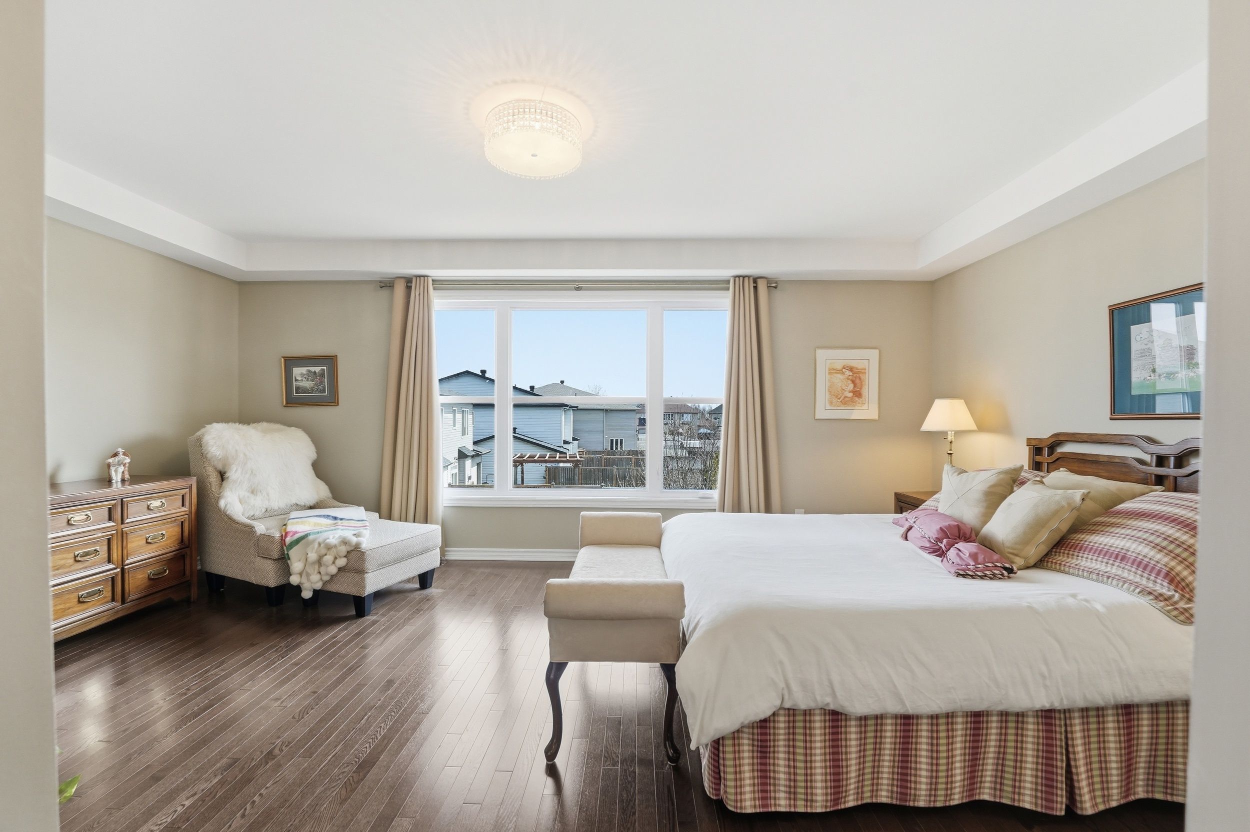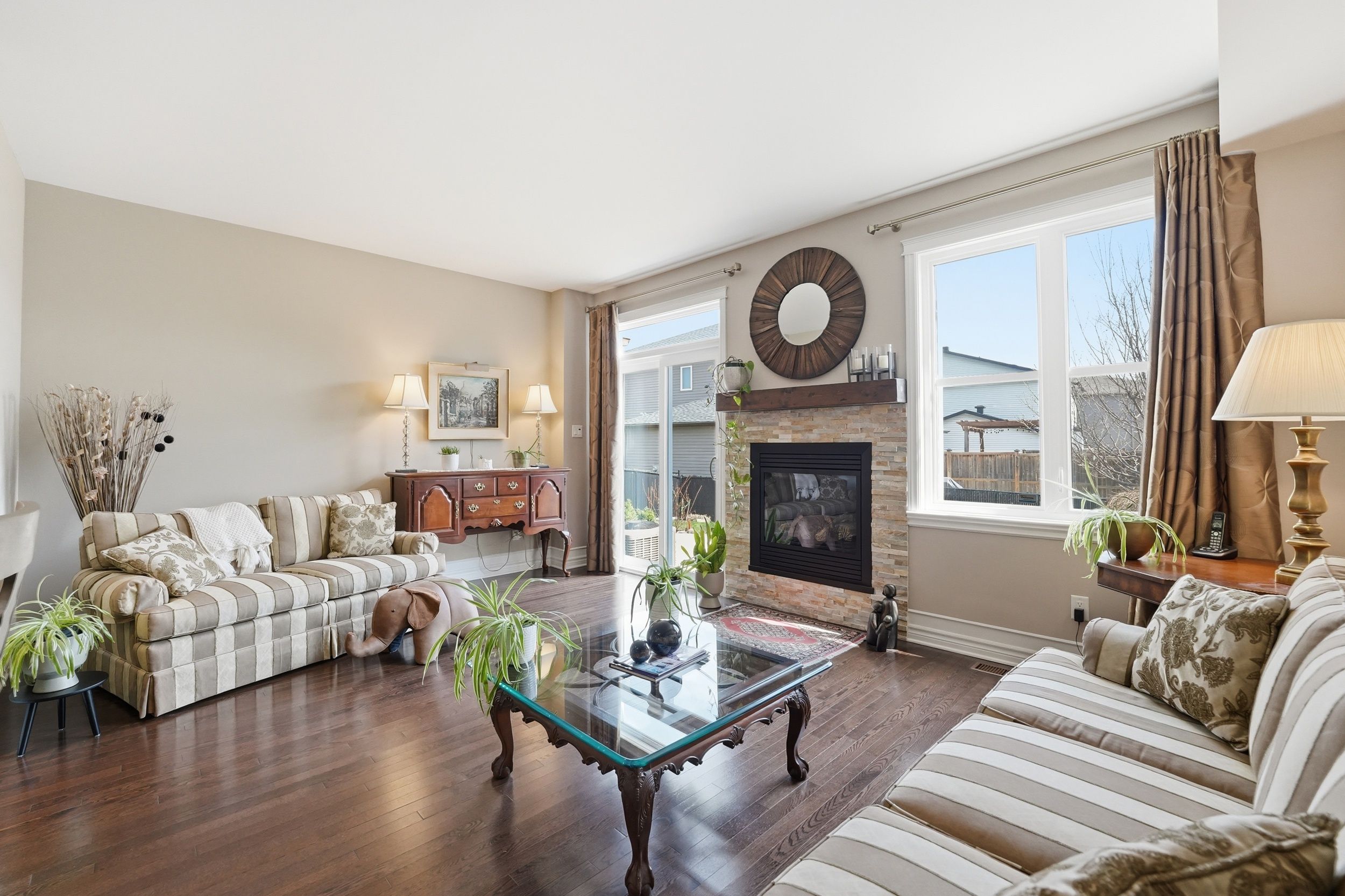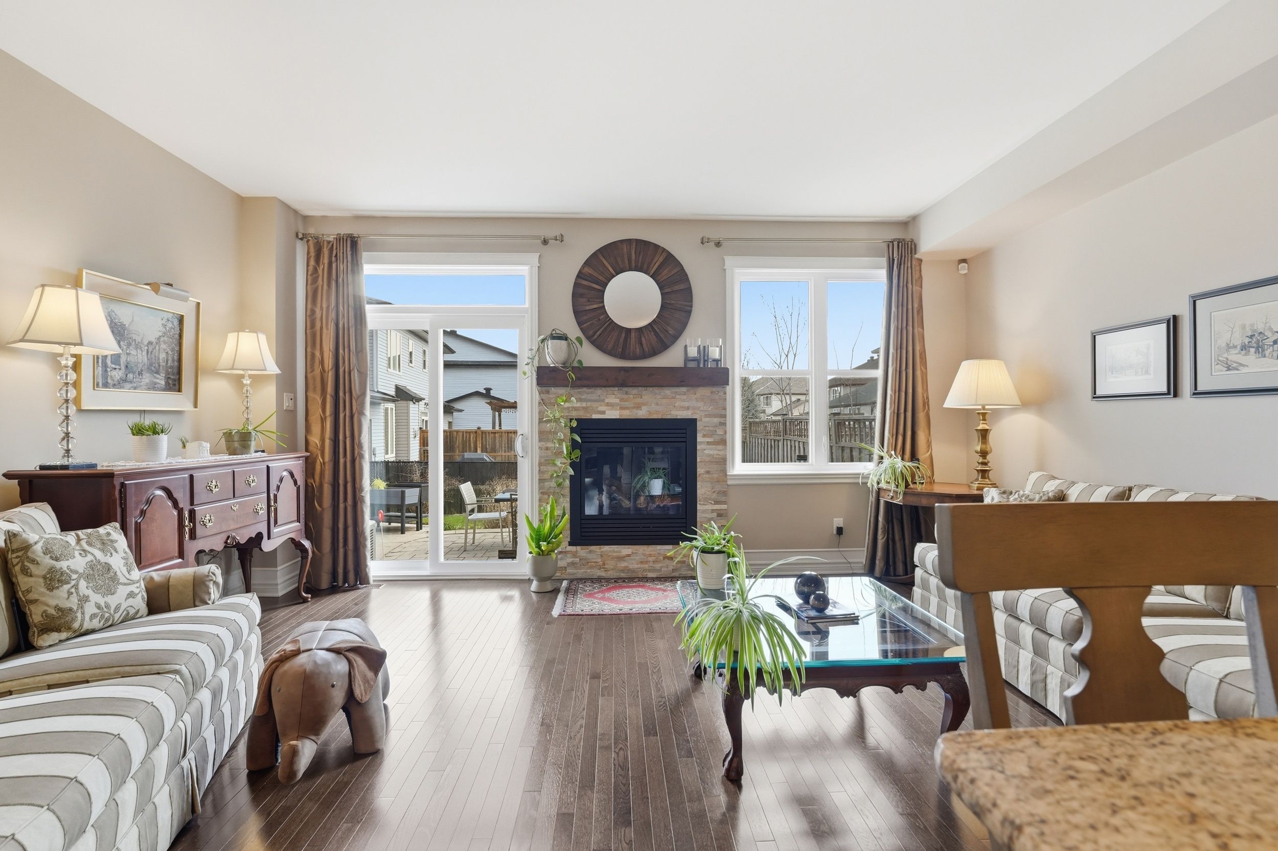 Welcome to 127 beatrice drive, a beautifully maintained 3 bedroom, 4 bathroom family home offering 2,231 sqft of thoughtfully designed living space on a desirable pie-shaped lot in one of barrhaven's most convenient and sought-after locations. Perfectly positioned across from a private park and just minutes to everyday amenities, this home offers an ideal balance of comfort, space, and lifestyle. From the moment you arrive, the fully landscaped front yard, stone pathway, and upgraded porch columns create standout curb appeal. Step through the oversized 42-inch front door into a bright interior featuring rich hardwood flooring throughout the main level, elegant crown molding in the formal sitting and dining rooms, and spaces designed for everyday living and entertaining. The open concept kitchen and living room form the heart of the home. The kitchen features granite countertops, upgraded cabinetry with soft-close features, glass display cabinets, and thoughtful storage additions that blend beauty with function. The adjoining living area is warm and welcoming, perfect for entertaining or relaxing at the end of the day. Upstairs, the spacious primary bedroom retreat continues the hardwood flooring and offers a walk-in closet and private ensuite. Two additional bedrooms provide comfortable space, while a versatile flex area at the top of the stairs creates an ideal home office or study. Second-floor laundry adds everyday convenience. The finished basement with a powder room extends your living space, perfect for movie nights, a home gym, or a quiet retreat. Step outside to a beautifully landscaped backyard on a pie-shaped lot, complete with a double stone patio and side pathway with pavers, ideal for summer entertaining. Located less than a minute walk to the park, about 5 minutes to farm boy, and with easy access to woodroffe, greenbank, schools, shopping, and recreation, 127 beatrice drive offers comfort, thoughtful upgrades, and an exceptional location.