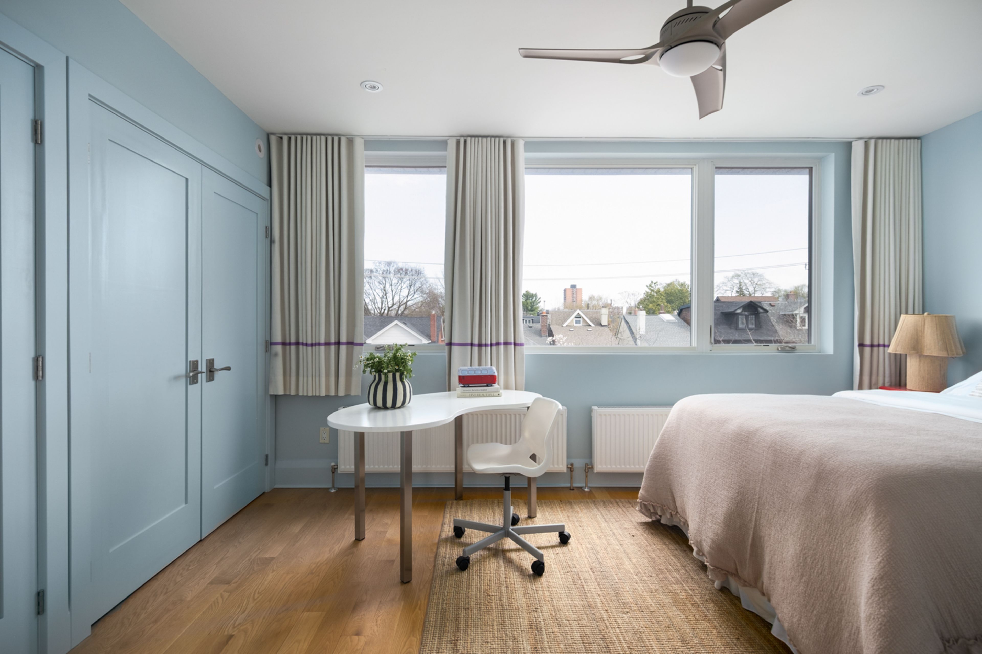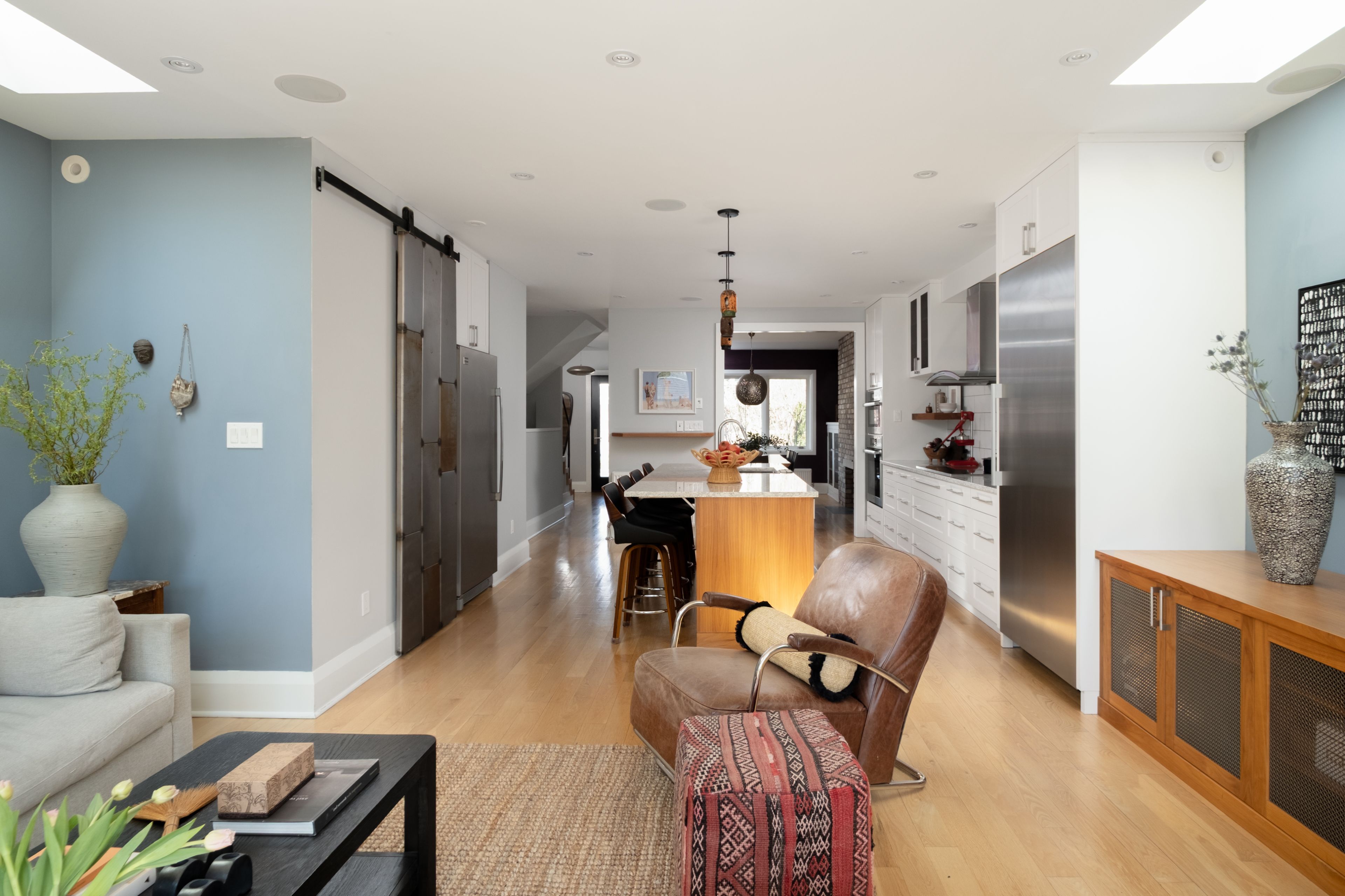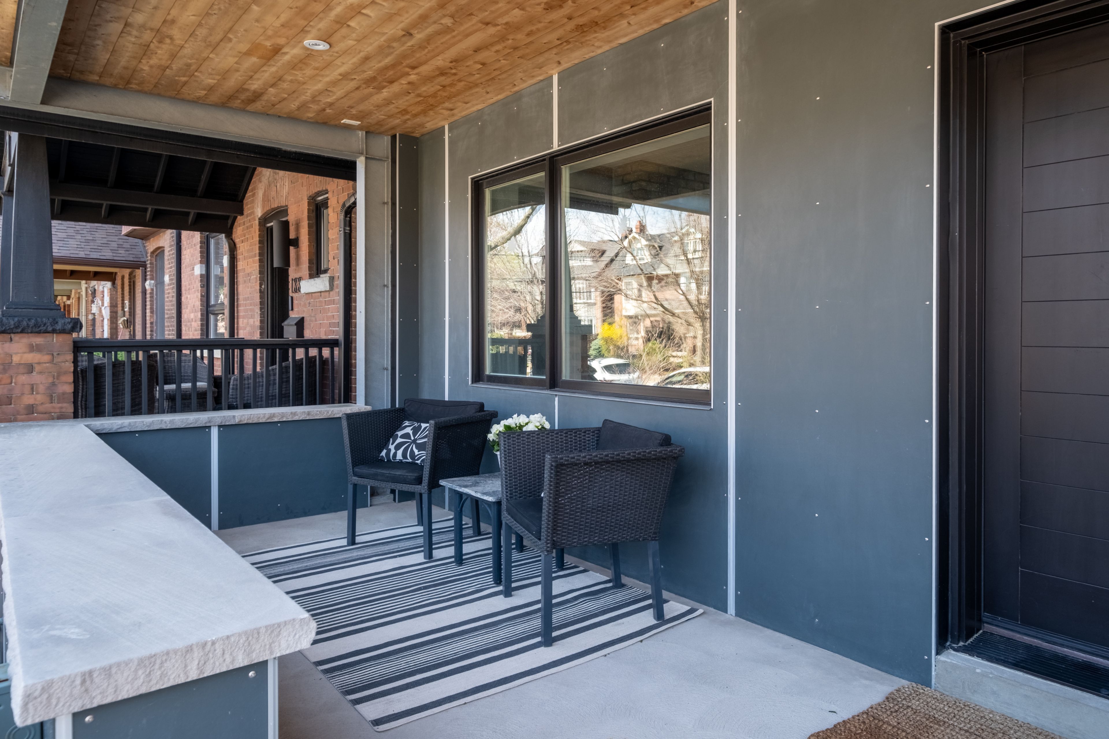 This three-storey family home on browning avenue, a beloved street in playter estates, was architecturally designed and completely renovated approximately 12 years ago, with thoughtful main and lower level additions that create a more spacious, functional, and comfortable flow for everyday living. With 3,548 square feet across all levels, the home feels generous, welcoming, and naturally suited to family life. The main floor unfolds as an open, connected environment, where living and dining areas flow naturally around a kitchen that anchors it all. It's a layout that feels easy and intuitive, equally suited to quiet mornings and evenings spent with family and friends. The kitchen is both functional and refined, featuring a large walk-in pantry, centre island, full-height refrigerator and freezer, and high-end miele appliances throughout. Oversized wood sliding doors bring in soft natural light and open to the backyard, creating a seamless connection between indoors and out. In the living room, custom built-in cabinetry with integrated surround sound adds warmth and comfort, creating a space that works as well for everyday living as it does for entertaining. With four bedrooms, this home is a rare offering in the neighbourhood. The primary suite includes a private deck, a generous ensuite, and two walk-in closets. Heated floors in select bathrooms add everyday comfort. The finished lower level offers flexibility with a 3-piece bathroom, potential fifth bedroom, and a dedicated storage room. Professionally landscaped backyard with mature plantings and a sense of privacy. Rare two-car parking includes an ev charger and a garage with access to a double-wide laneway. Laneway house potential. Located in the coveted jackman school district, steps to the danforth, riverdale, and withrow park, and the evolving restaurant scene along gerrard. Close to riverdale, leslieville, and corktown. Playter estates offers a rare balance: established, connected, and genuinely lived in.