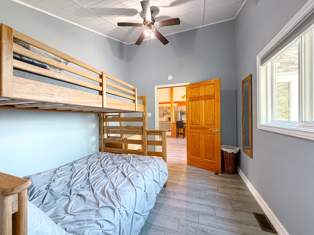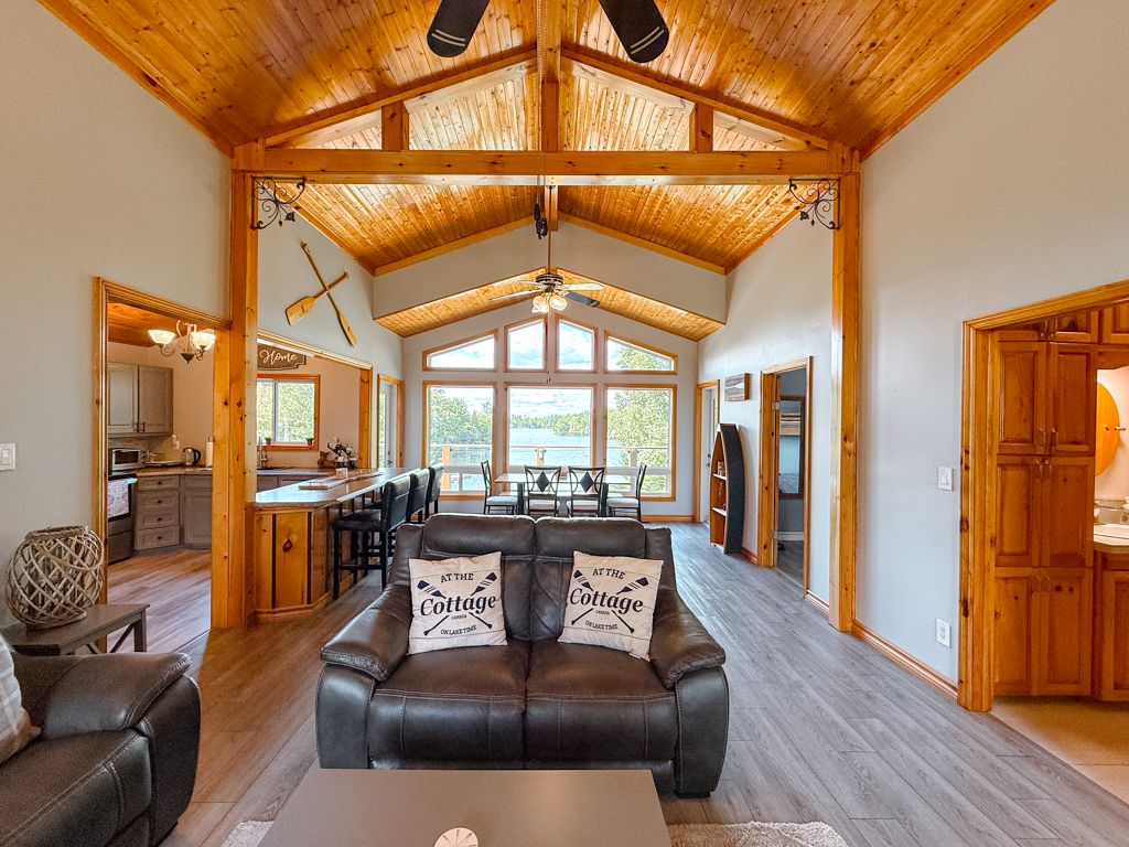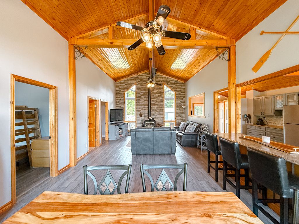 • Access to a sandy beach, dock, firepit, and guest accommodation Bunkie.