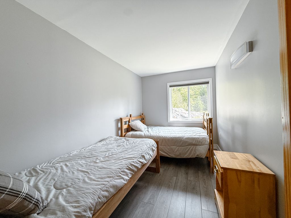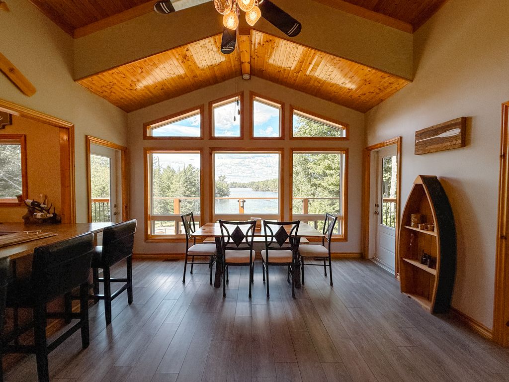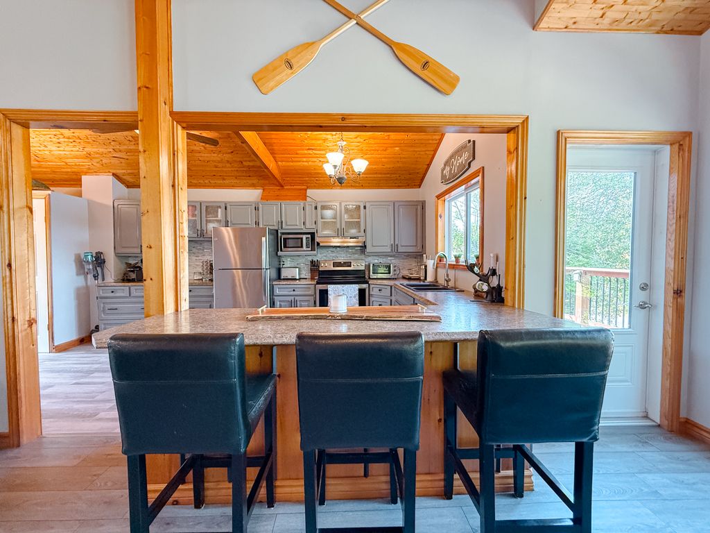 Turnkey lake manitouwabing four-season bungalow. Discover this recently renovated bungalow situated on 1. 1 acres with 238 feet of waterfront along a quiet bay on lake manitouwabing. Enjoy the beauty of nature right in your backyard or at the sandy beach, where the canadian shield has been thoughtfully incorporated into the landscaping and gardens. This spacious home offers three bedrooms plus a den and two 3-piece bathrooms. The open-concept great room/ dining room, and kitchen create a welcoming atmosphere, enhanced by beautiful views from the wraparound deck. Walkouts to both the front and back decks allow for easy indoor-outdoor living. The covered porch provides an ideal space for barbecuing or entertaining, even on rainy days. Inside, the house boasts vaulted ceilings, a galley kitchen with a breakfast bar, a wood-burning stove, and a forced-air propane furnace to keep you comfortable on cool or wintery nights. Outside, there is a large garage and workshop, as well as ample parking to accommodate family and guests. The sandy beach waterfront features a bunkie for additional guest accommodation, a firepit, and storage space for recreational equipment. There is also a dock for boating and swimming. The quiet bay, located just off burnett's bay, connects to kilometers of water for boating, exploring, tubing, waterskiing, or fishing on this scenic finger lake. Take a short boat ride or drive to tait's landing marina for family treats like ice cream. Golf enthusiasts can visit the ridge of manitou golf course during the spring, summer, and fall. In the winter, the area transforms into a playground for atv riding, snowmobiling, ice fishing, snowshoeing, and cross-country skiing. The property is conveniently located just twenty minutes from the mckellar market and parry sound, making shopping and amenities easily accessible.