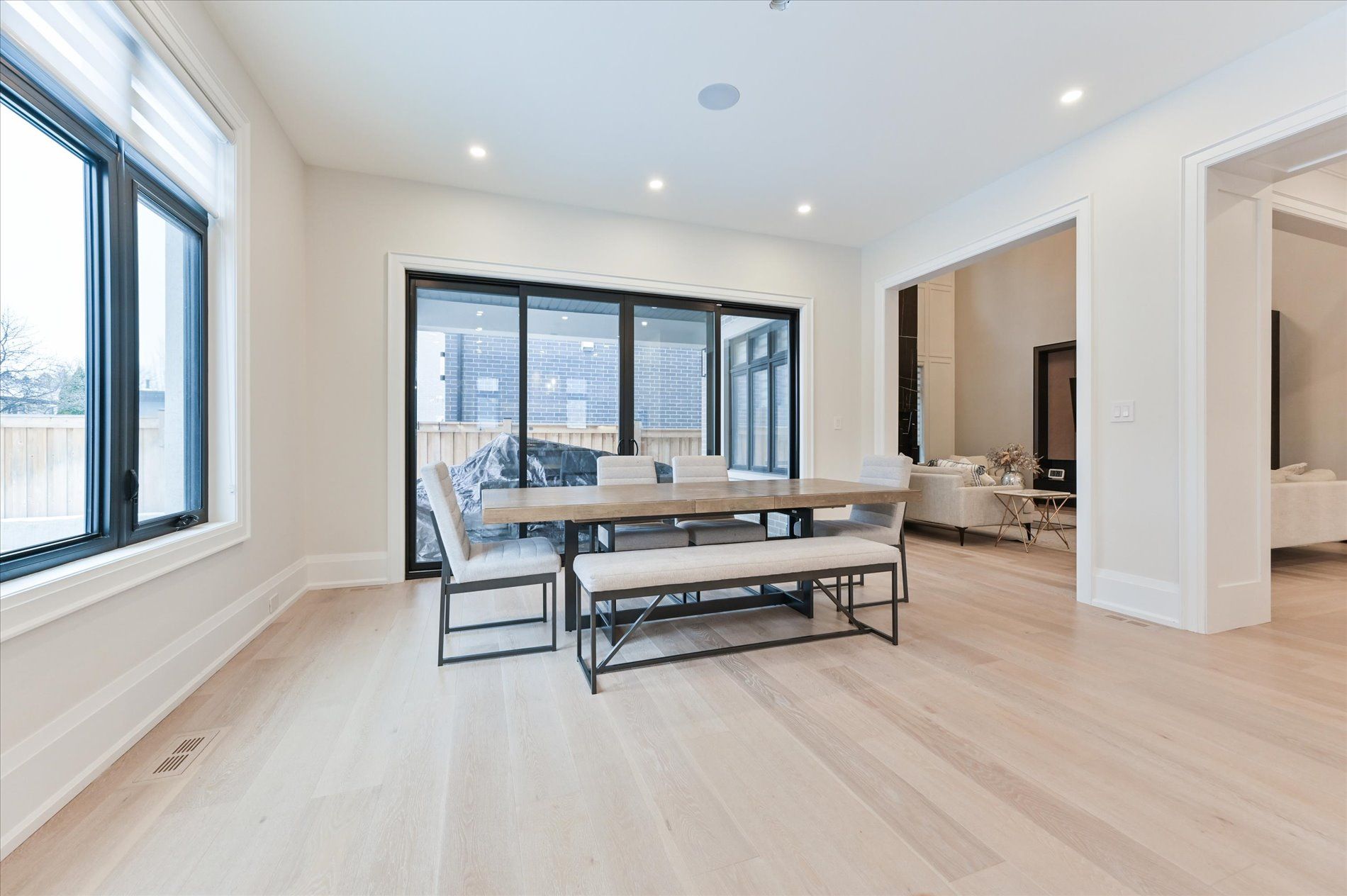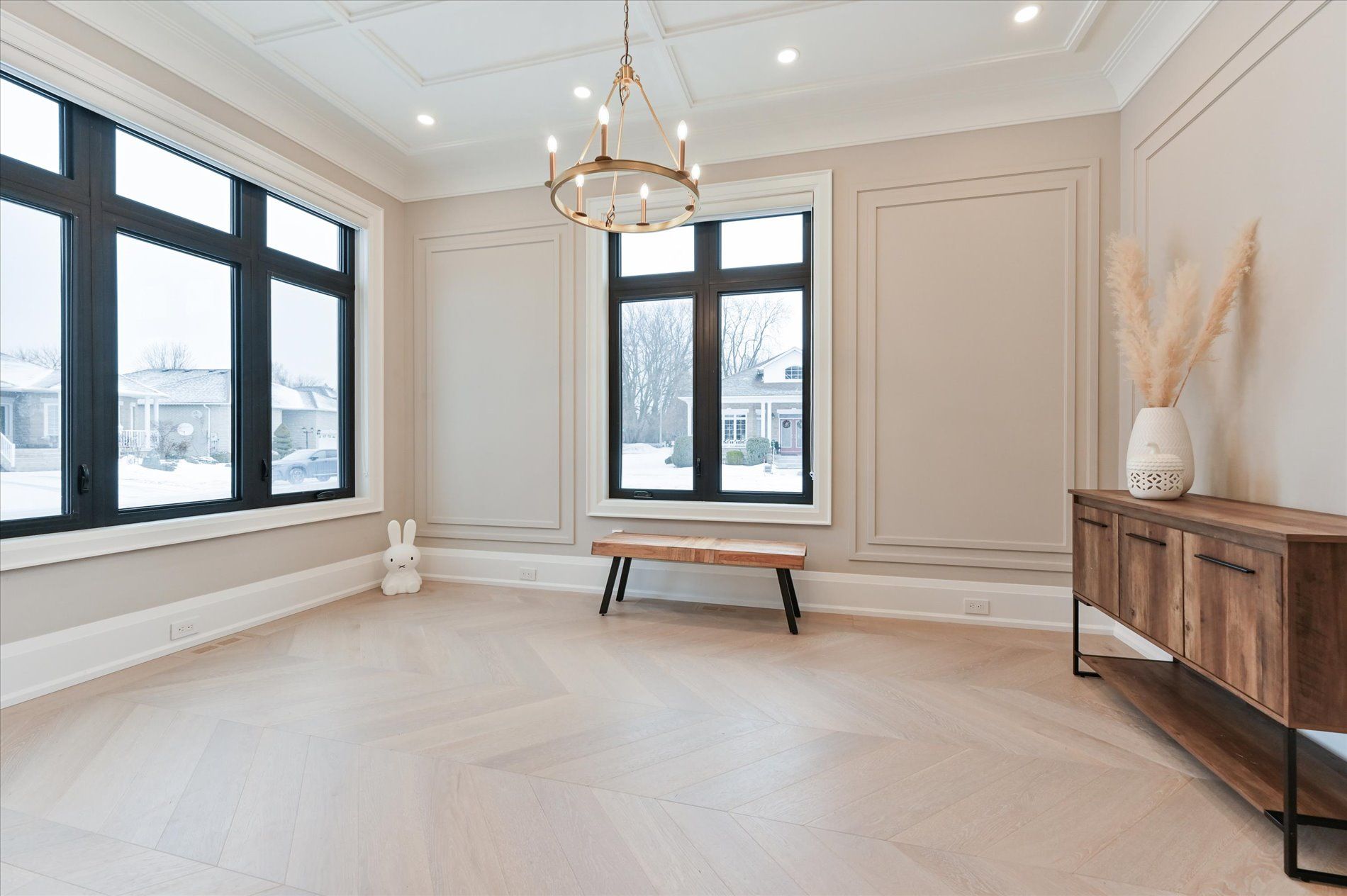 • Spacious main floor featuring elegant herringbone hardwood flooring.