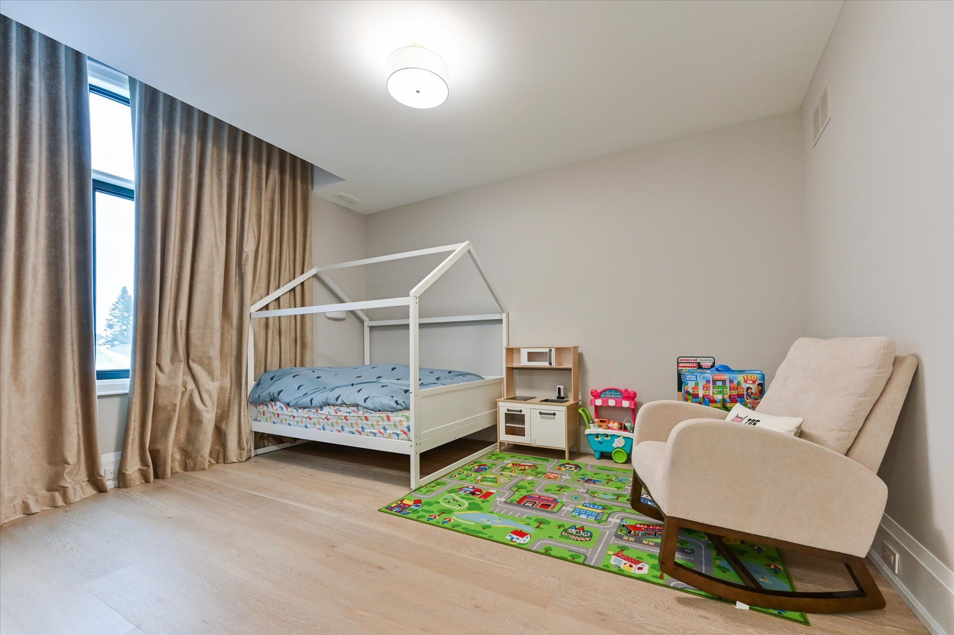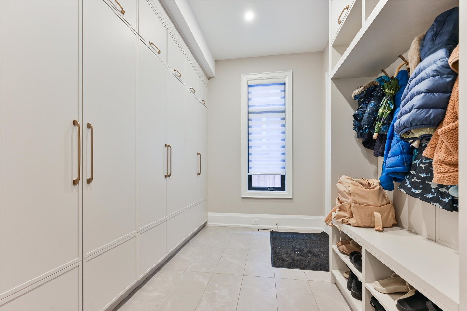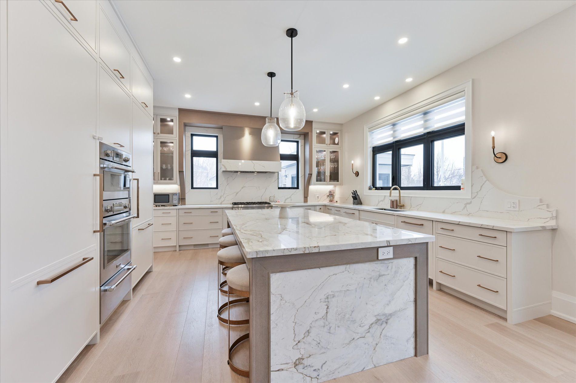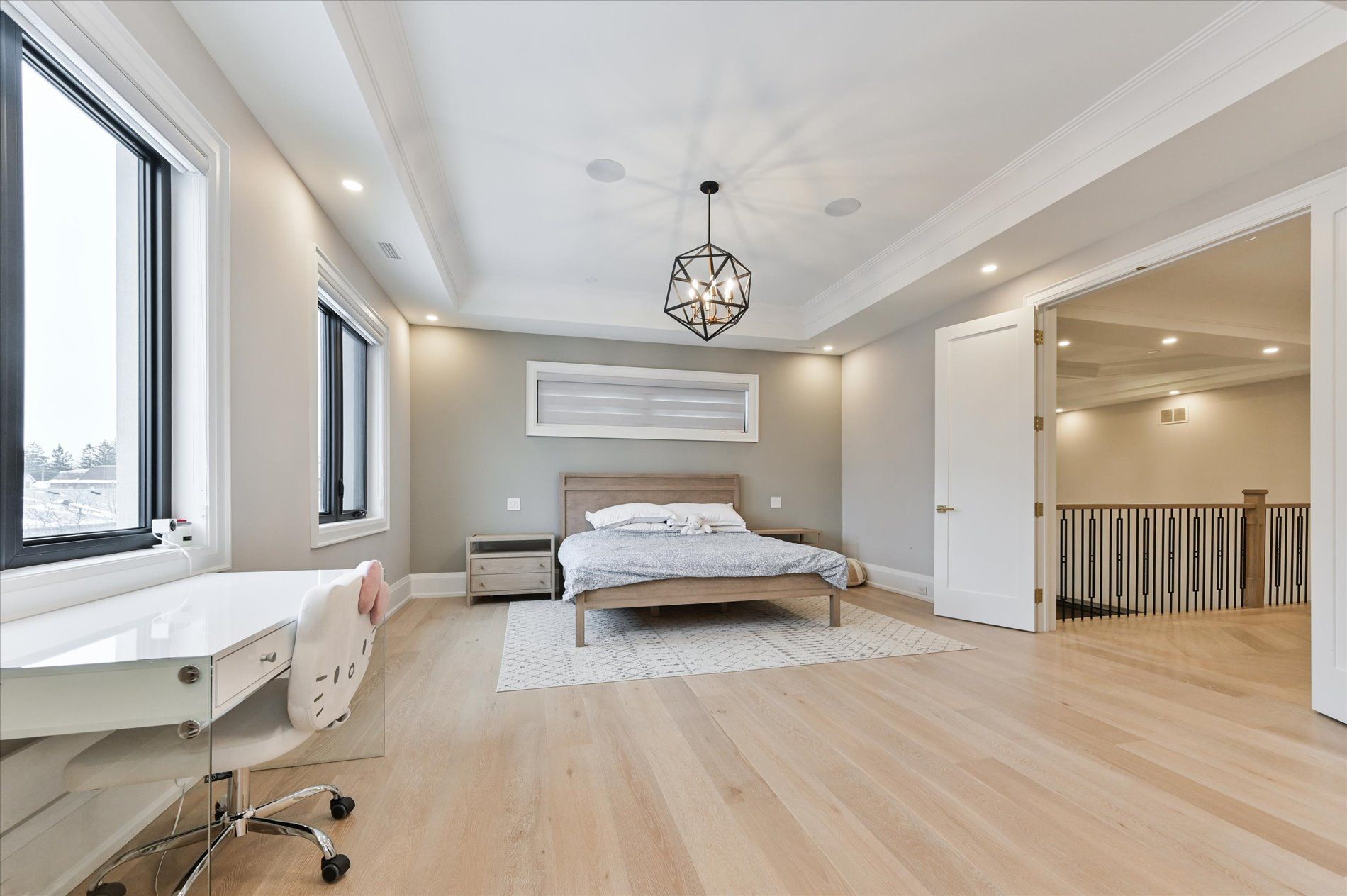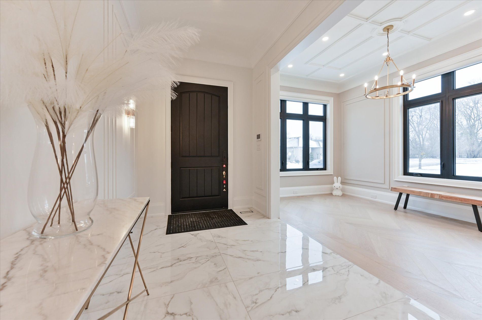 • Spacious main floor with elegant herringbone hardwood flooring.