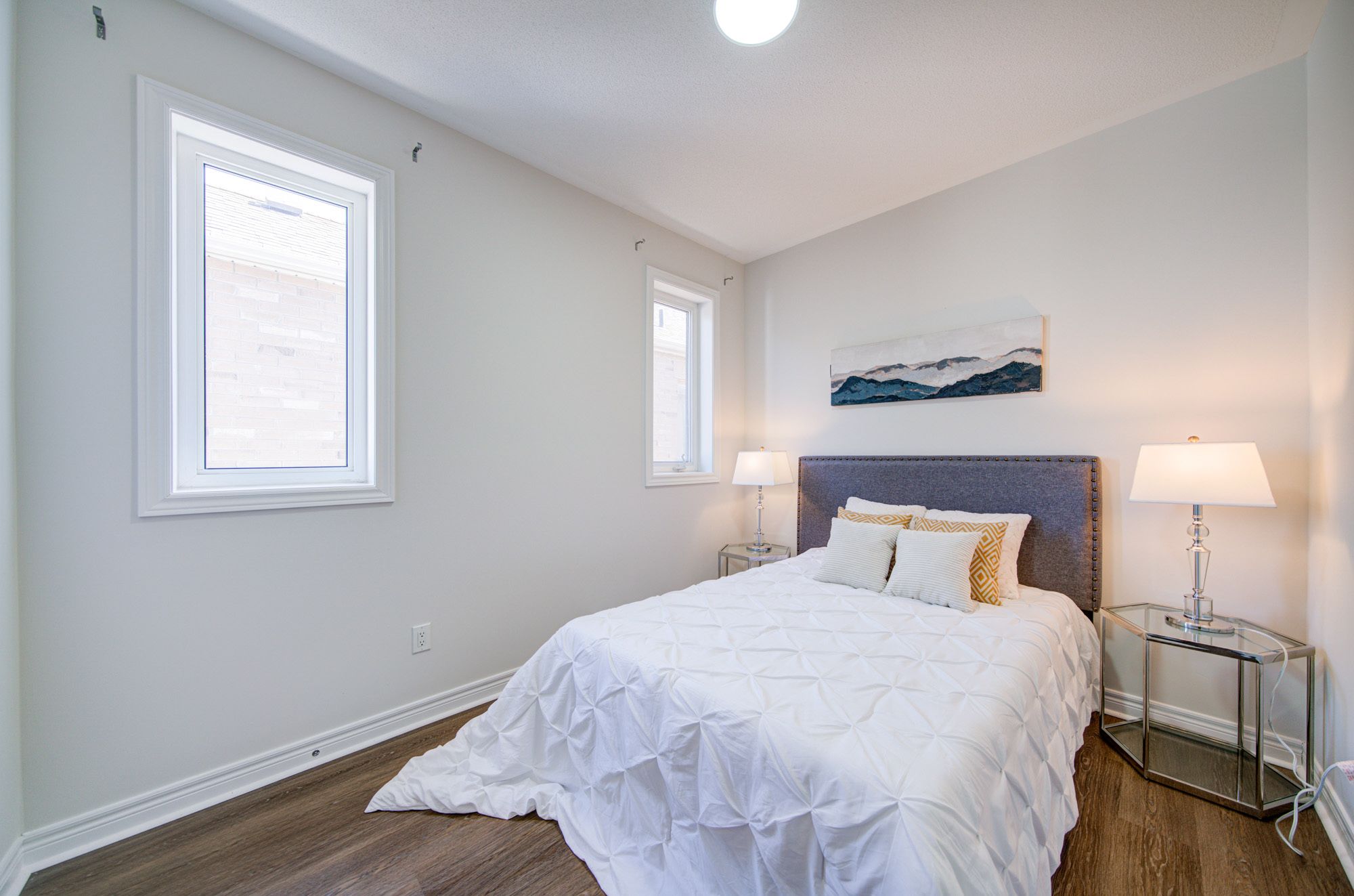 • Spacious layout with 9ft ceilings and hardwood flooring throughout.