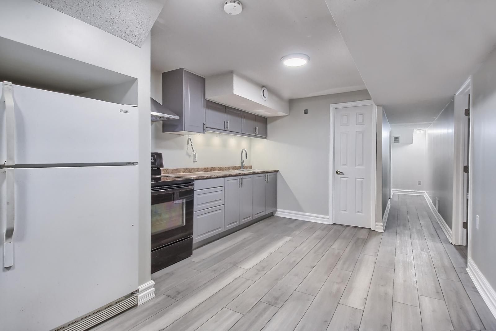 Spacious 2-bedroom basement apartment located in a quiet, family-friendly neighbourhood. This well-maintained unit offers a functional layout with generously sized bedrooms, a comfortable living area, and a modern kitchen with ample cabinet space. Enjoy a private entrance for added convenience and privacy. The unit includes en suite laundry and 2 tandem parking spots. Ideal for a small family, couple, or working professionals seeking a clean and comfortable place to call home. Conveniently located close to schools, parks, public transit, promenade mall shopping, and major highways, making commuting easy and efficient. Utilities are 1/3 utilities. Currently tenanted, unit is available april 1, 2026. No smoking and no pets.
