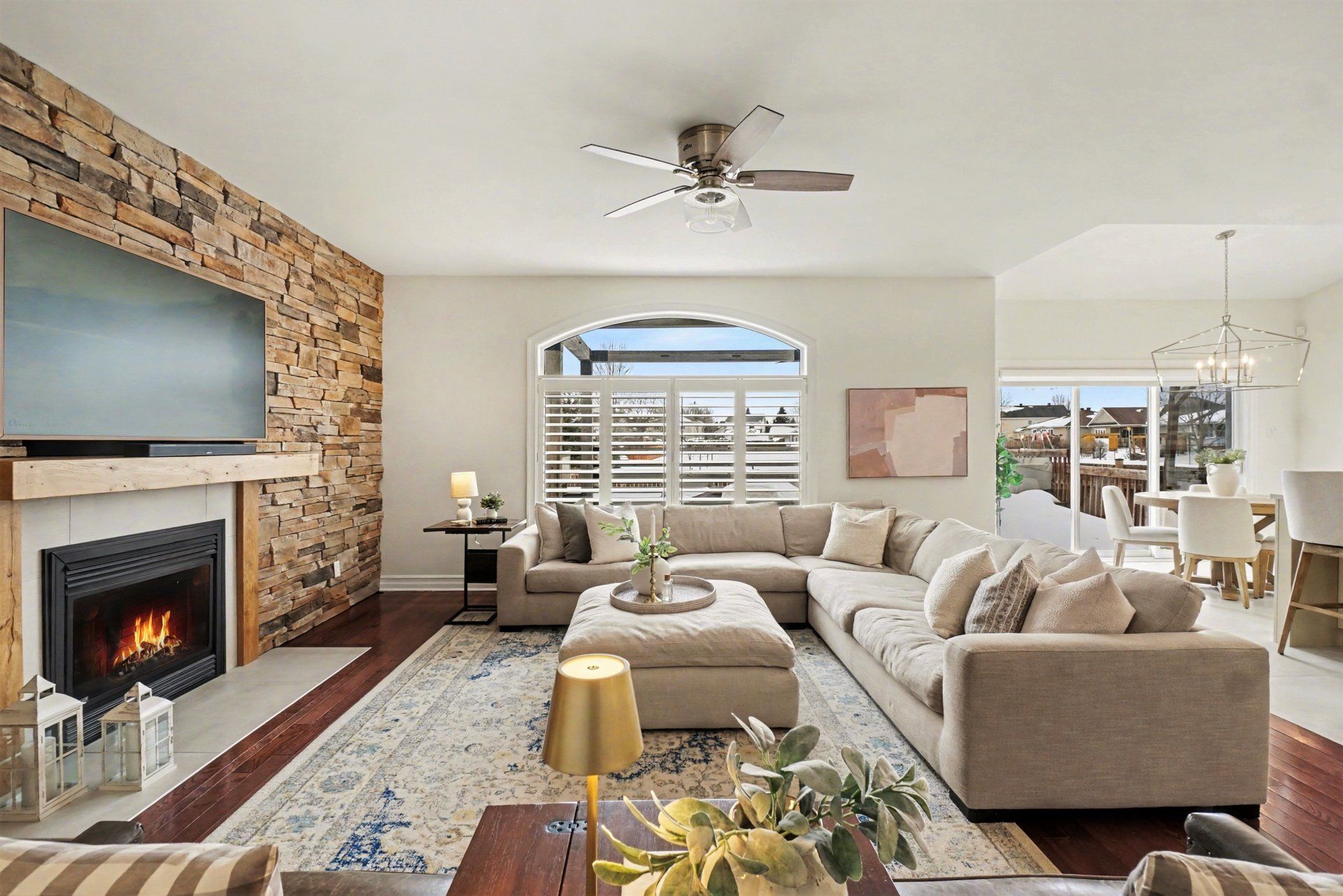 With its all-stone front exterior, this home has a timeless, upscale feel that immediately catches your eye. The entire main floor has been professionally redone. The kitchen was designed by olive and oak and feels like it is straight out of a magazine. Each choice intentional, every detail special. The kind of space where you'll happily host holidays or dreamily spread out with coffee on a quiet morning. The living area is anchored by a stunning fireplace that makes the whole space feel warm and inviting and the gorgeous powder room and thoughtfully designed mudroom with fabulous storage options and designer finishes are a 10/10. Upstairs you'll find four spacious bedrooms, including a generous primary suite with a very large ensuite. The basement is exactly what you want it to be: cozy, flexible and fun. There's plenty of space for the kids to play, a great setup for watching the game and even a special nook that's just made for celebrating with friends. Plus, there's a bathroom rough-in already there, making future plans simple. The backyard with its above ground saltwater pool and deck surround, is made for hosting, relaxing and letting the kids burn off energy, but the real magic? Sitting on your deck at the end of the day while the kids play hide and seek in the park with the neighbours. Tucked into a well-established, family-friendly neighbourhood this home backs directly onto a park - meaning your backyard extends into green space. Scenic forest trails are close by and many everyday amenities are within walking distance. Embrun continues to grow and thrive, blending small-town charm with modern convenience. With excellent schools, great local amenities, recreation options and a brand-new arena and recreation complex opening this fall, it's easy to see why so many families are choosing to call it home. Add in an easy commute to the city and you truly get the best of both worlds. You will love life on lachaine.
