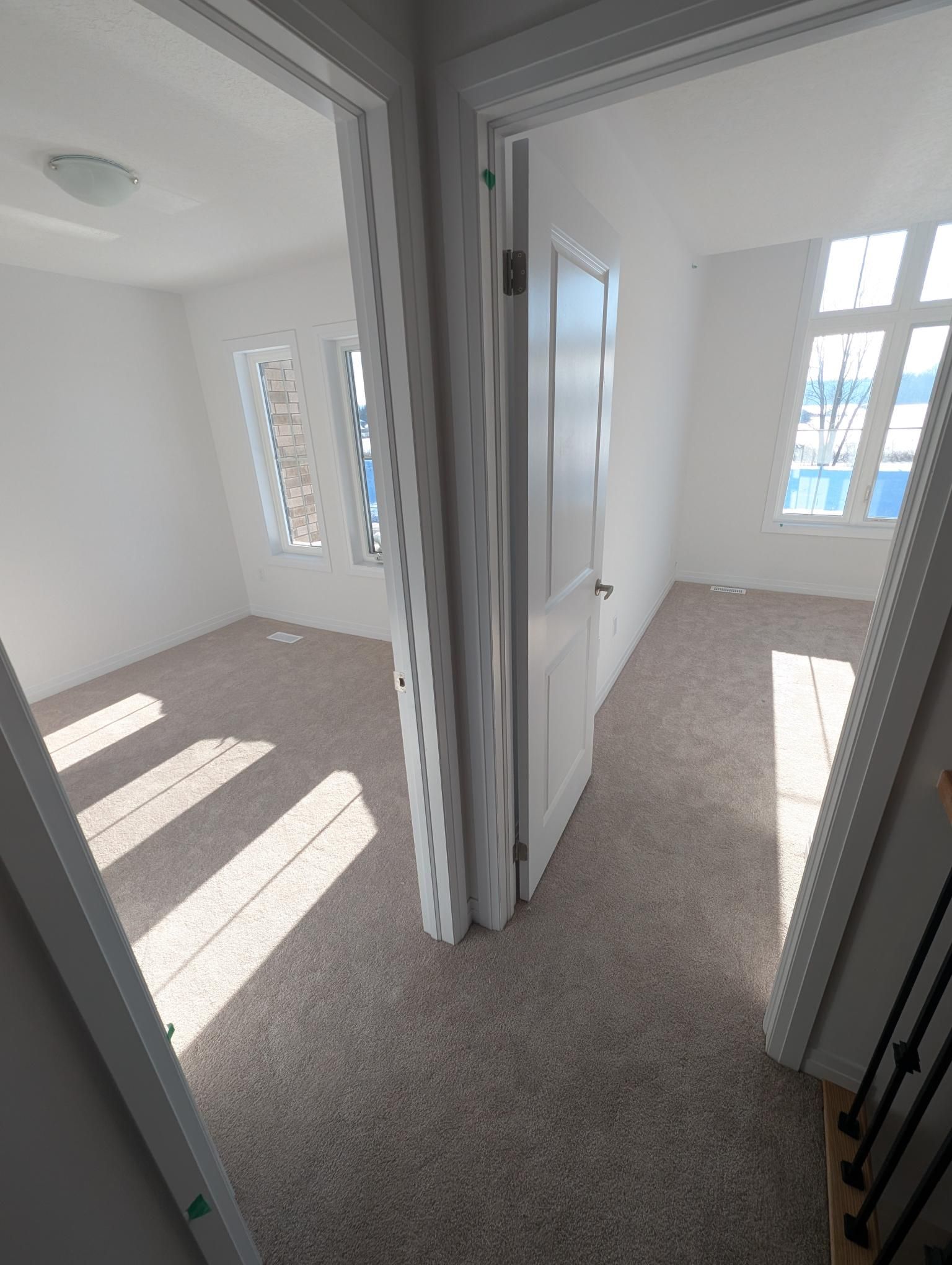 Welcome to avon park by cachet homes. This brand new 3-bedroom, 3-bathroom townhome combines modern design with a functional layout, to give a contemporary living. The main level offers a well lit open-concept living, dining, and kitchen, perfect for everyday living and entertaining, as well as a convenient 2-piece bathroom. A modern victorian style exterior with steep roof pitches & lily inspired elevation b features boasting bright sun filled rooms and countless interior upgrades including natural hardwood flooring and soaring 9ft smooth ceilings on the main level. Entertain guests in style in the spacious living area, or gather around the stunning kitchen including quartz countertops, back splash and extended height upper cabinets for ample storage. Upstairs, the spacious primary suite includes a 4-piece ensuite and an impressively large oversized walk-in closet. Two additional bedrooms, a full bathroom, and second-floor laundry with generous storage complete this level. Located in stratford's east end. This property is located in avon park, and it is close to shopping, restaurants, and everyday amenities, with quick highway access to the kw region. Ideal for families and working professionals alike, this home features two parking spots (garage + driveway) and comes fully equipped with appliances and a garage door opener. Move-in ready and available immediately.