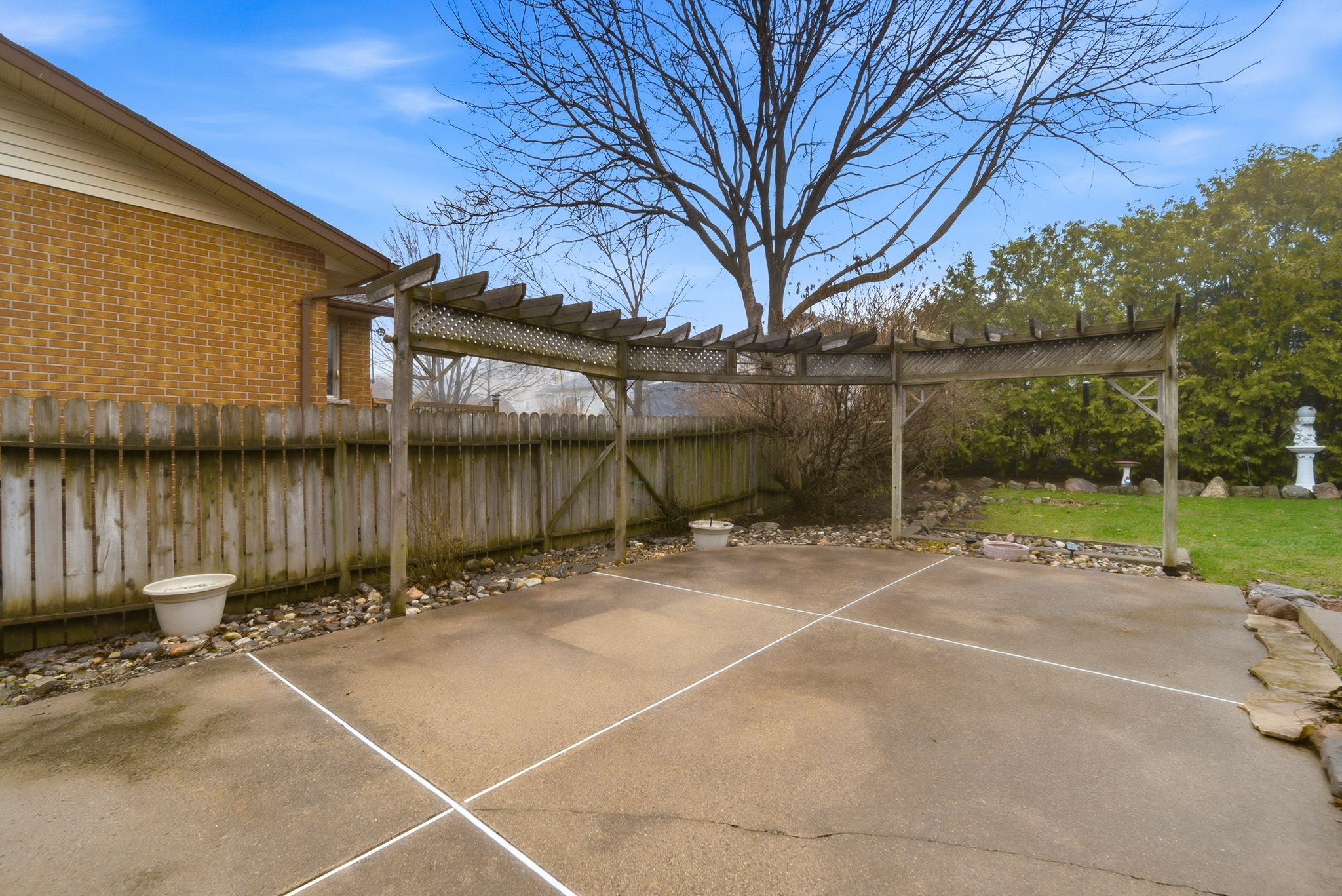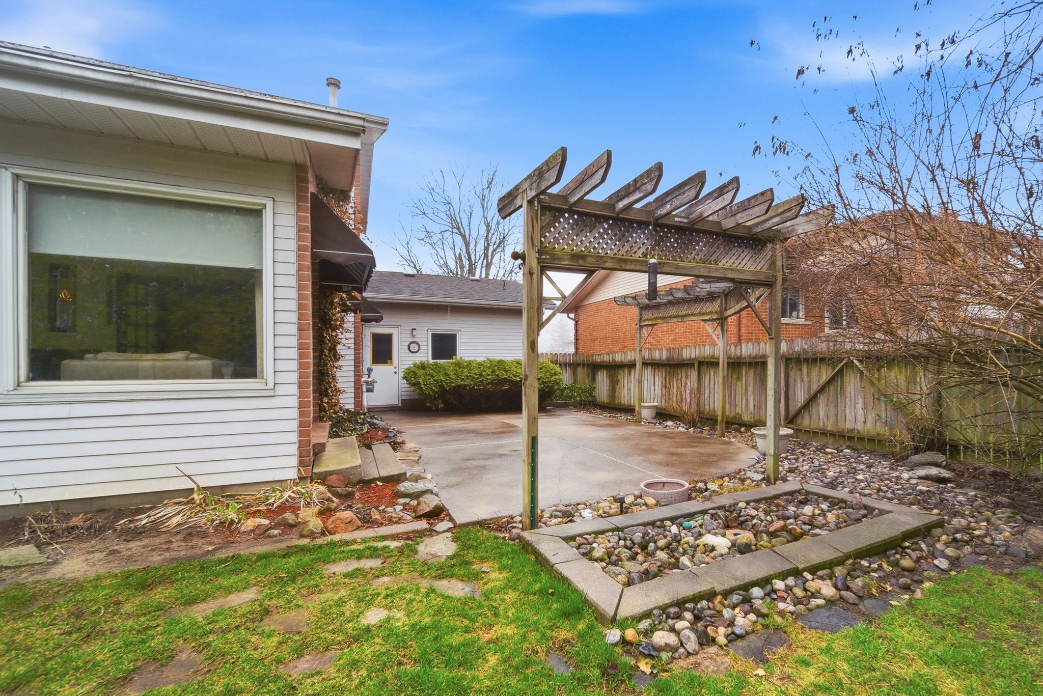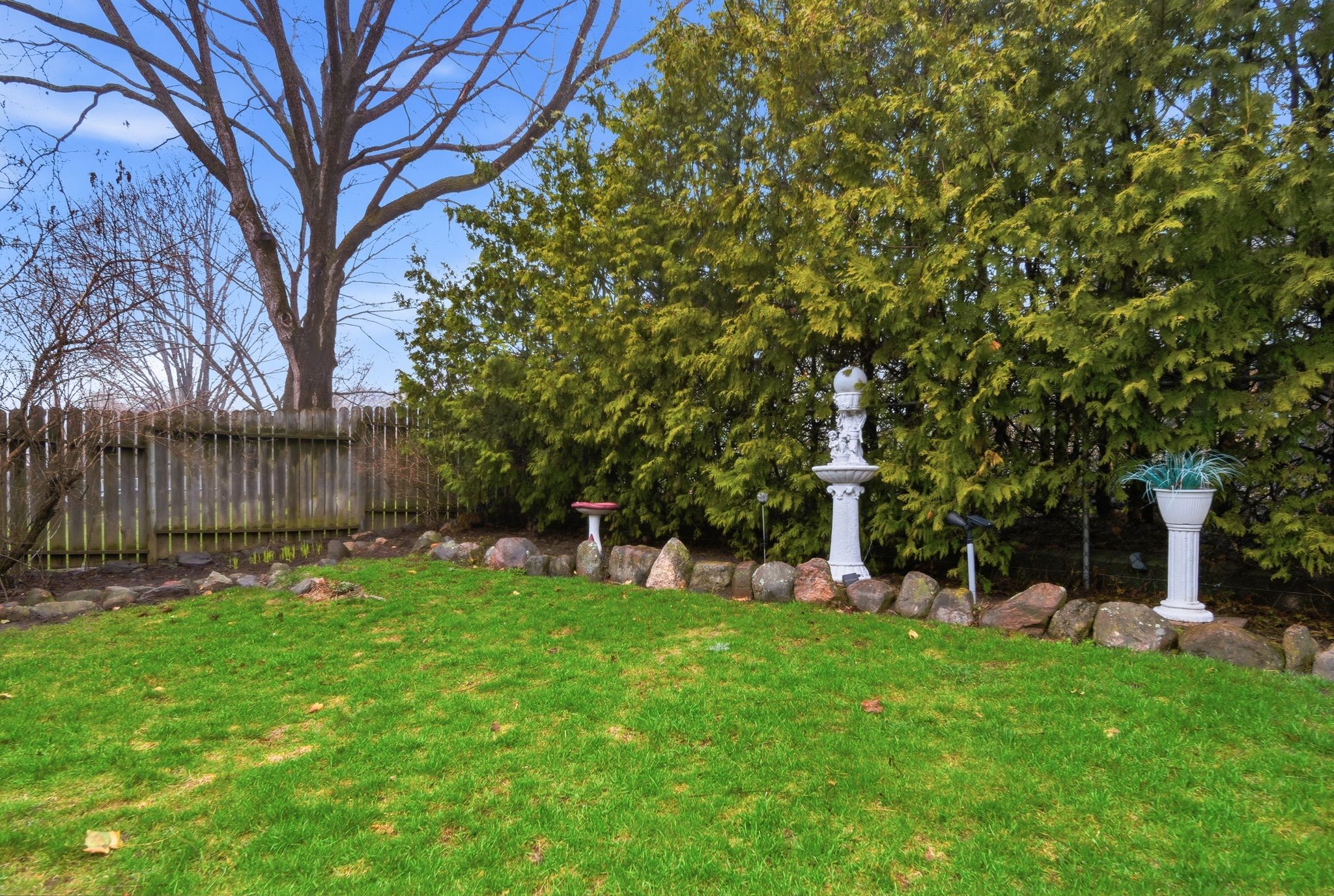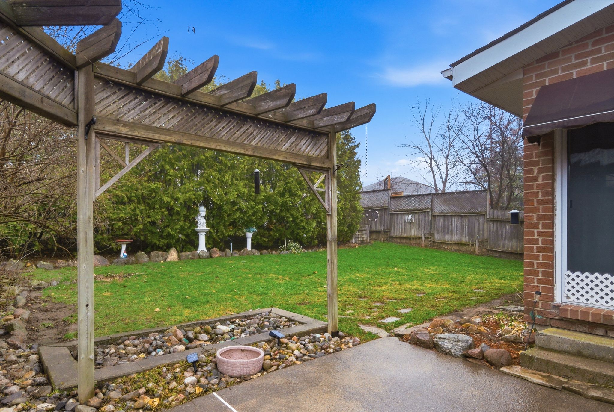 • Fully fenced, private backyard with mature gardens and large concrete patio.