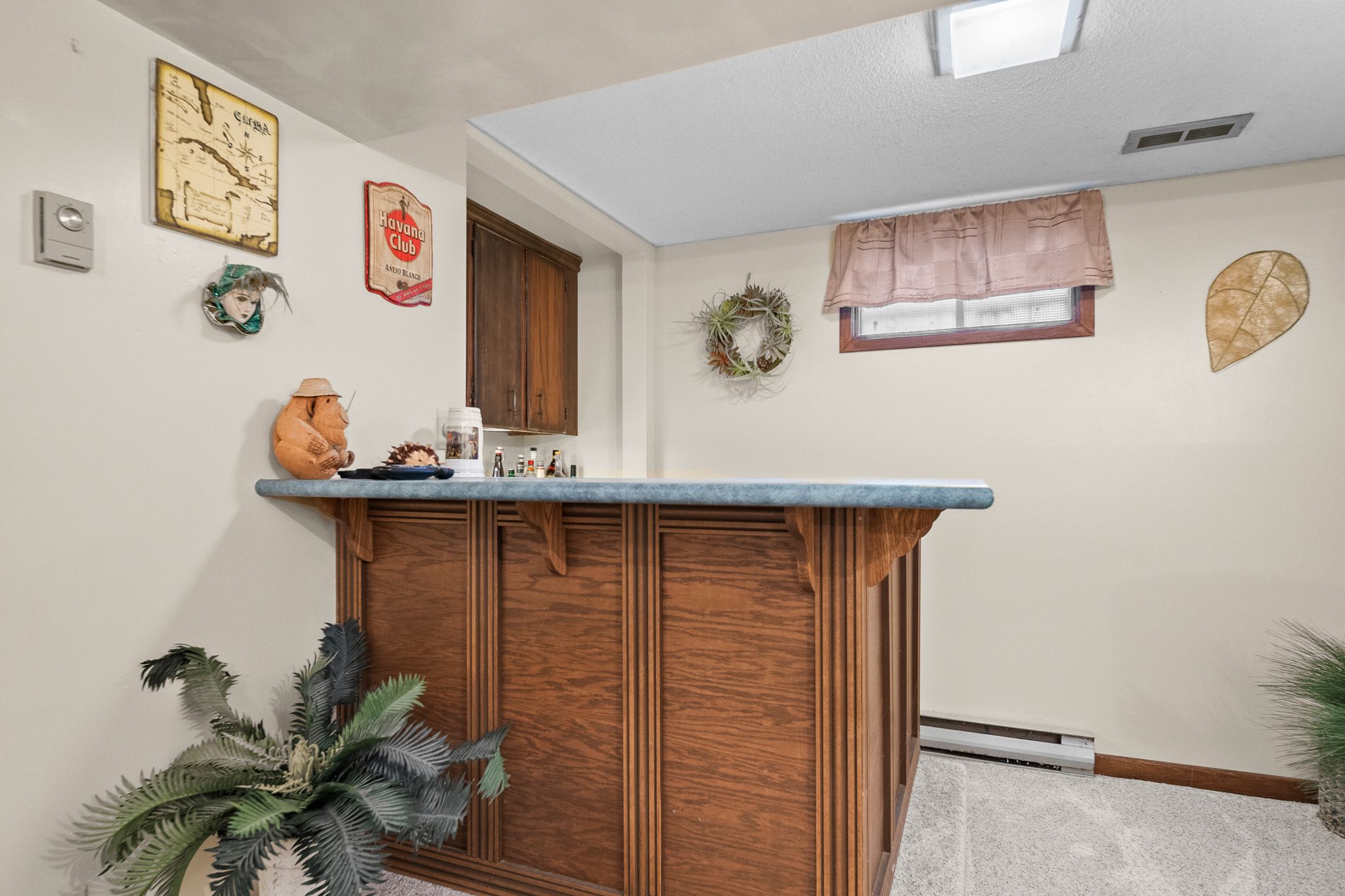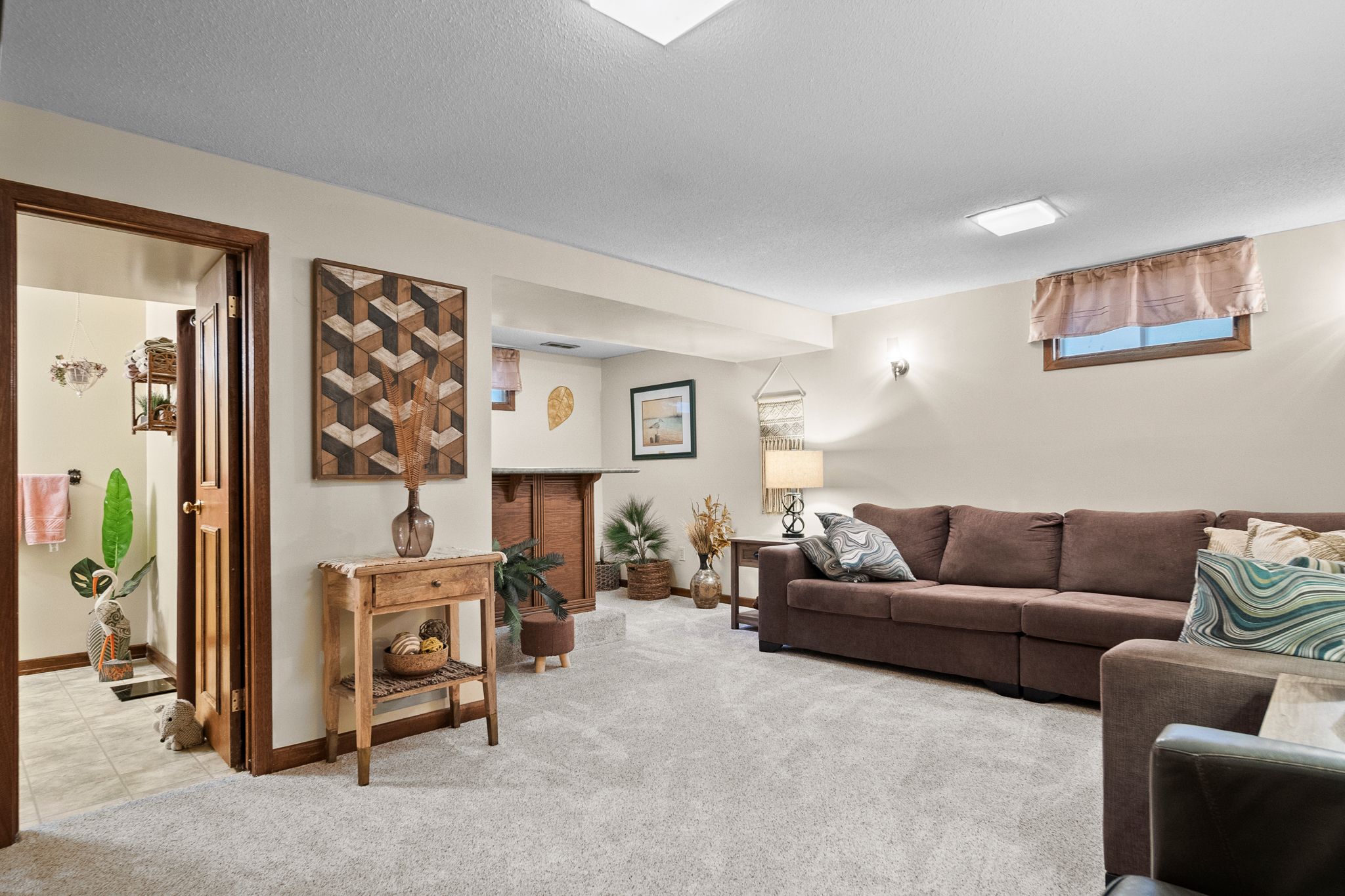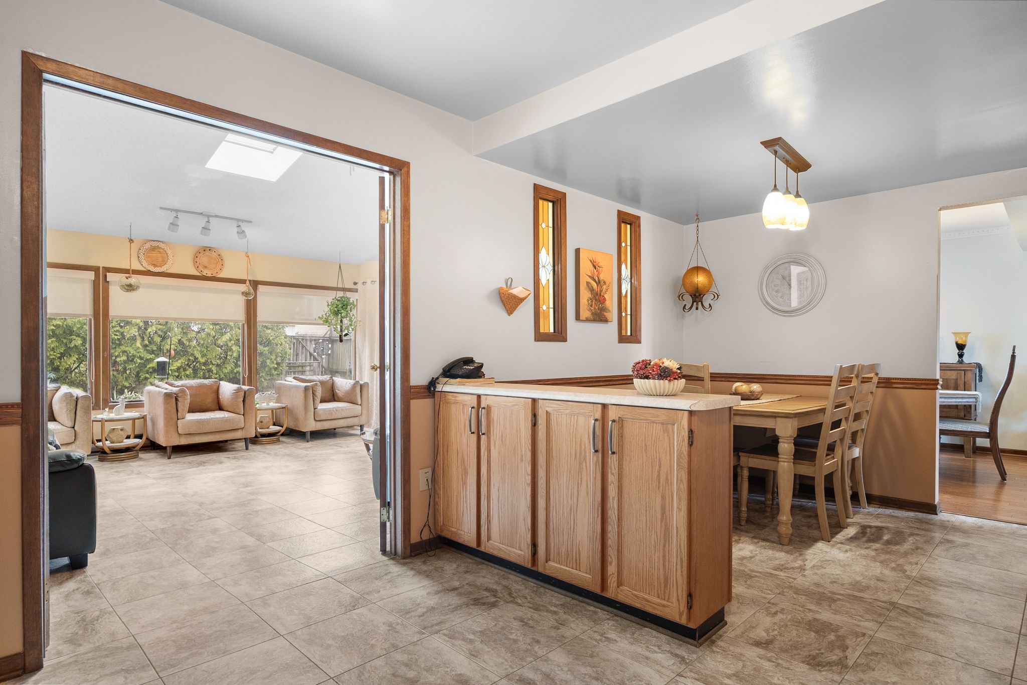 • Sunroom/family room addition with cozy gas fireplace and backyard views.