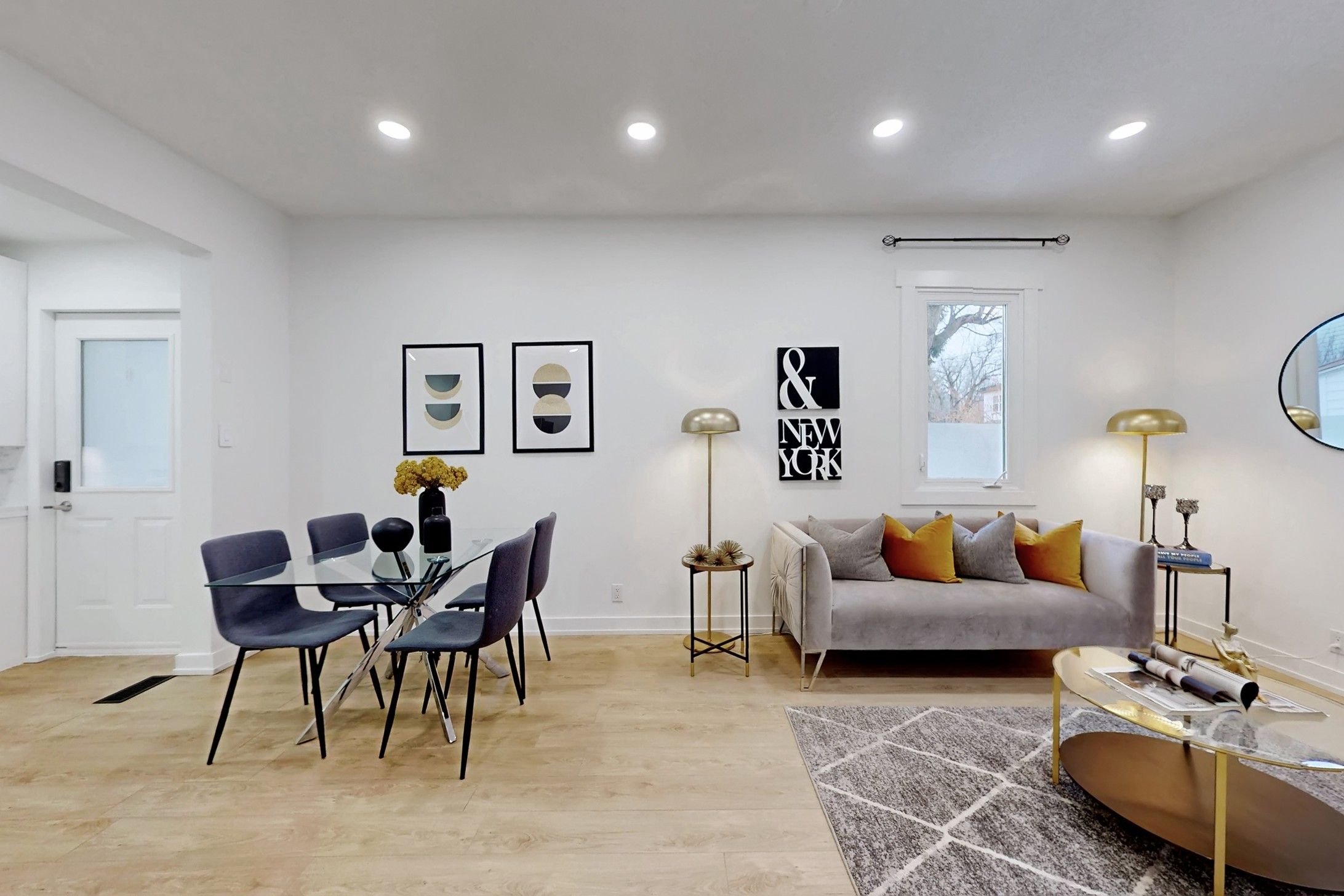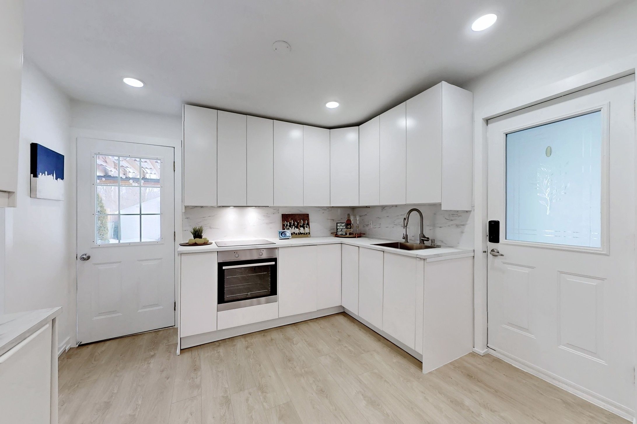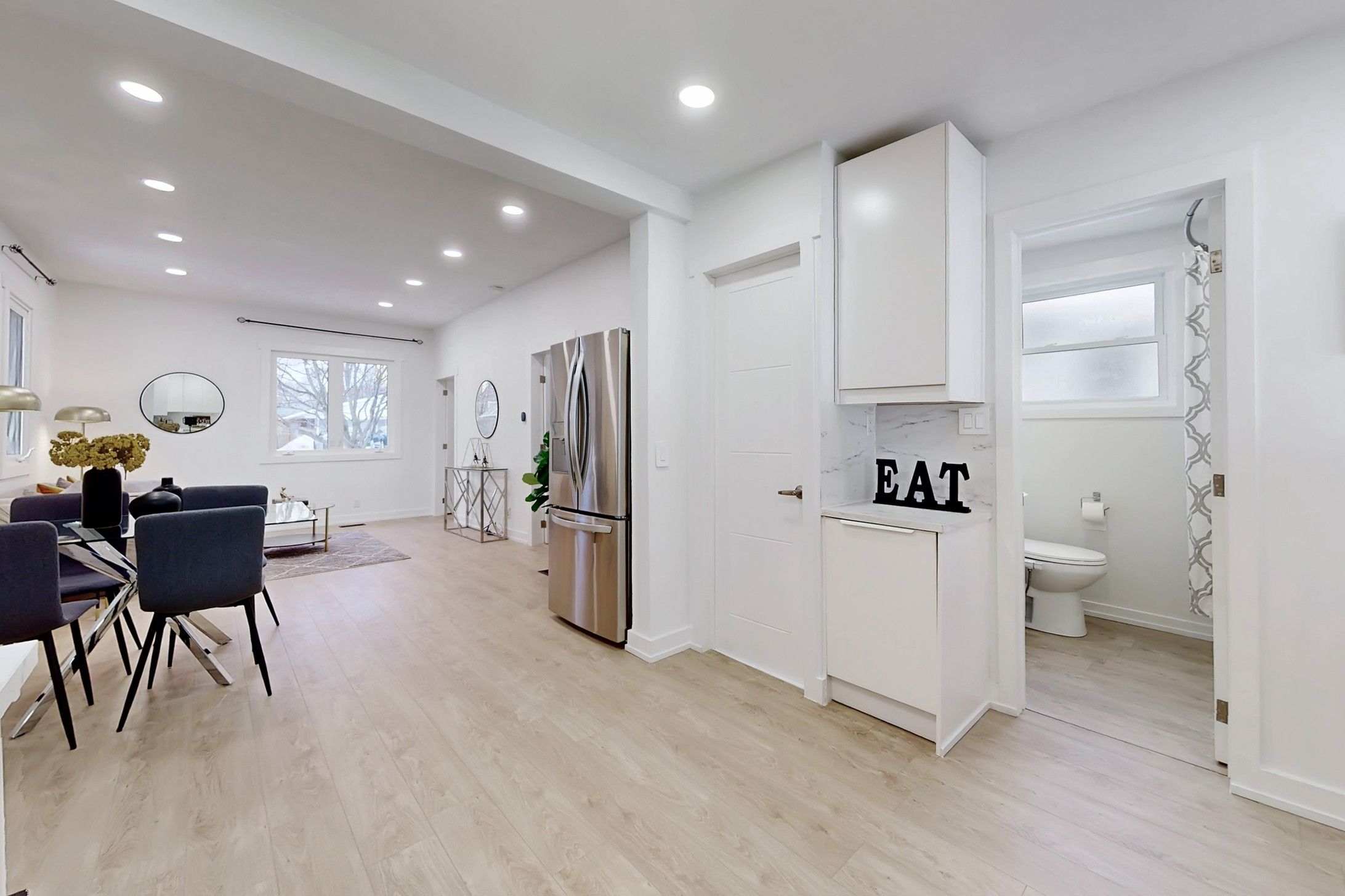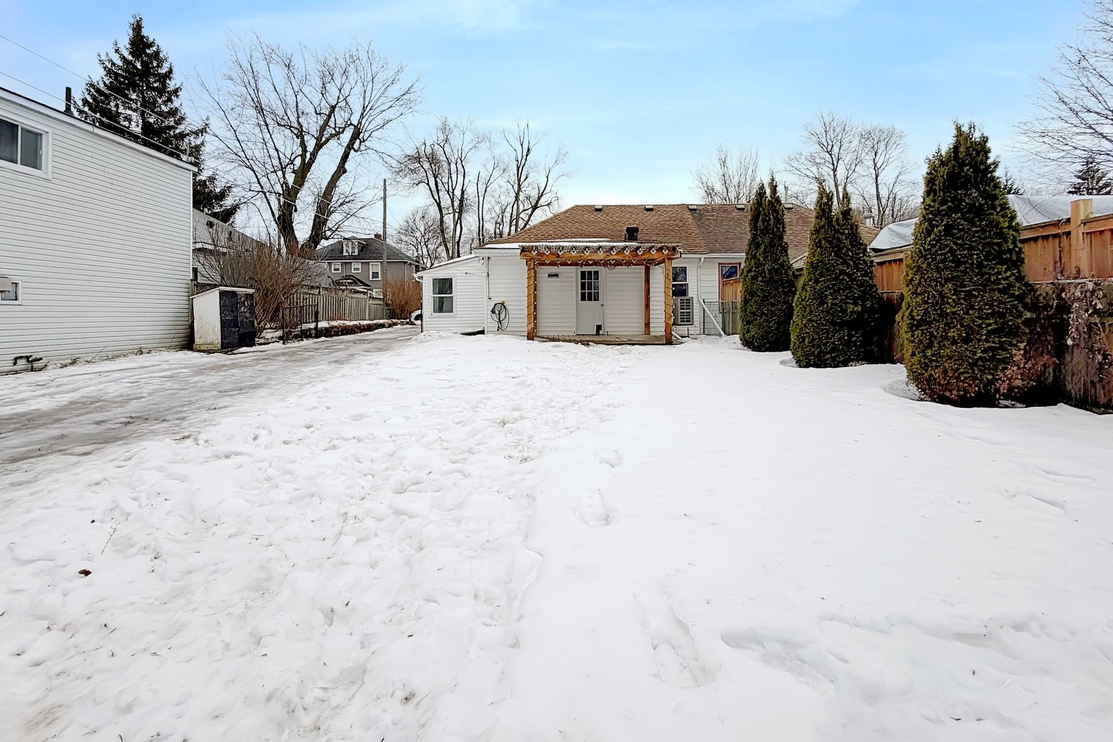 This one is a show stopper and offers a complete package! Fully renovated, intelligently designed smart home backing onto ravine and located on a family friendly cul-de-sac. Ravine views, recently fully drywalled extra large detached garage and a beautiful newer deck with a built-in pergola as well as potential for an adu, complement this cozy 2-bedroom bungalow with partially finished basement. Welcoming foyer to enter and drop your layers leads to the open concept living/dining room combo and newer eat-in kitchen. Semi-finished basement includes the laundry, workshop and man cave and has a walk-up to the outside. Recent updates include brand new floors throughout and freshly painted(2026), renovated bathroom with new flooring and vanity(2026), recently updated kitchen (2023) including appliances, pot lights throughout(2020), newer roof, deck with new pergola(2020), gas furnace(2019) with dual capability for forced air or heat pump(2023), owned water heater(2024), water softener, ro and whole home water filter(2020), electrical updated to 100 amps breakers and home is ev charging ready, walking distance to schools, go train, downtown shopping and more. No through traffic makes for a family friendly living. Fenced yard is great for kids, pets and privacy. *please check the 360 degree 3d virtual walkthrough by clicking on virtual tour and full list of unique intelligently designed smart home features is the attachment.*