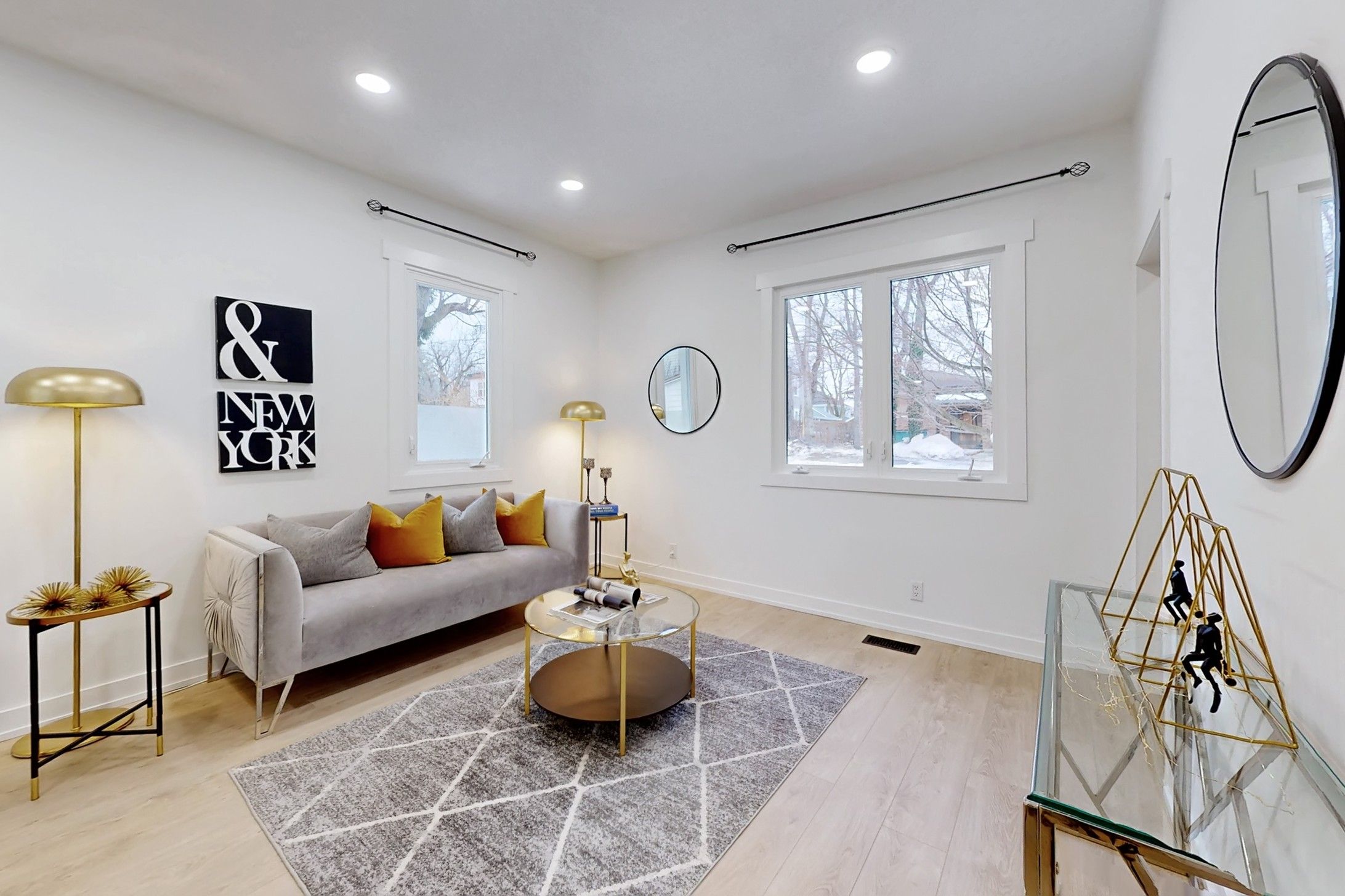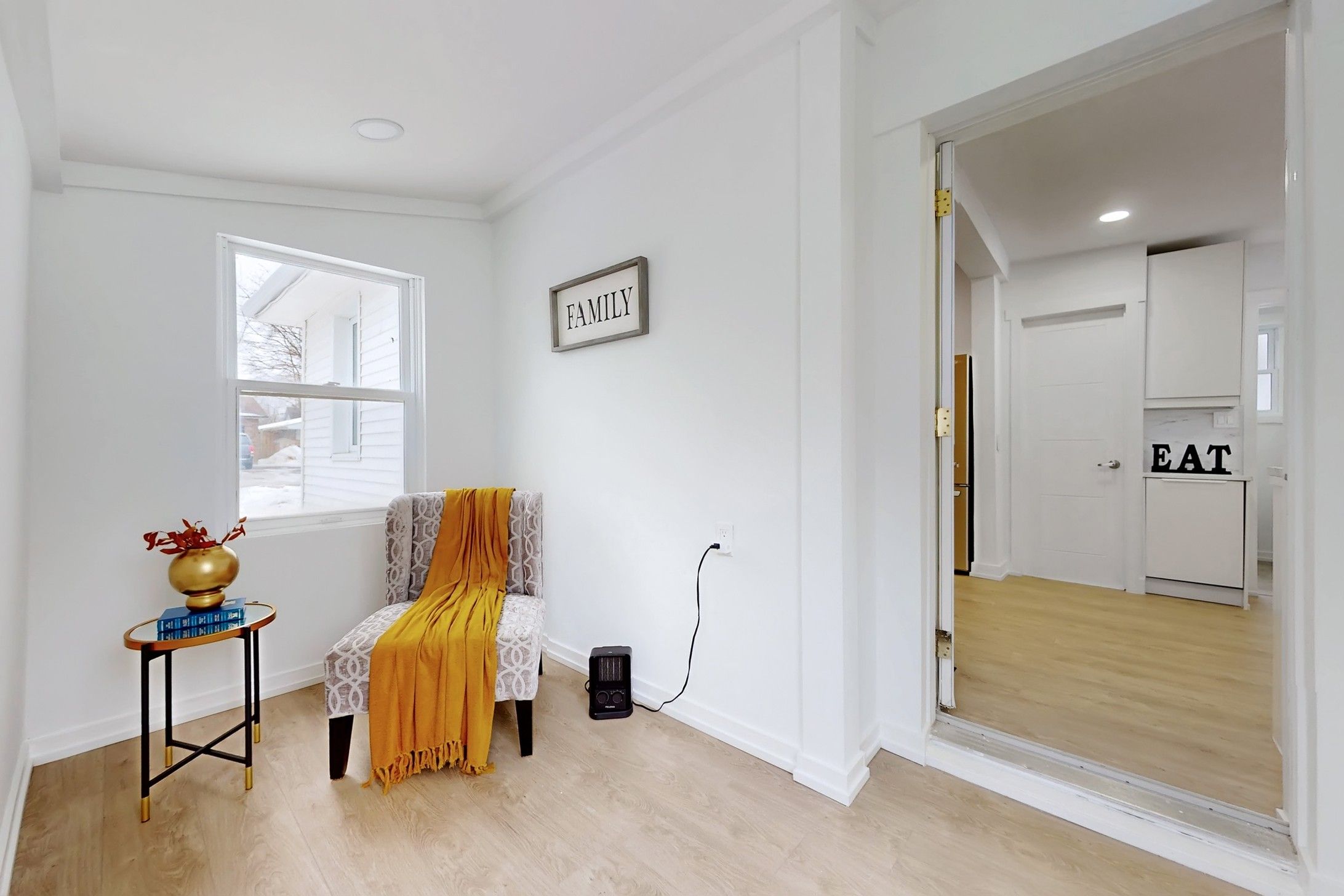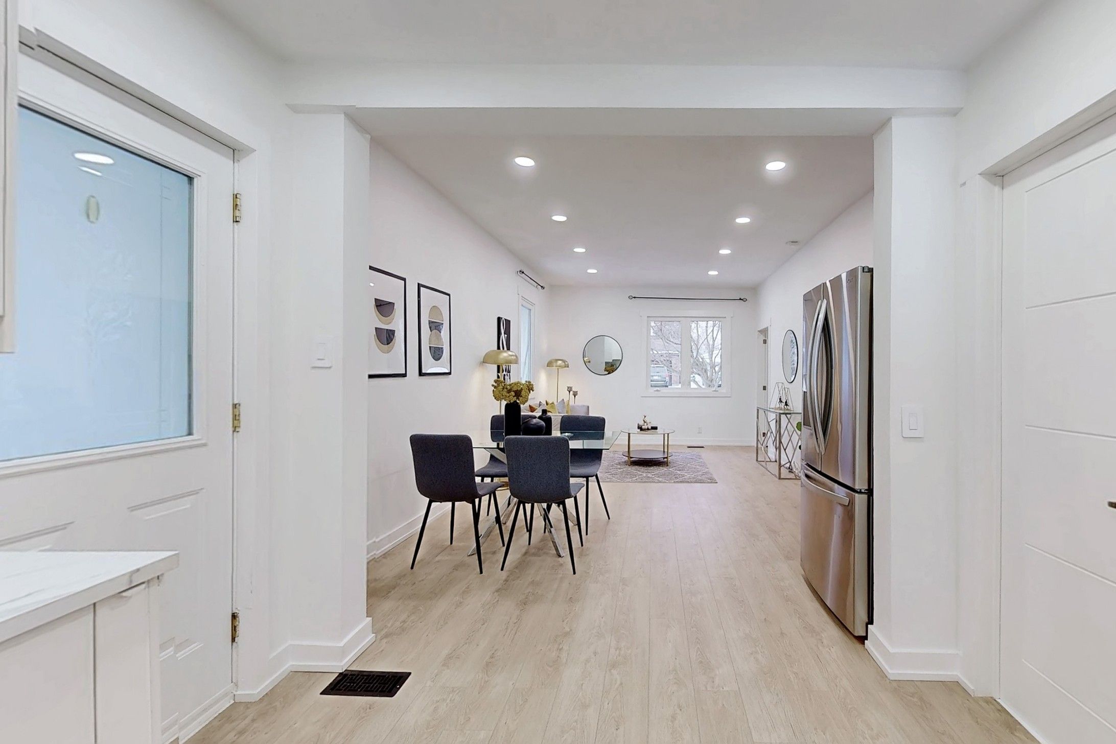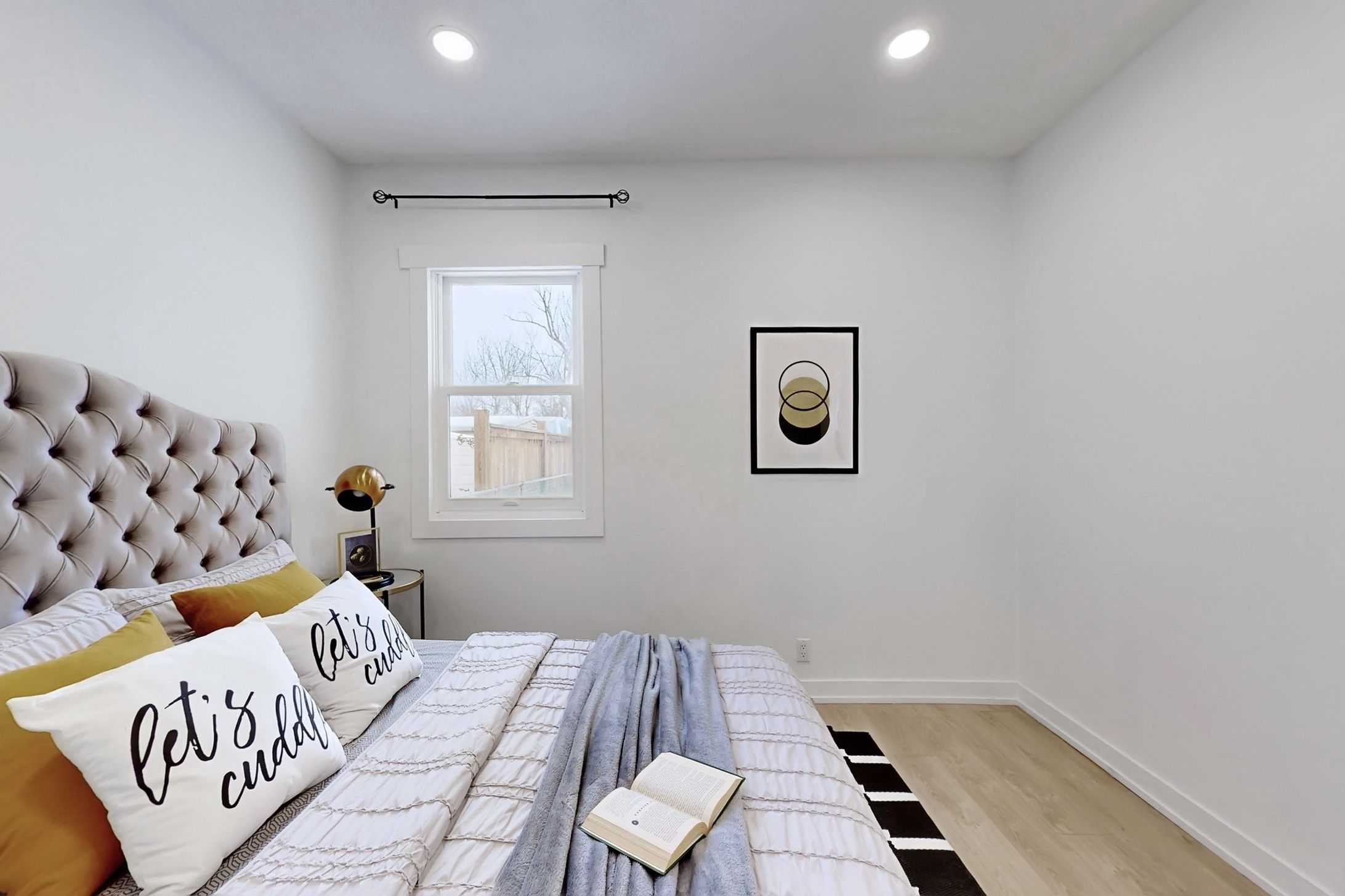 This one is a show stopper and offers a complete package! Fully renovated, intelligently designed smart home backing onto ravine and located on a family friendly cul-de-sac. Ravine views, recently fully drywalled extra large detached garage and a beautiful newer deck with a built-in pergola as well as potential for an adu, complement this cozy 2-bedroom bungalow with partially finished basement. Welcoming foyer to enter and drop your layers leads to the open concept living/dining room combo and newer eat-in kitchen. Semi-finished basement includes the laundry, workshop and man cave and has a walk-up to the outside. Recent updates include brand new floors throughout and freshly painted(2026), renovated bathroom with new flooring and vanity(2026), recently updated kitchen (2023) including appliances, pot lights throughout(2020), newer roof, deck with new pergola(2020), gas furnace(2019) with dual capability for forced air or heat pump(2023), owned water heater(2024), water softener, ro and whole home water filter(2020), electrical updated to 100 amps breakers and home is ev charging ready, walking distance to schools, go train, downtown shopping and more. No through traffic makes for a family friendly living. Fenced yard is great for kids, pets and privacy. *please check the 360 degree 3d virtual walkthrough by clicking on virtual tour and full list of unique intelligently designed smart home features is the attachment.*