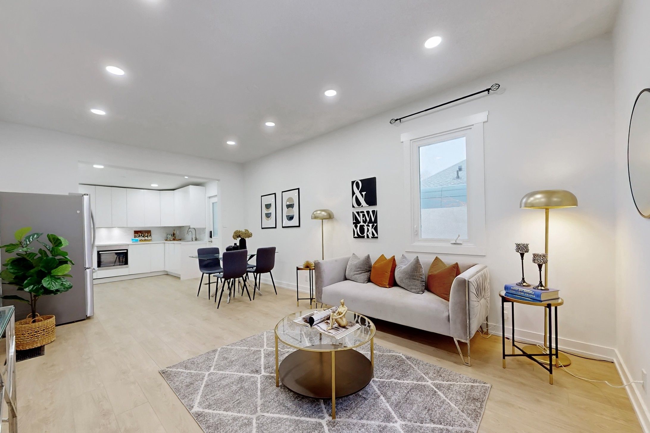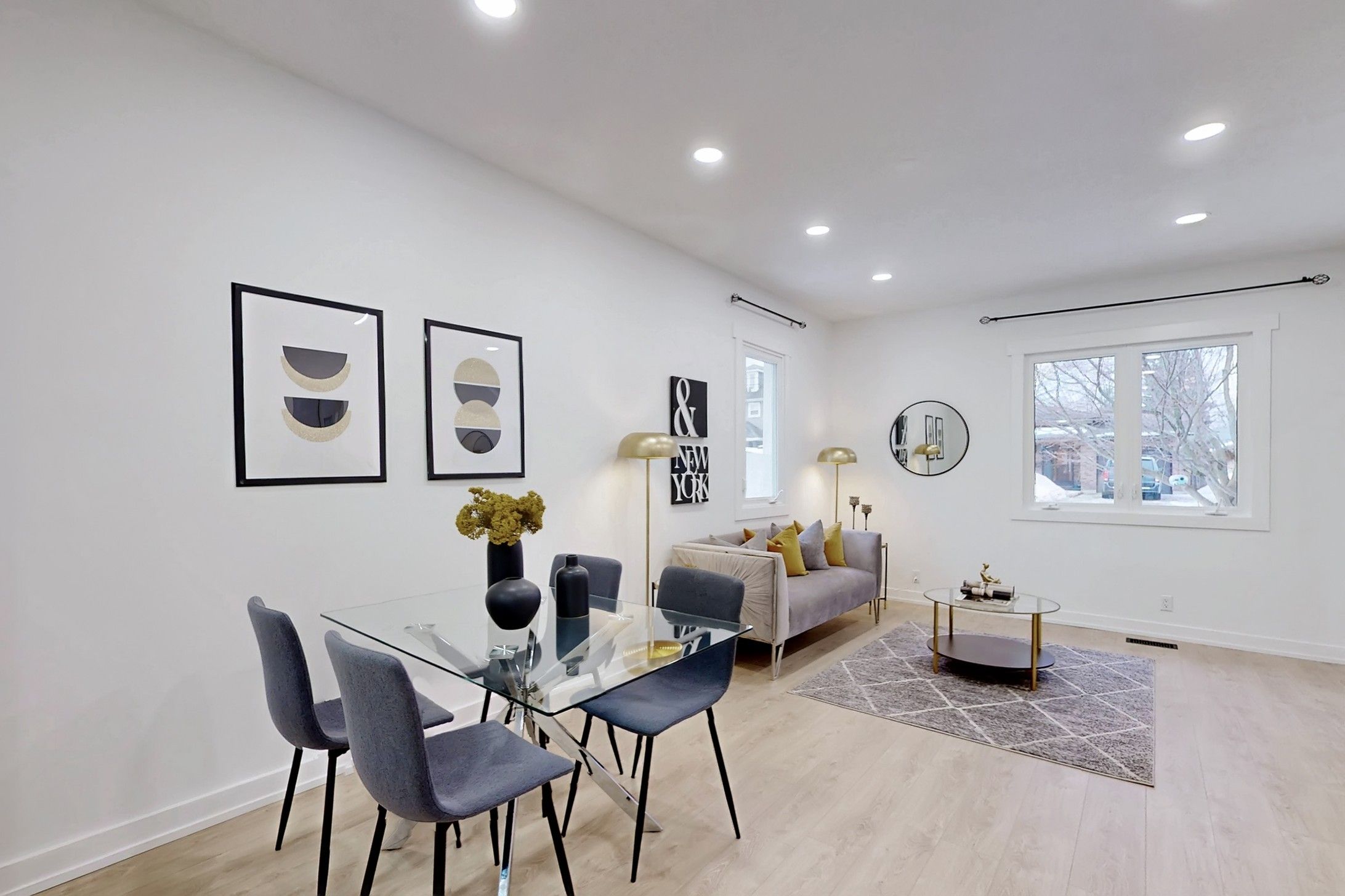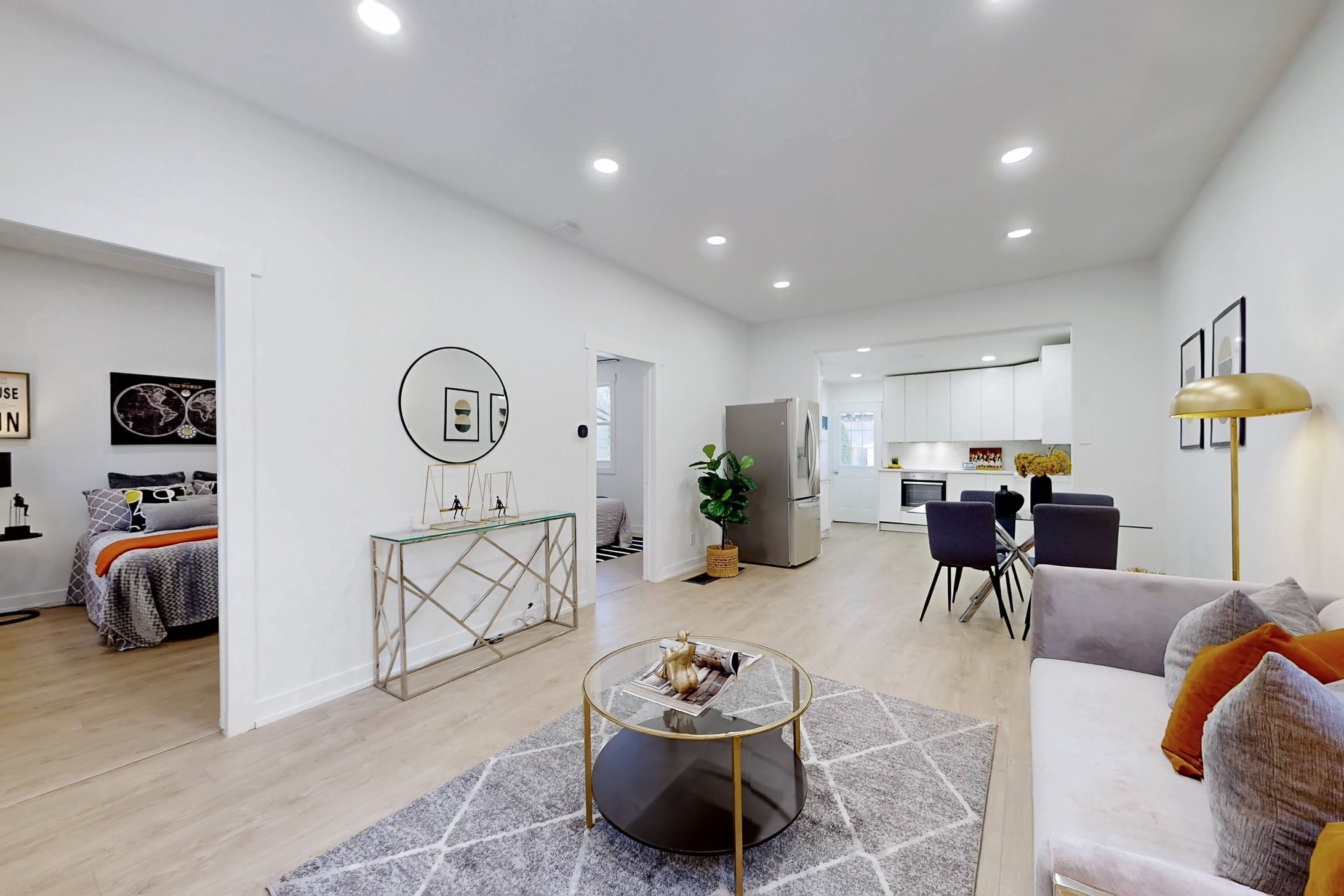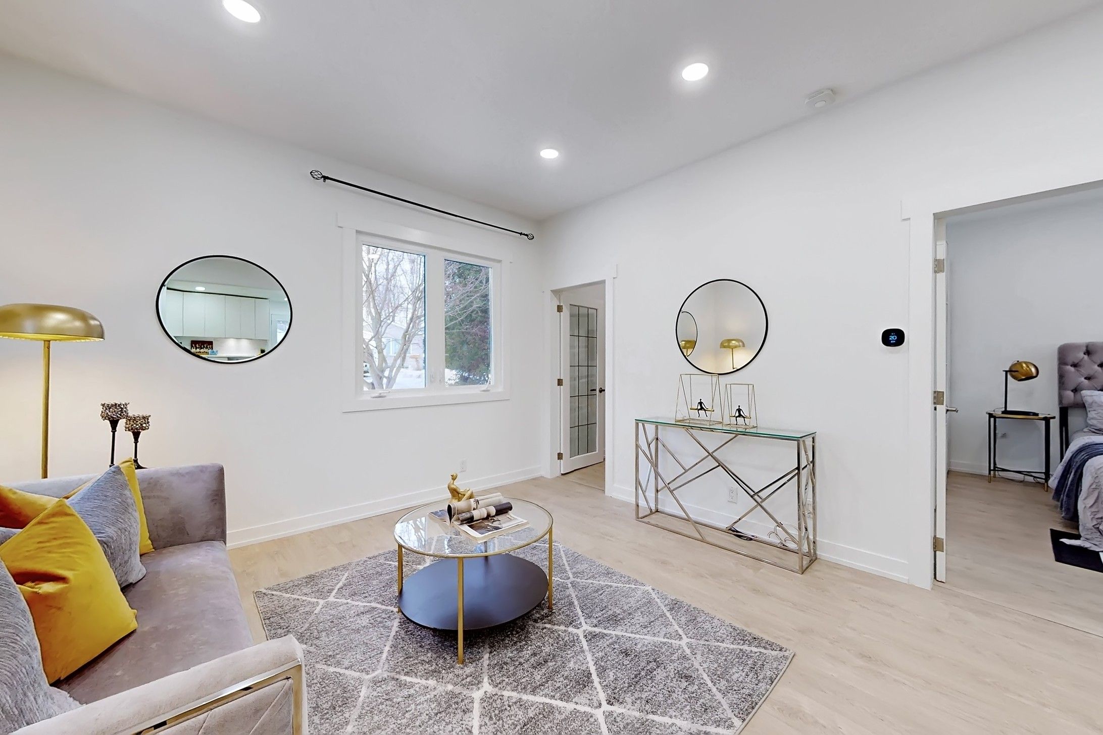 This one is a show stopper and offers a complete package! Fully renovated, intelligently designed smart home backing onto ravine and located on a family friendly cul-de-sac. Ravine views, recently fully drywalled extra large detached garage and a beautiful newer deck with a built-in pergola as well as potential for an adu, complement this cozy 2-bedroom bungalow with partially finished basement. Welcoming foyer to enter and drop your layers leads to the open concept living/dining room combo and newer eat-in kitchen. Semi-finished basement includes the laundry, workshop and man cave and has a walk-up to the outside. Recent updates include brand new floors throughout and freshly painted(2026), renovated bathroom with new flooring and vanity(2026), recently updated kitchen (2023) including appliances, pot lights throughout(2020), newer roof, deck with new pergola(2020), gas furnace(2019) with dual capability for forced air or heat pump(2023), owned water heater(2024), water softener, ro and whole home water filter(2020), electrical updated to 100 amps breakers and home is ev charging ready, walking distance to schools, go train, downtown shopping and more. No through traffic makes for a family friendly living. Fenced yard is great for kids, pets and privacy. *please check the 360 degree 3d virtual walkthrough by clicking on virtual tour and full list of unique intelligently designed smart home features is the attachment.*