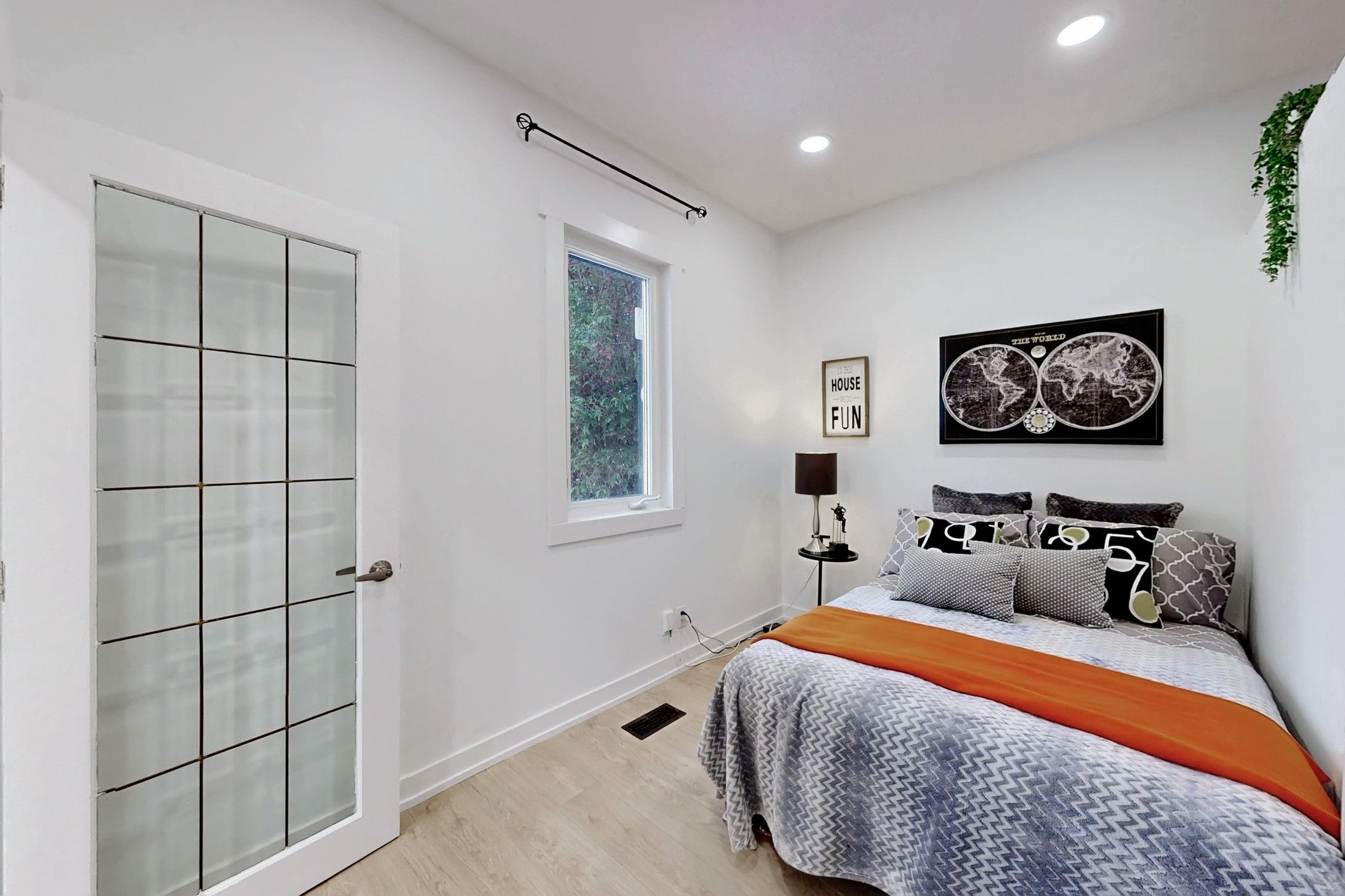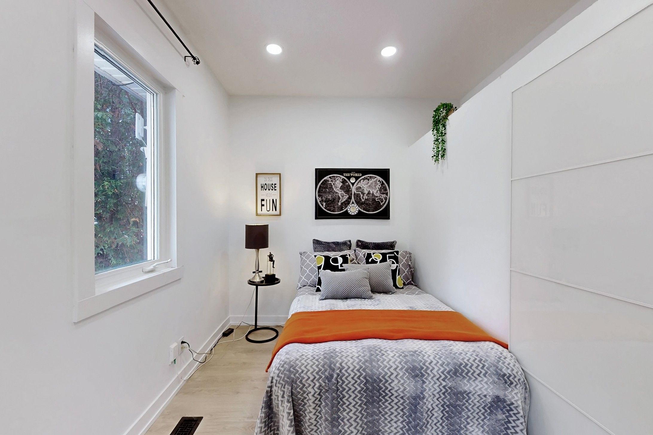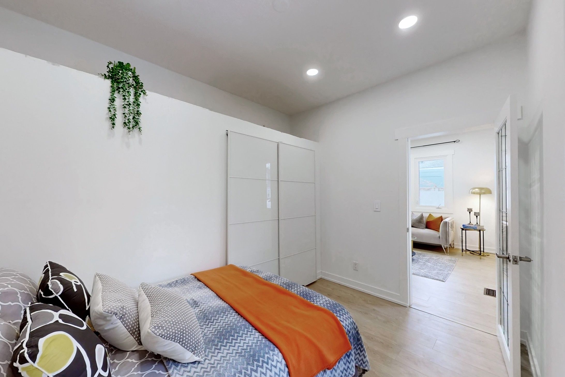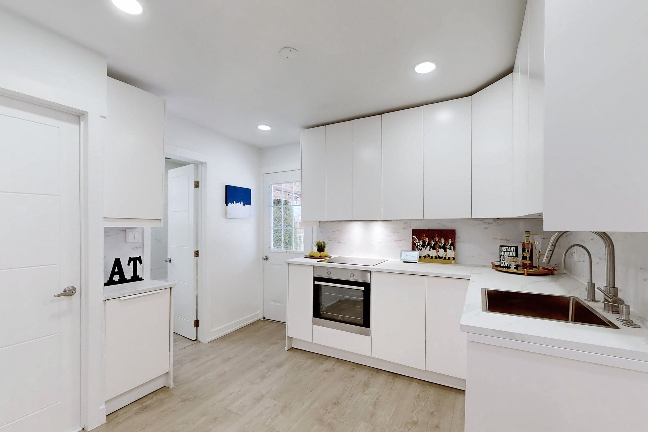 This one is a show stopper and offers a complete package! Fully renovated, intelligently designed smart home backing onto ravine and located on a family friendly cul-de-sac. Ravine views, recently fully drywalled extra large detached garage and a beautiful newer deck with a built-in pergola as well as potential for an adu, complement this cozy 2-bedroom bungalow with partially finished basement. Welcoming foyer to enter and drop your layers leads to the open concept living/dining room combo and newer eat-in kitchen. Semi-finished basement includes the laundry, workshop and man cave and has a walk-up to the outside. Recent updates include brand new floors throughout and freshly painted(2026), renovated bathroom with new flooring and vanity(2026), recently updated kitchen (2023) including appliances, pot lights throughout(2020), newer roof, deck with new pergola(2020), gas furnace(2019) with dual capability for forced air or heat pump(2023), owned water heater(2024), water softener, ro and whole home water filter(2020), electrical updated to 100 amps breakers and home is ev charging ready, walking distance to schools, go train, downtown shopping and more. No through traffic makes for a family friendly living. Fenced yard is great for kids, pets and privacy. *please check the 360 degree 3d virtual walkthrough by clicking on virtual tour and full list of unique intelligently designed smart home features is the attachment.*