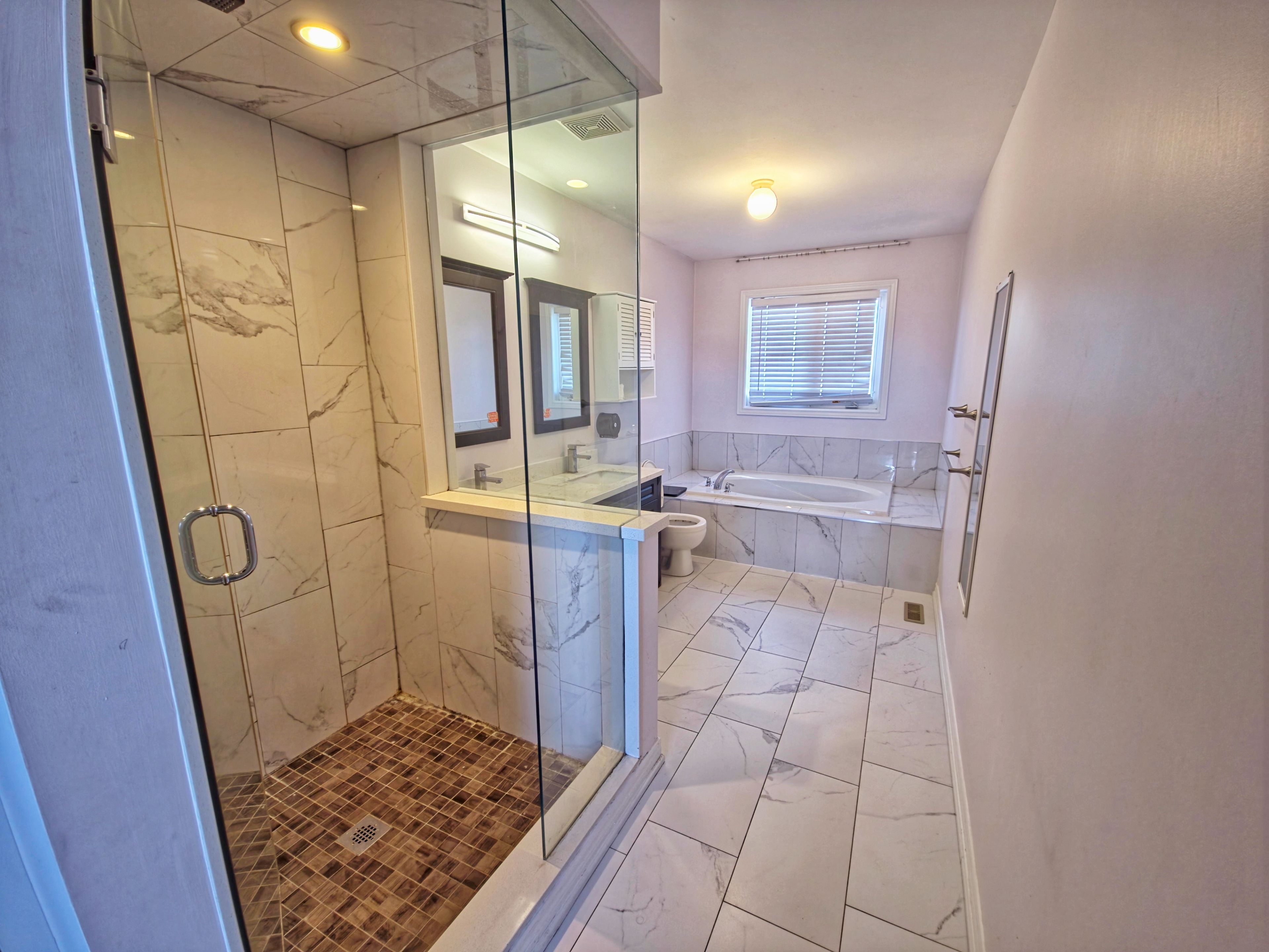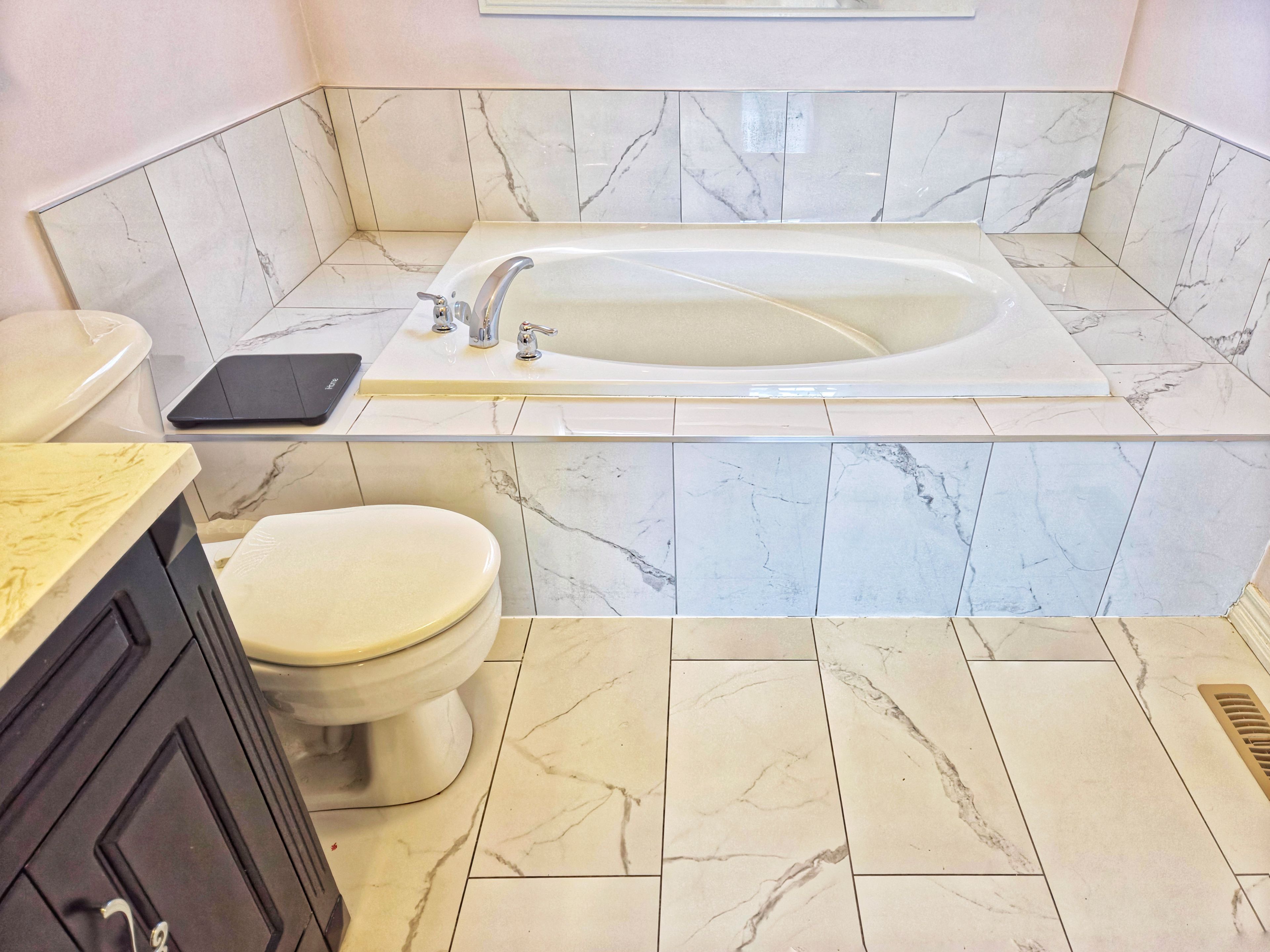 • Renovated kitchen with quartz counters, stainless appliances, and ample storage.