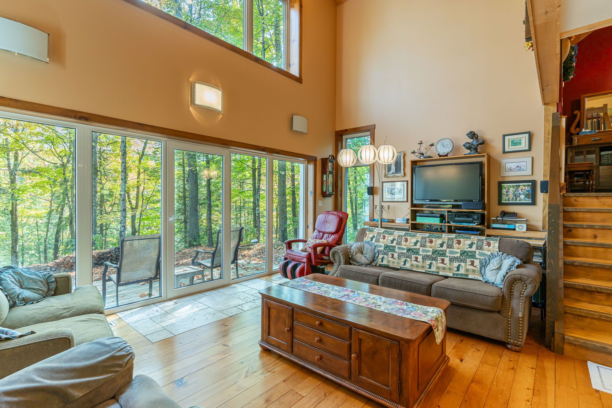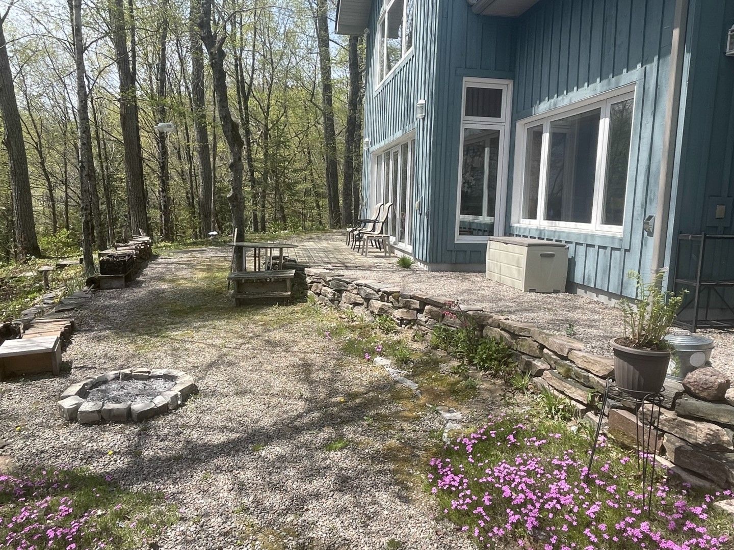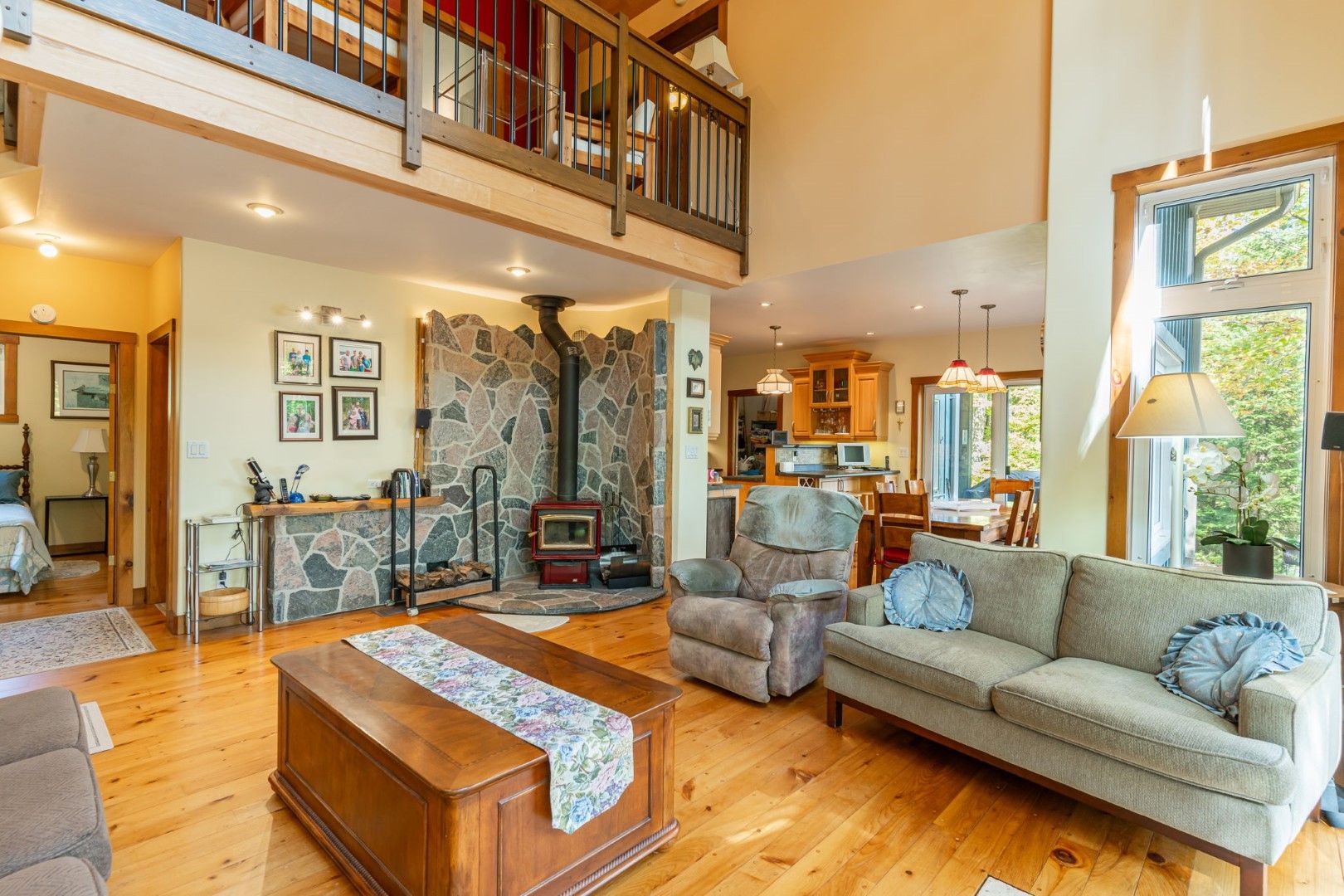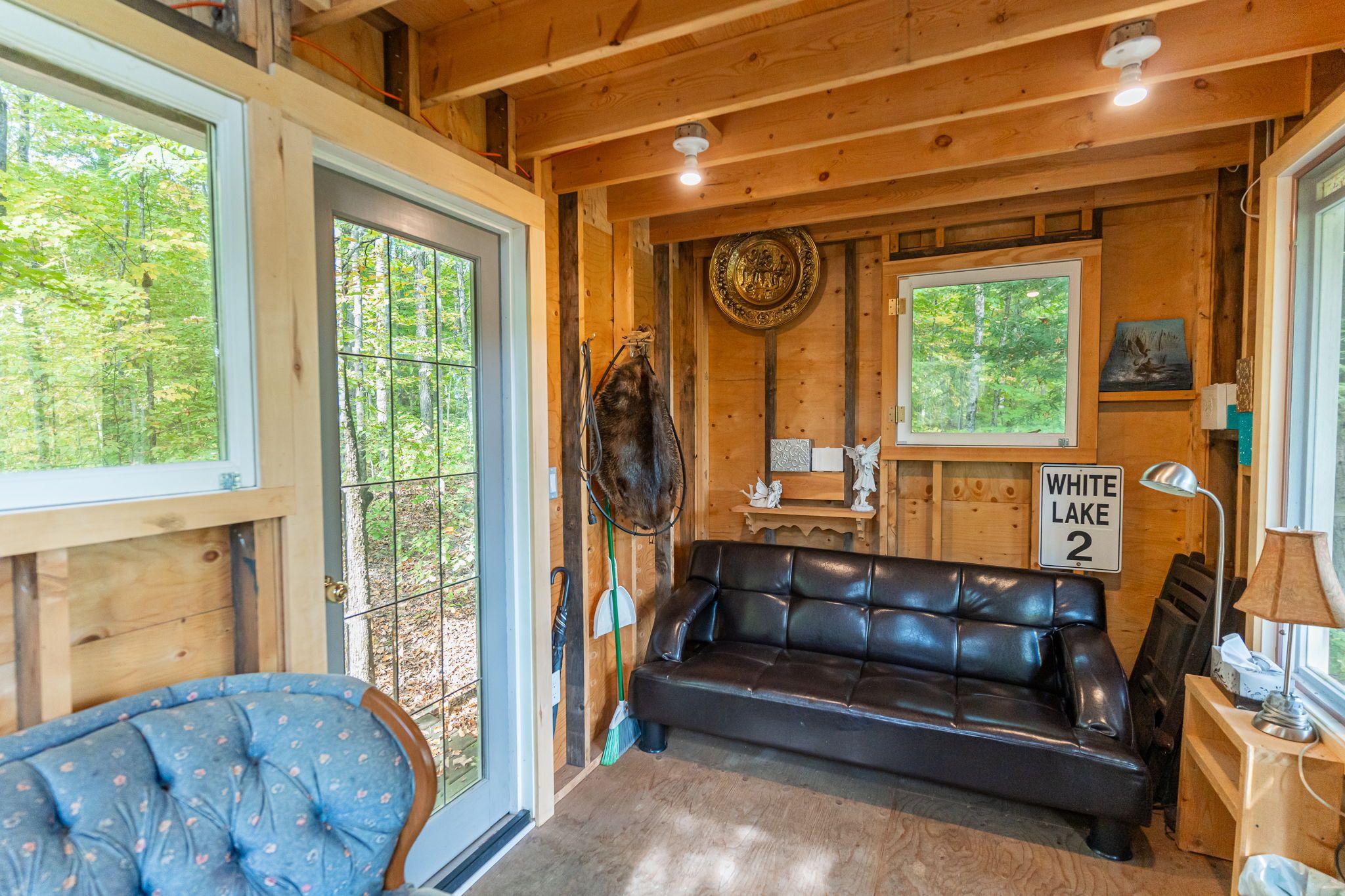 Discover the pinnacle of privacy on white lake with this custom-built, 2,400 sq. Ft. Masterpiece situated on 4. 8 stunningly treed acres with 500 feet of lake frontage. This original-owner home is a showcase of superior craftsmanship, featuring energy-efficient icf construction, high-end windows, and a three-year-old generac propane generator. The interior radiates warmth with 27-foot poplar cathedral ceilings, pine floors, and a custom hickory kitchen, while a 15-foot glass wall and massive picture windows offer expansive, breathtaking water views. Comfort is guaranteed year-round with high-efficiency forced air, central air, and a cozy airtight wood stove set on a natural granite hearth. The layout includes 3 spacious bedrooms plus a versatile guest suite/studio, complemented by a custom pine and walnut staircase. Outside, the property is an entertainer's dream, boasting a guest cabin, lakeside dock, firepit, and perennial gardens, all wrapped in a striking exterior of triple-stained wood siding and natural granite. With a gently sloping driveway off a township road and a pre-sale inspection already on file, this meticulously maintained estate offers the ultimate in lakeside luxury and seclusion.