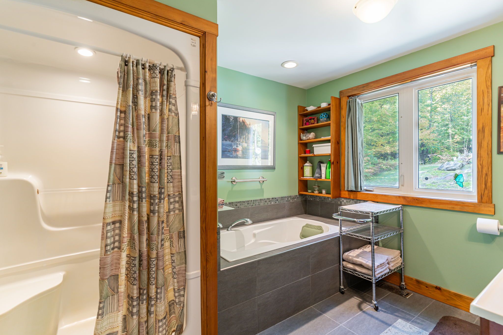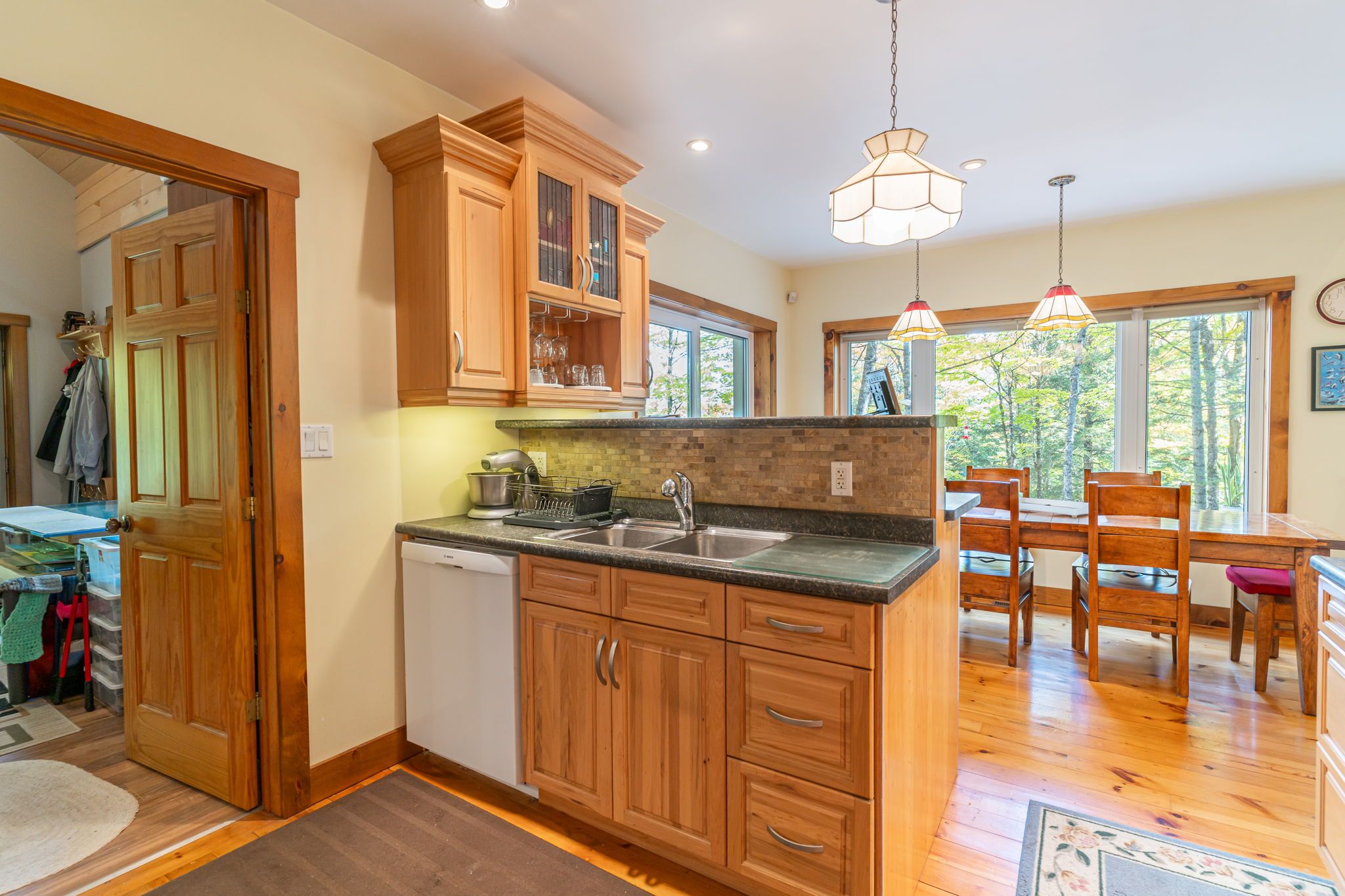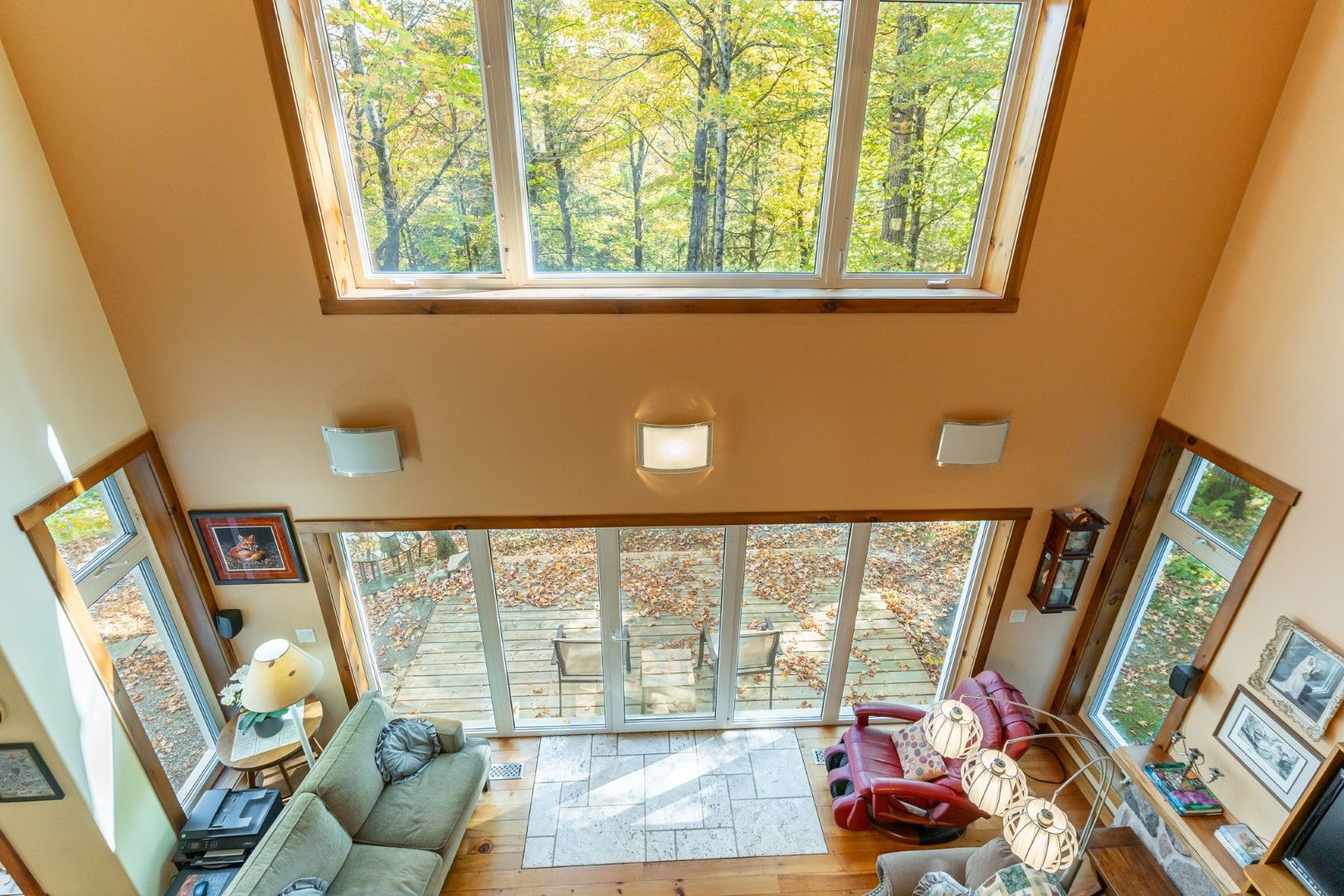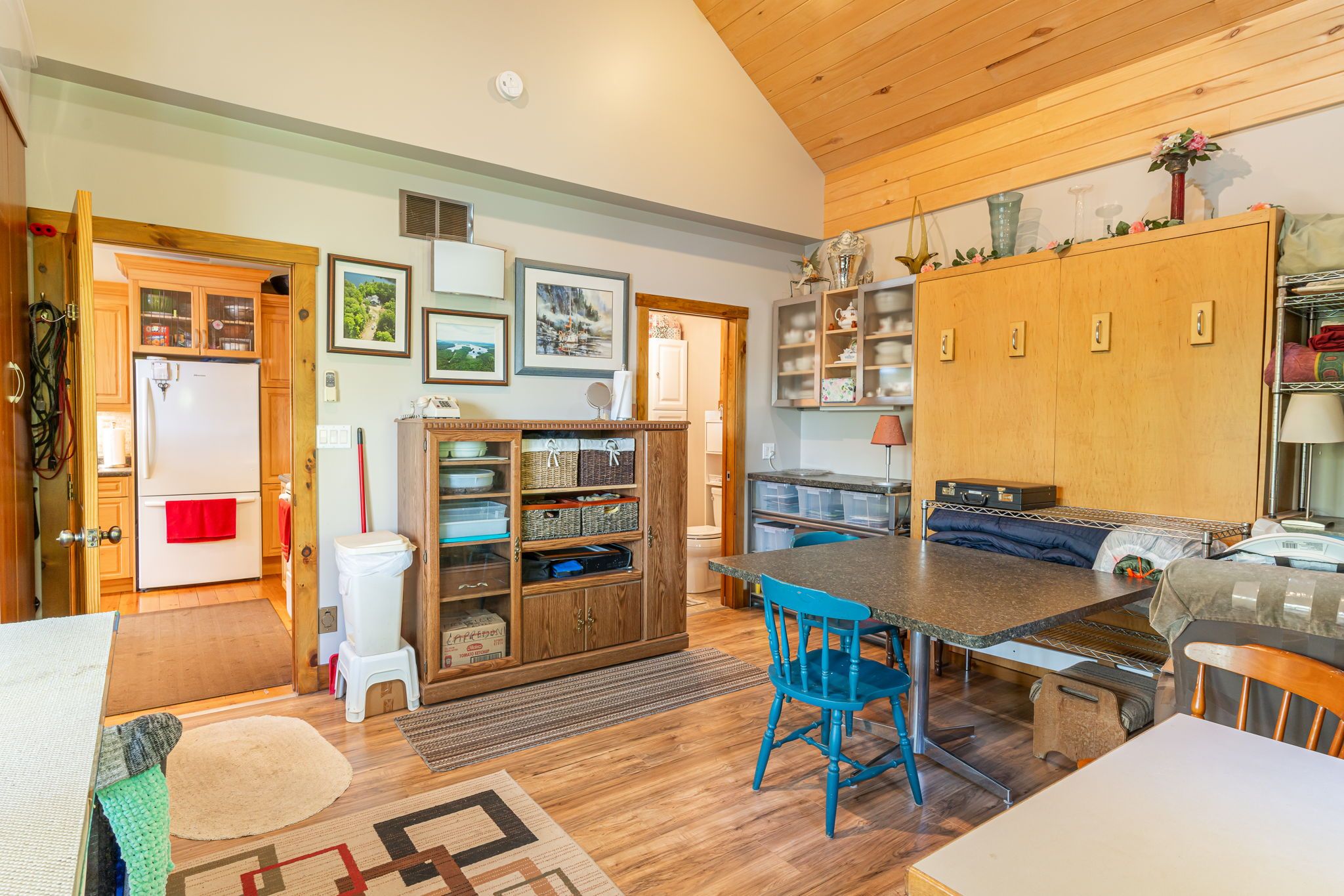 Discover the pinnacle of privacy on white lake with this custom-built, 2,400 sq. Ft. Masterpiece situated on 4. 8 stunningly treed acres with 500 feet of lake frontage. This original-owner home is a showcase of superior craftsmanship, featuring energy-efficient icf construction, high-end windows, and a three-year-old generac propane generator. The interior radiates warmth with 27-foot poplar cathedral ceilings, pine floors, and a custom hickory kitchen, while a 15-foot glass wall and massive picture windows offer expansive, breathtaking water views. Comfort is guaranteed year-round with high-efficiency forced air, central air, and a cozy airtight wood stove set on a natural granite hearth. The layout includes 3 spacious bedrooms plus a versatile guest suite/studio, complemented by a custom pine and walnut staircase. Outside, the property is an entertainer's dream, boasting a guest cabin, lakeside dock, firepit, and perennial gardens, all wrapped in a striking exterior of triple-stained wood siding and natural granite. With a gently sloping driveway off a township road and a pre-sale inspection already on file, this meticulously maintained estate offers the ultimate in lakeside luxury and seclusion.