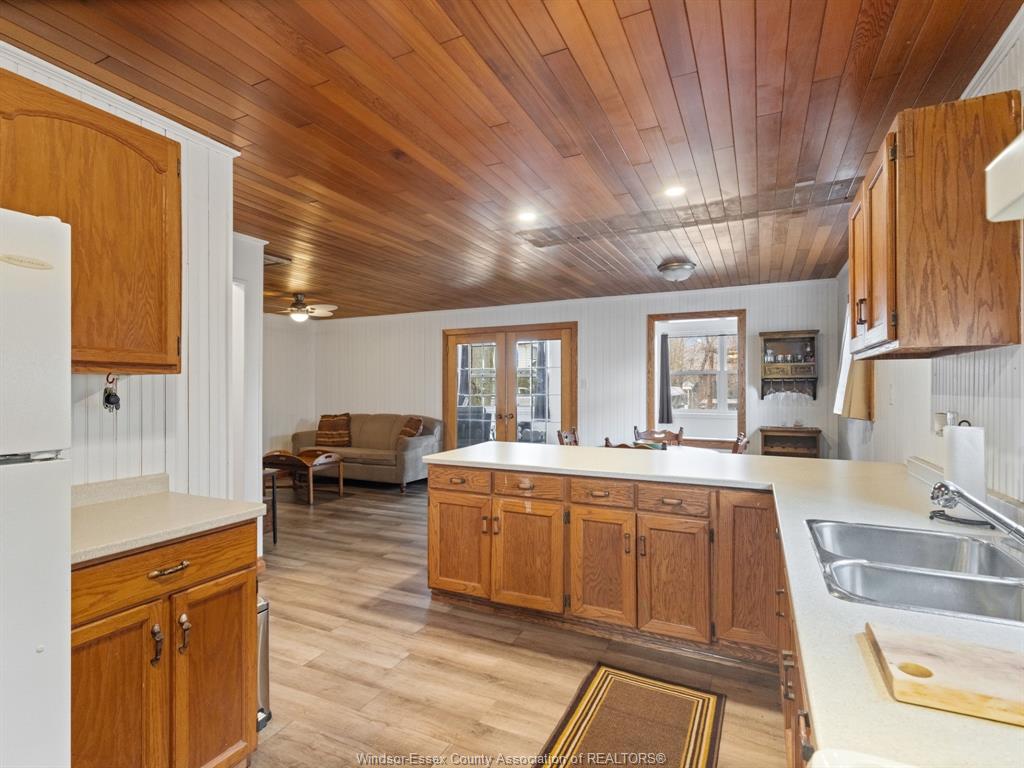 Charming all on 1 floor bungalow located just min. From lake erie and sandy beach. Spacious open living and kitchen, w/breakfast bar, front family room, 2 generous size bedrooms, mud room, forced air gas furnace with central air, privacy fenced yard with workshop/shed. Immed possession available. Appliances included are 'as is'. Perfect starter or empty nester home.