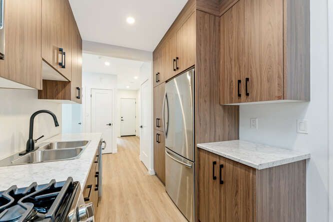 Offering a stunning, spacious and sun-filled 2-bedroom, 1-bath unit for lease. Features a contemporary galley kitchen with stainless steel appliances and gas range, ensuite laundry, high ceilings with pot lights, large windows, light flooring, and a beautifully updated bathroom. No parking. Conveniently located steps to transit and within walking distance to hamilton go, hospitals, and a recreation centre. Gas and hydro are separately metered and not included.