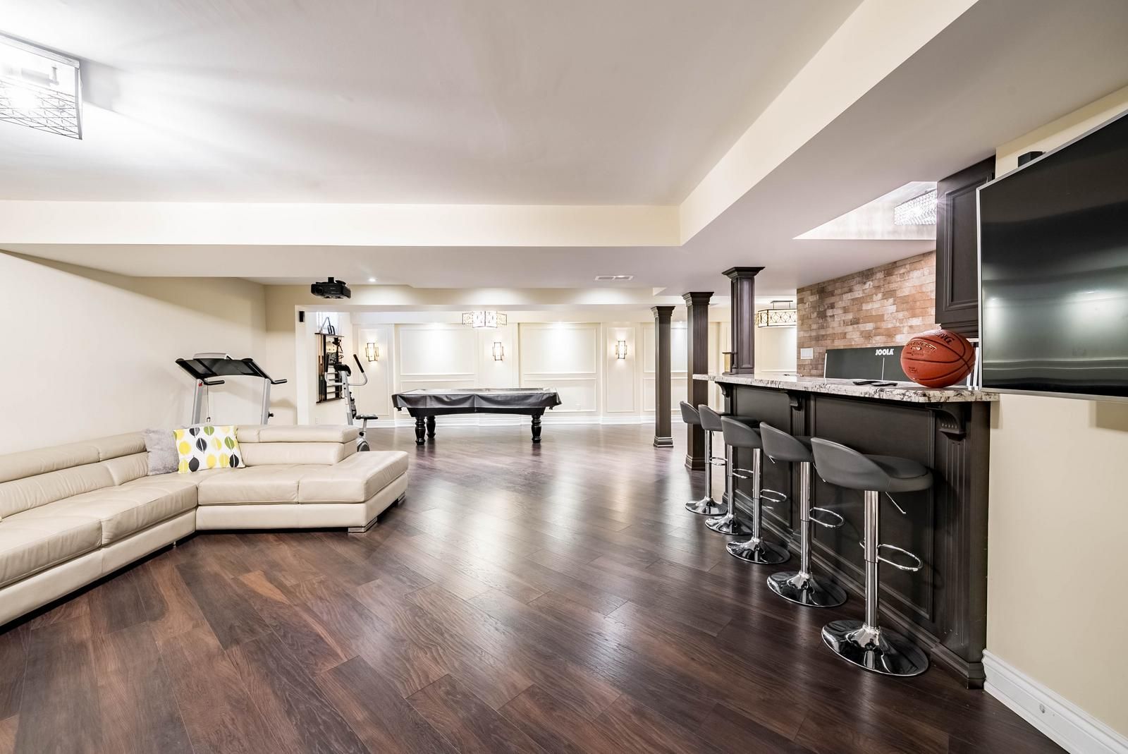 • Four spacious bedrooms, four bathrooms, and a finished basement.