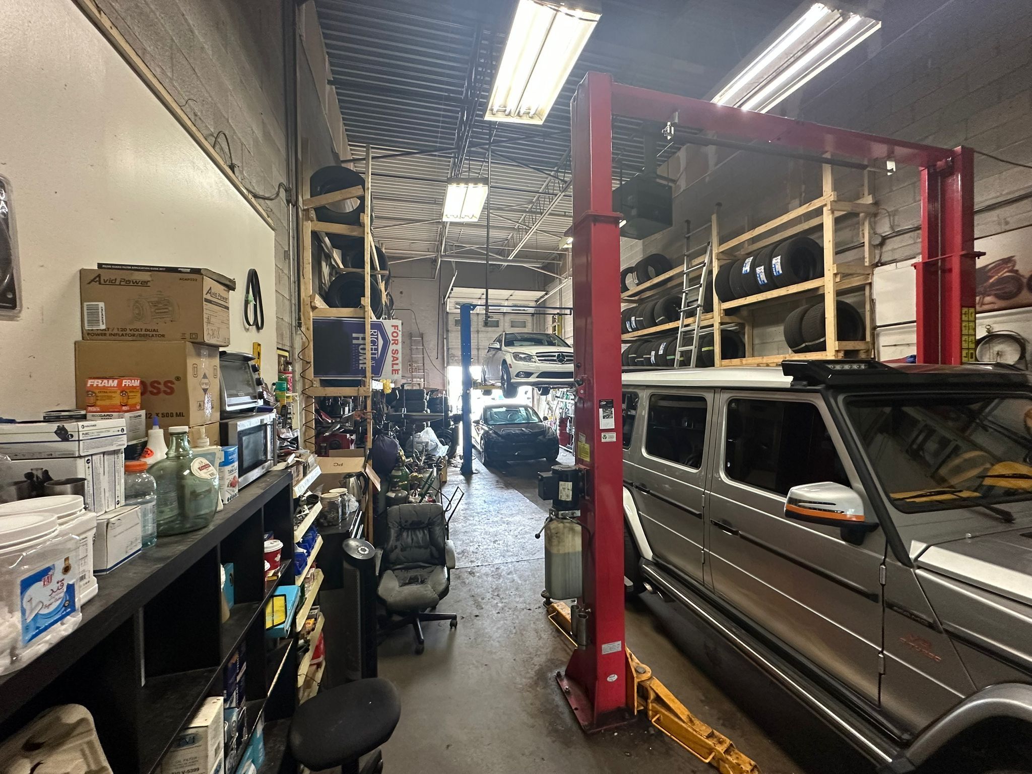 Bienvenido to a mechanic shop for sale, lots of storage, has an office with 10 seats, this turn key business located in a busy plaza at the intersection of keele & finch in toronto with lots of parking spot for customers and owner, low rent, it has all the equipments for running a professional mechanic shop.