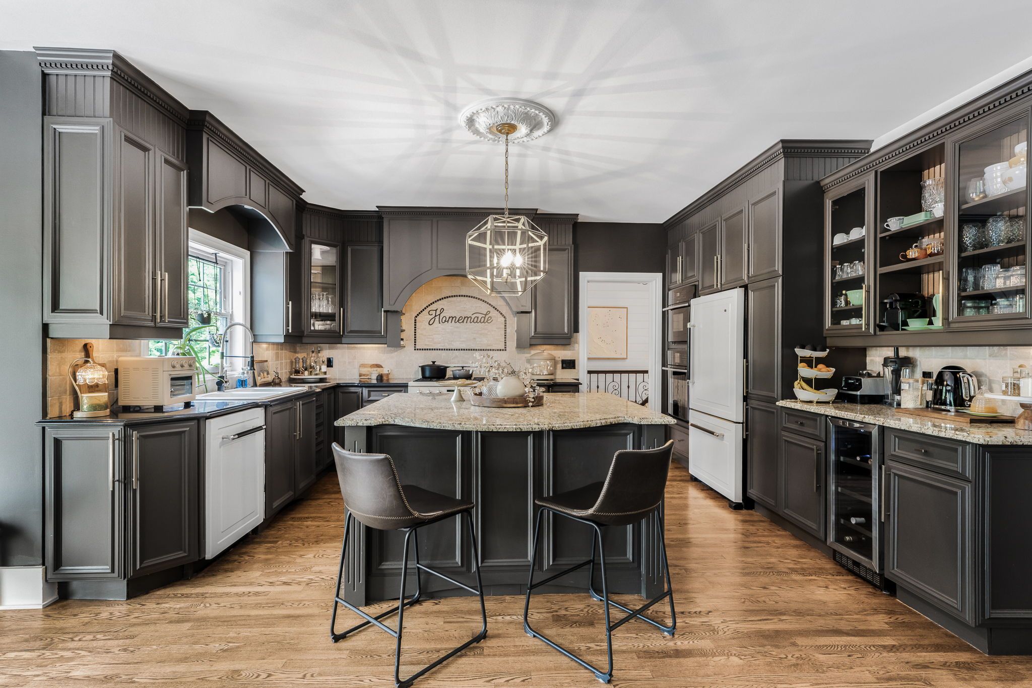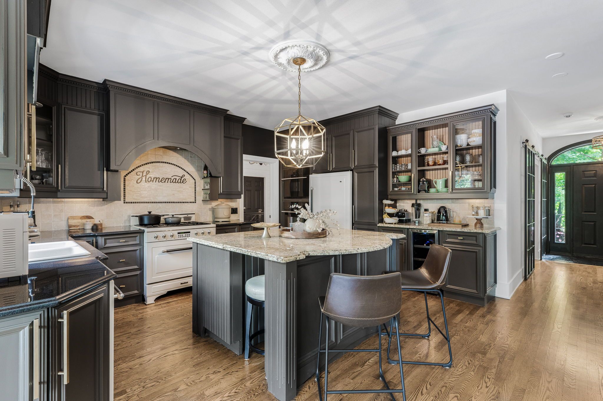 • Chef-inspired kitchen with sleek countertops and custom cabinetry.