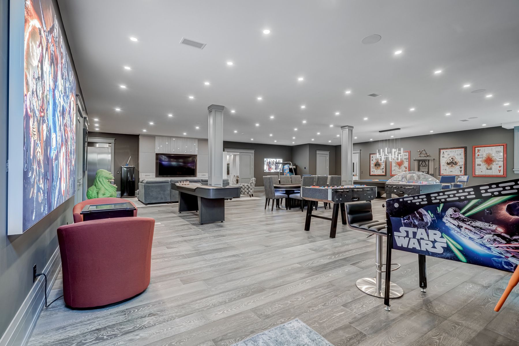 Set amidst a 5. 2-acre estate, this extraordinary 32,000+ sq ft mansion offers unparalleled luxury and privacy. The gated and secured property features a stunning 1/3-acre aerated pond leading to a sprawling contemporary bungalow with lofted in-law quarters and a 5,210 sq ft detached garage with lounge, wash bay, and private gas pumpideal for car enthusiasts. Surrounded by serene countryside, yet minutes from the heart of ancaster, the renowned hamilton golf & country club, and highway 403, offering both seclusion and convenience. Inside, every room showcases soaring 14 to 18-foot custom moulded ceilings, 32-inch porcelain flooring, and the highest quality materials and craftsmanship. The state-of-the-art home features whole-home automation by control4. Spacious living areas feature custom granite walls with town & country fireplaces. A gourmet kitchen is equipped with top-tier appliances, including sub-zero, thermador, and miele. The luxurious lanai is perfect for entertaining, with heated eramosa flagstone, a full outdoor kitchen, 72 woods gas fireplace, and phantom screens. The opulent primary suite includes a private patio with hot tub and an expansive dressing room. The ensuite features heated herringbone floors, a soaker tub with fireplace, towel warmer drawers and a digital rain shower. The opposite wing offers three additional bedroom suites, each with walk-in closets and ensuites. A cambridge elevator provides access to the entertainers dream basement, with a party room, full bar, professional gym with sauna and steam shower, games room, and a state-of-the-art home theatre. This 24-seat dolby atmos theatre features a 254-inch screen, 24-foot ceiling height, and a kaleidoscope movie server for the ultimate cinematic experience. Outdoor amenities include a 35 x 75 heated pool, a 14-person hot tub, and an entertainment cabana with a media area and hosting bar. A regulation-size sports court and a childrens playground complete this family-friendly estate.