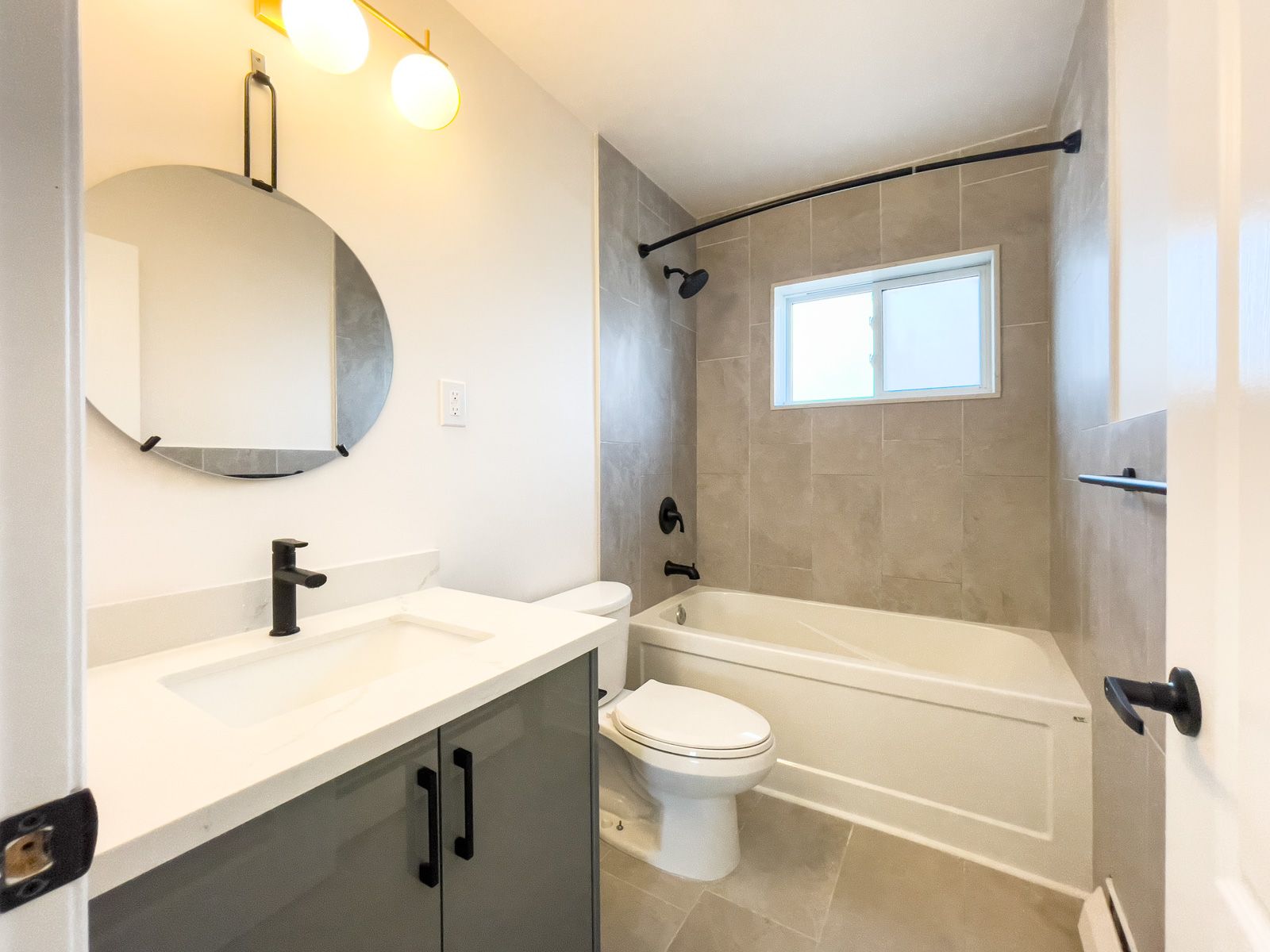 • Brand new kitchen featuring quartz countertops and soft-close cabinetry.