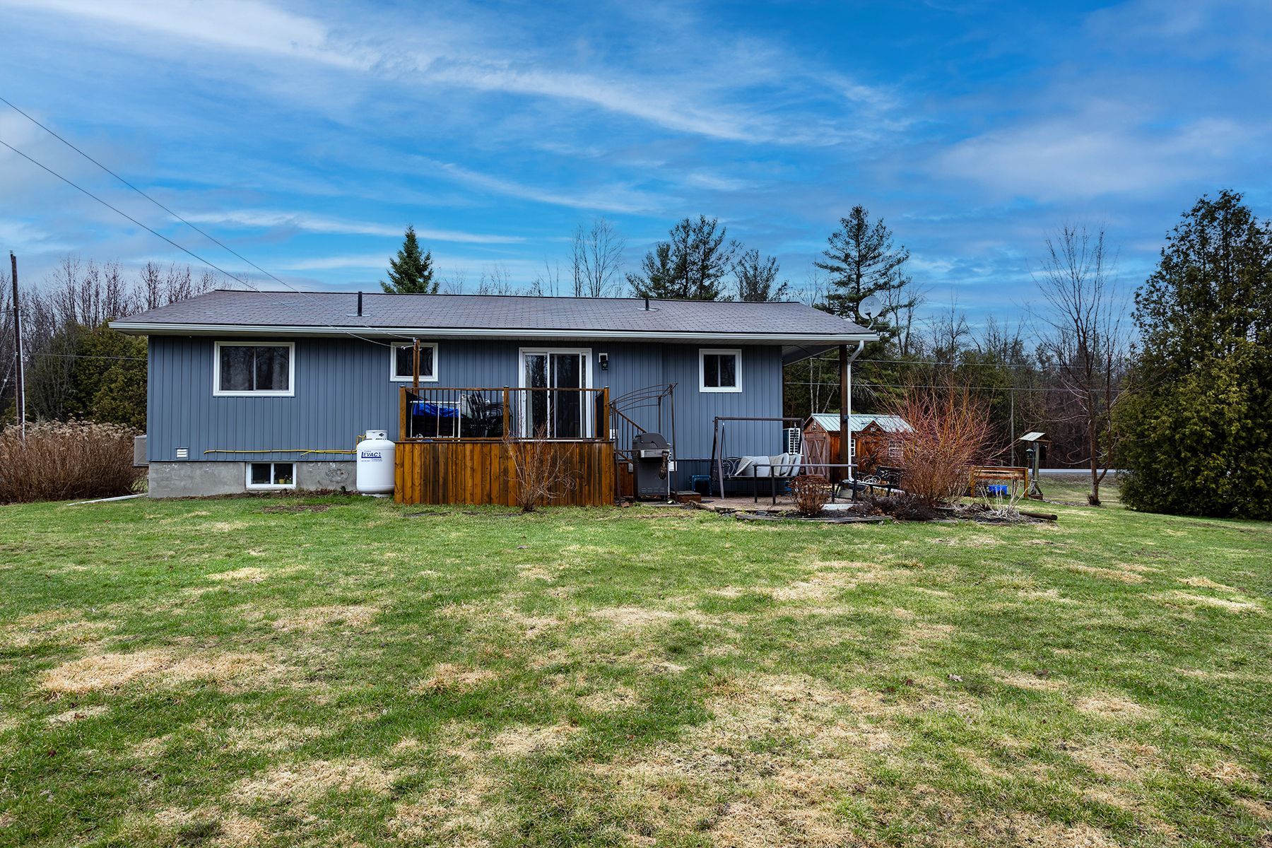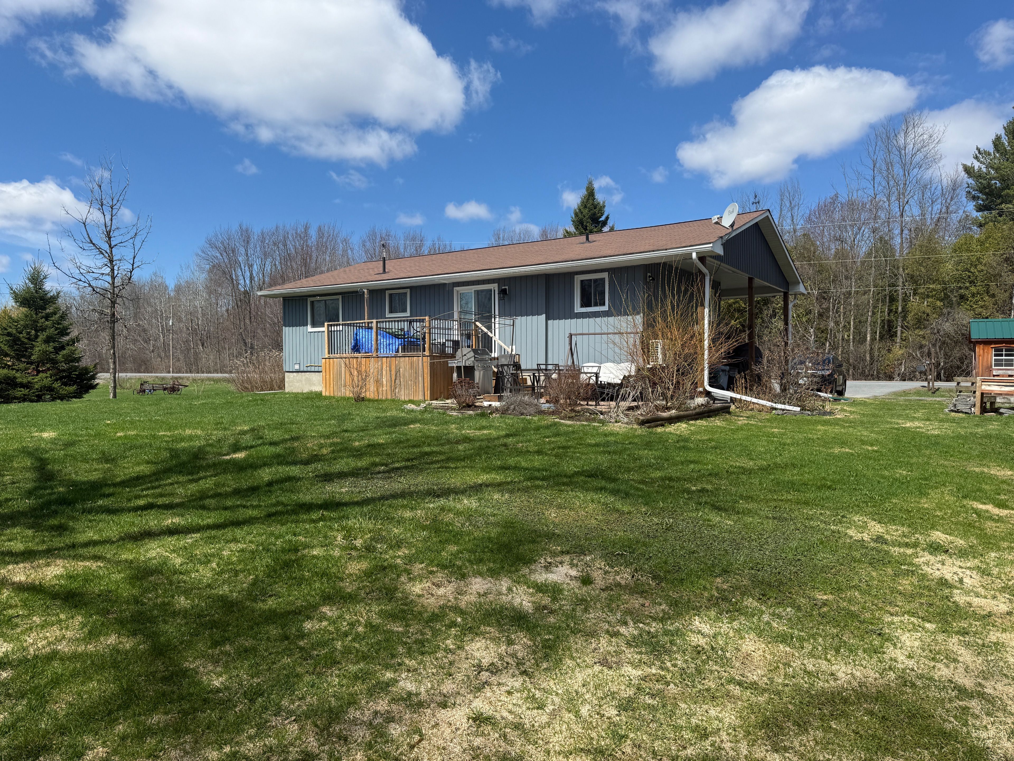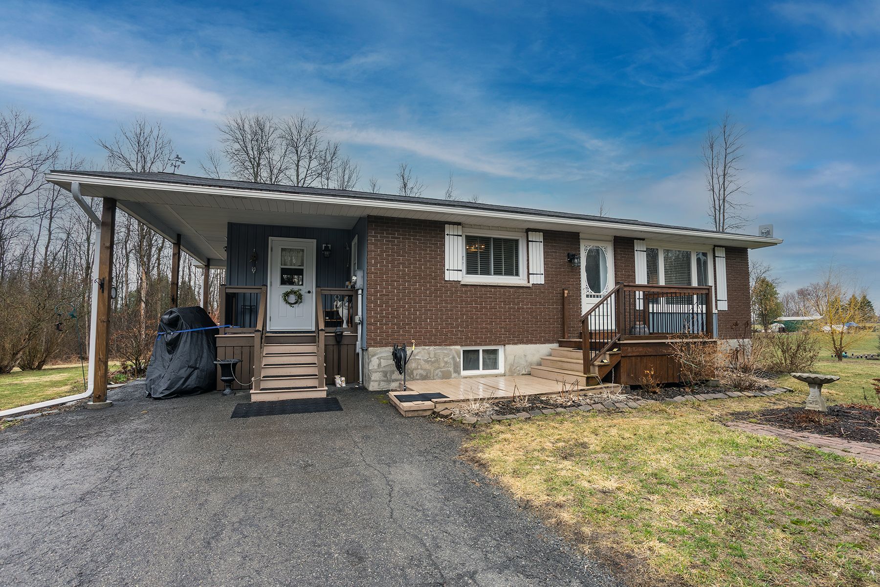 Tucked just outside the village of williamsburg, this well-kept brick bungalow offers peaceful rural living on a beautifully sized ~1-acre lot. The main floor features a spacious eat-in kitchen with ample cabinetry, flowing into a bright adjoining living room-ideal for everyday living and entertaining. Two comfortable bedrooms and a full bath complete the main level along with patio doors from the second bedroom leading to a south facing deck. A thoughtfully added entry from the carport completed in 2024 (20'x9') introduces a convenient main floor laundry area, enhancing functionality. Downstairs, enjoy additional living space with a cozy rec room warmed by a propane stove, along with a two-piece bath. Outdoors, you'll find both an amish-built shed and a garden shed, providing excellent storage and workspace options. New eavestrough with leaf gaurd installed in 2022 along with a new deck in the rear of home in 2022. Other updates inclued a water pump and pressure tank in jan. 2021, new furnace in 2024 and hot water tank in de. 2023, and all windows have been updated. Not much to do but move in!. Located just minutes from cedar glen golf course and with easy access to county road 31 for commuting, this property blends country tranquility with everyday convenience.